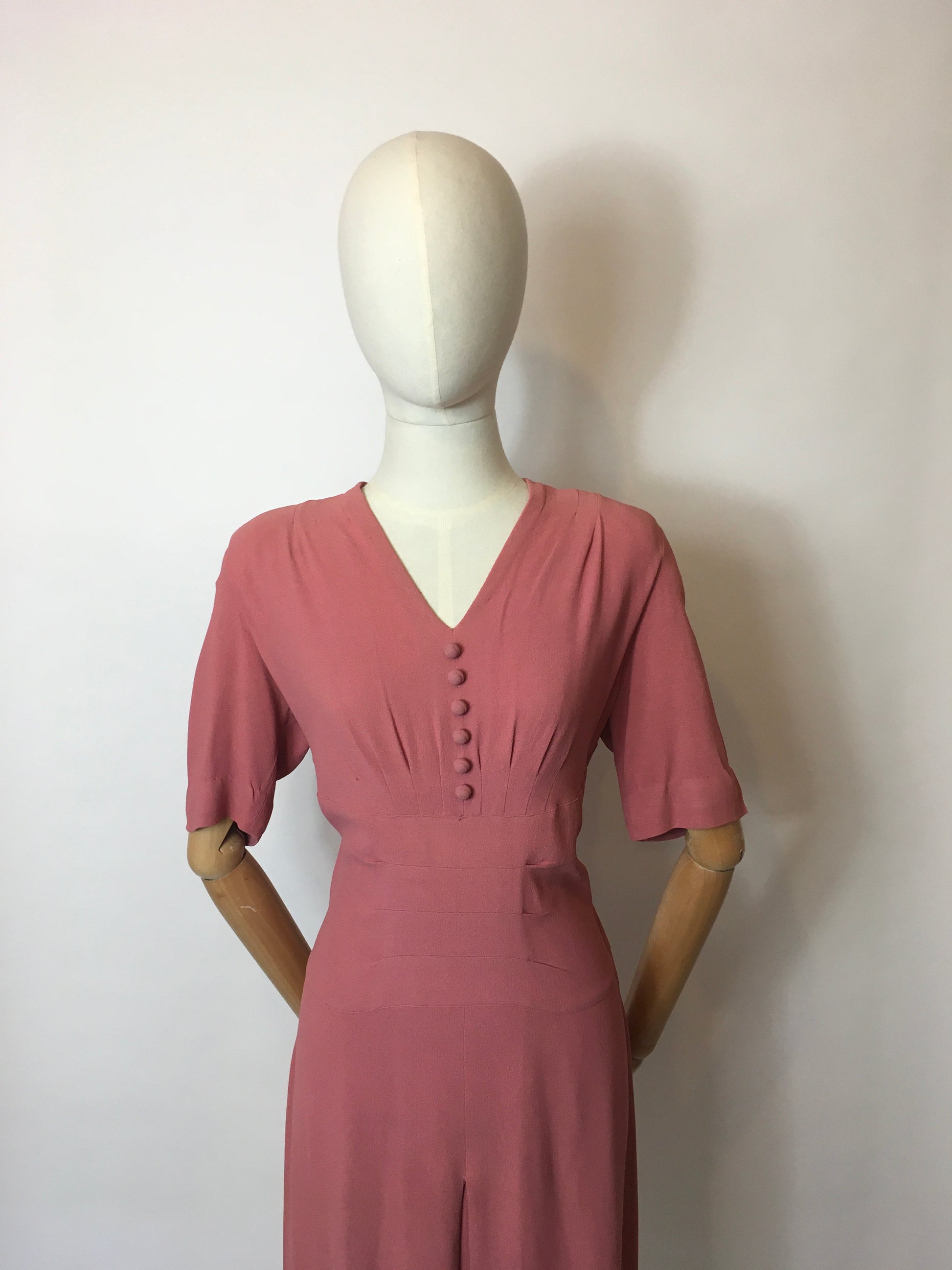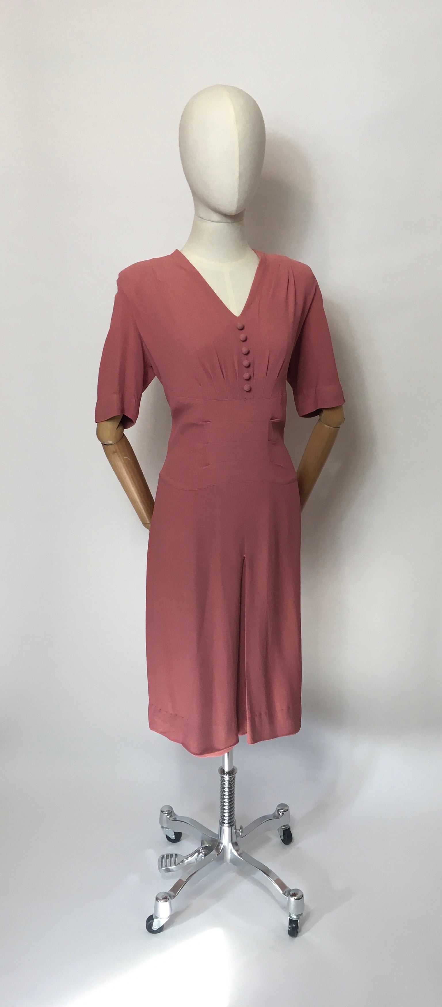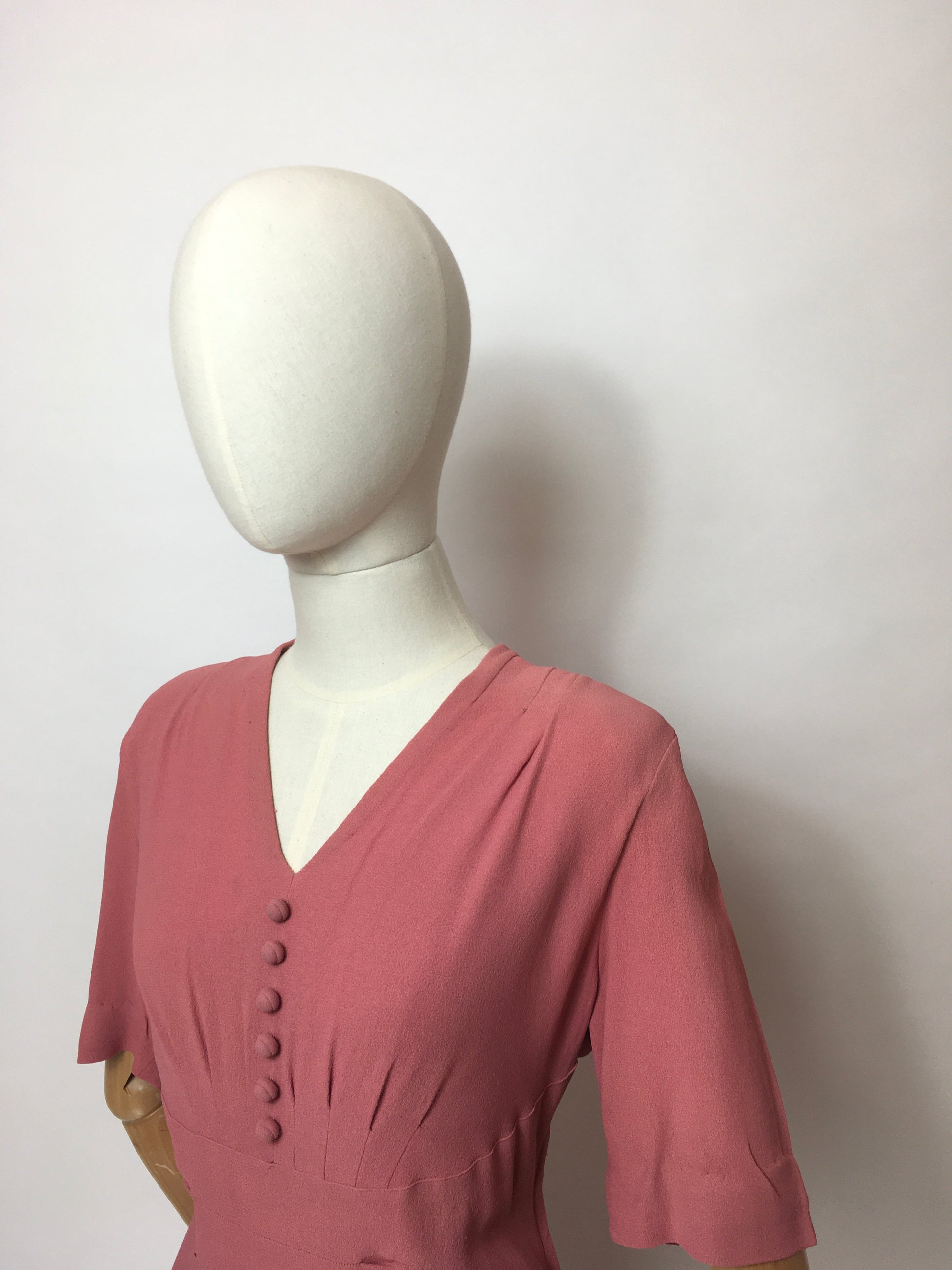 Original 1940’s Rose Pink Crepe Dress - Lovely Panelled Waist Detailing