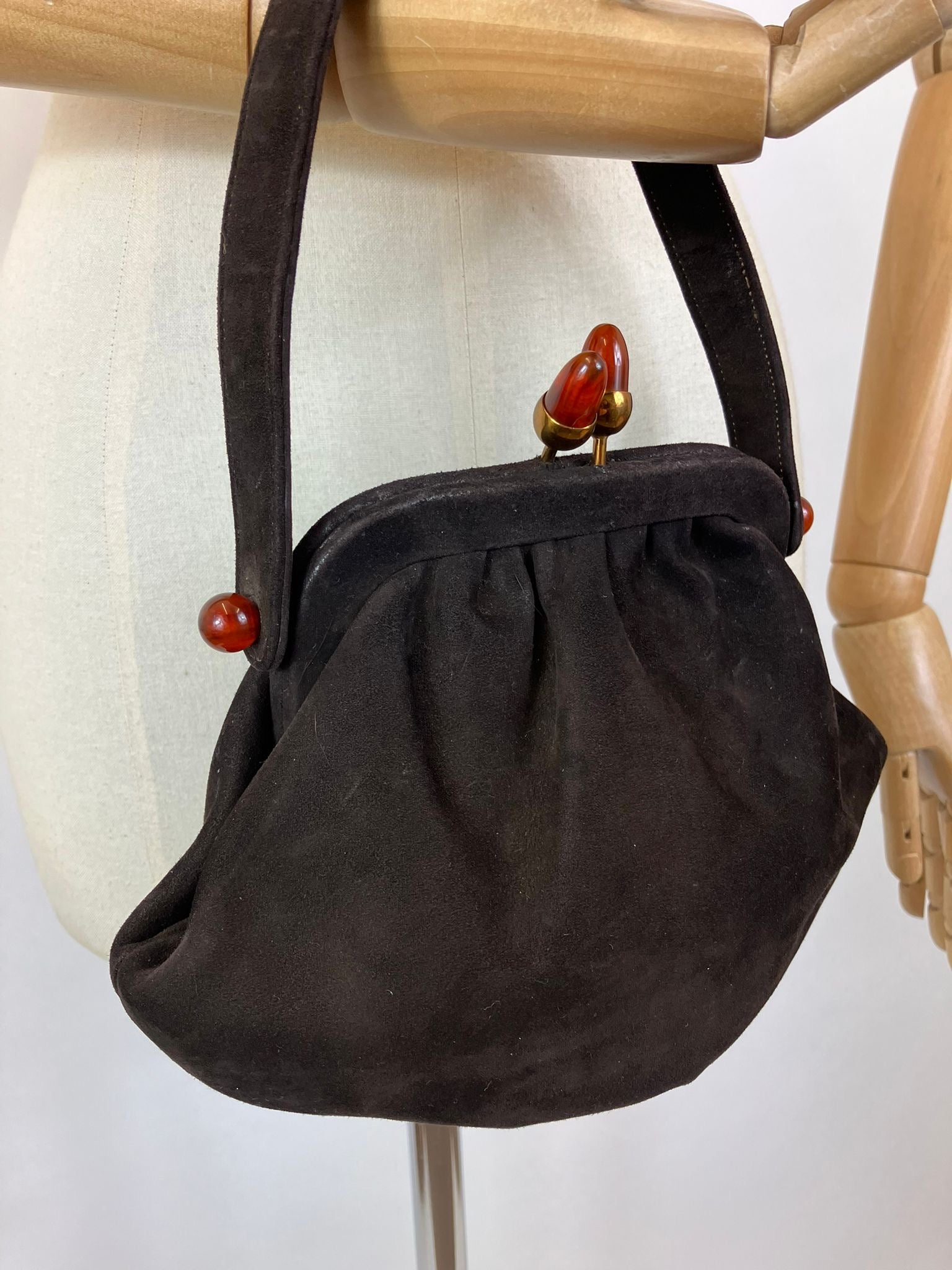 Original 1940’s Single handle Suede Handbag - Rich Dark Brown