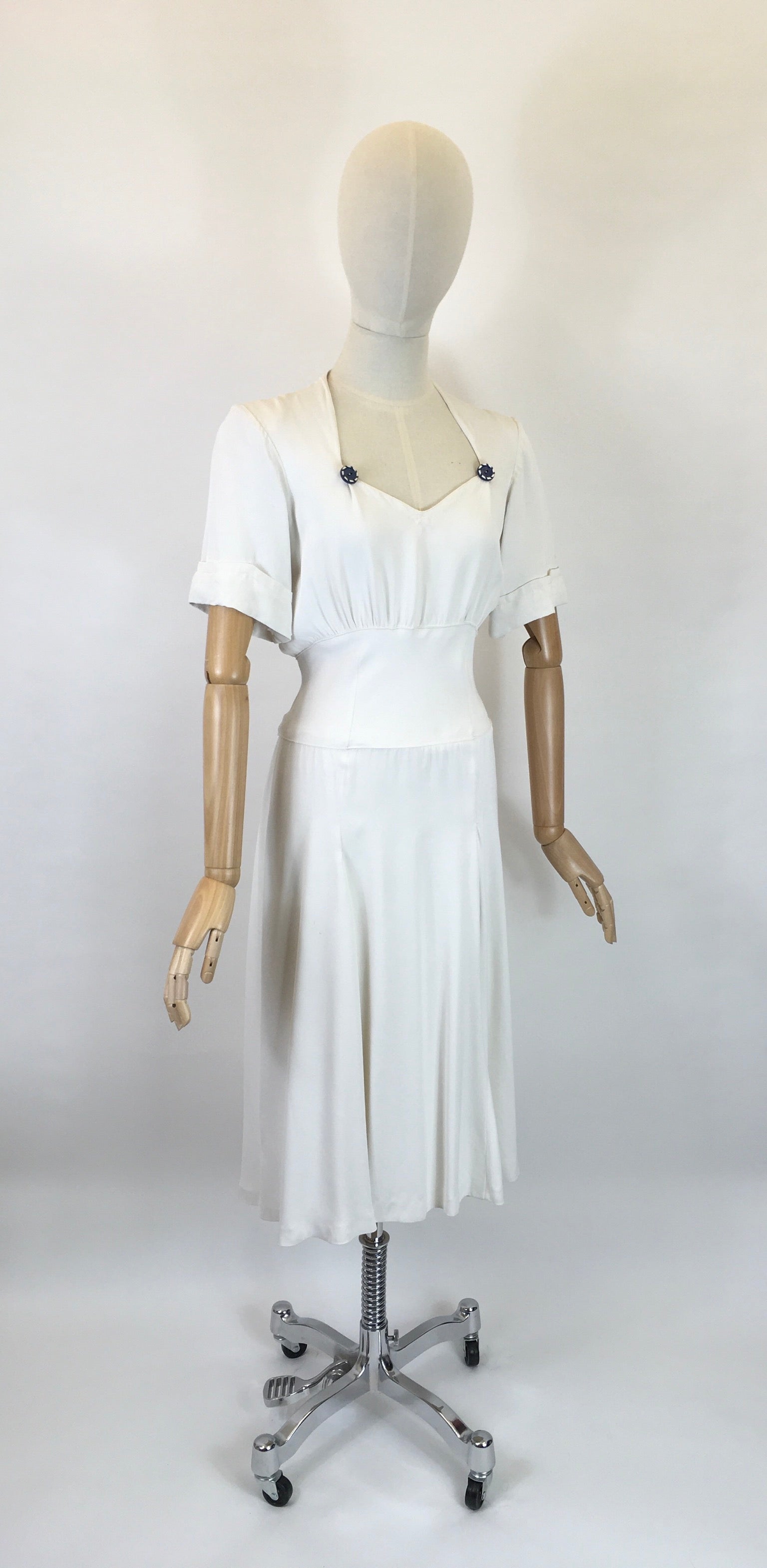 Original 1940’s STUNNING White Dress With Button Detailing - Oozing a Classic 40’s Silhouette