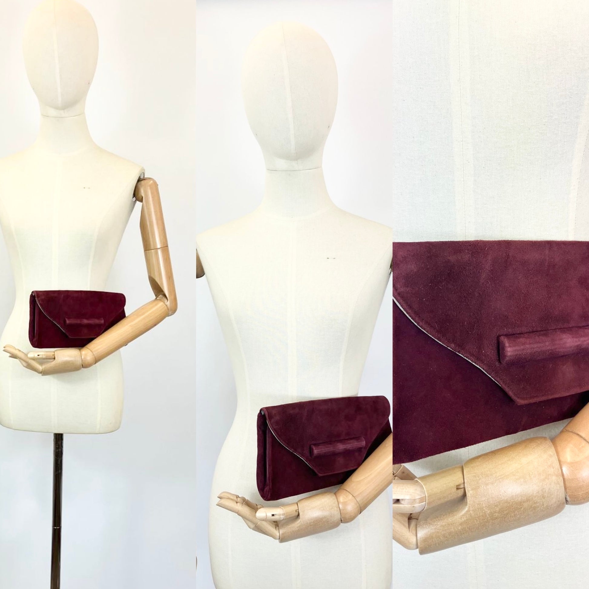 Original 1940’s Suede Clutch - Deep Wine colourway