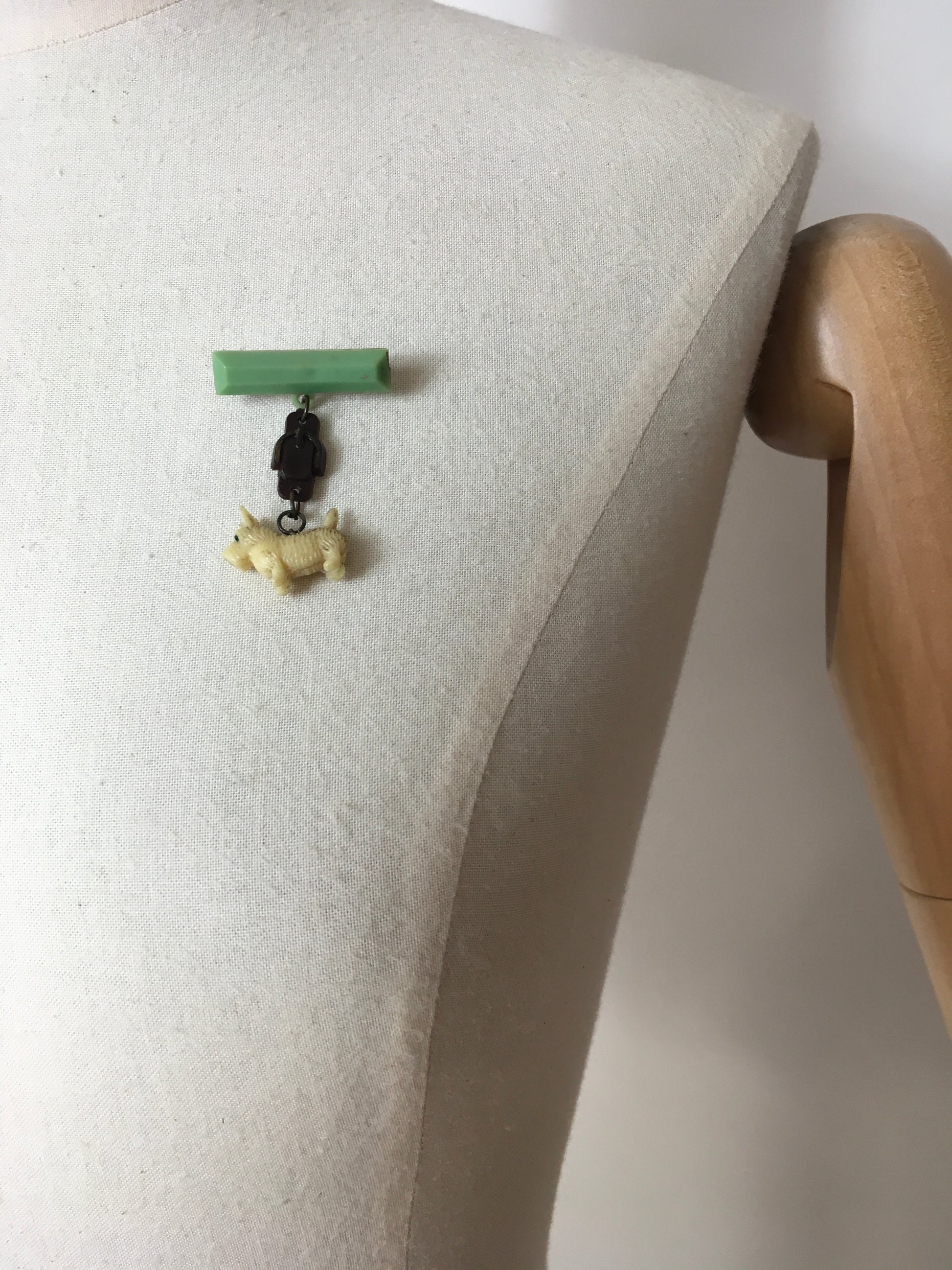 Original 1940’s War Time Dog Bar Brooch - In a Lovely Mint Green with Walking lead.