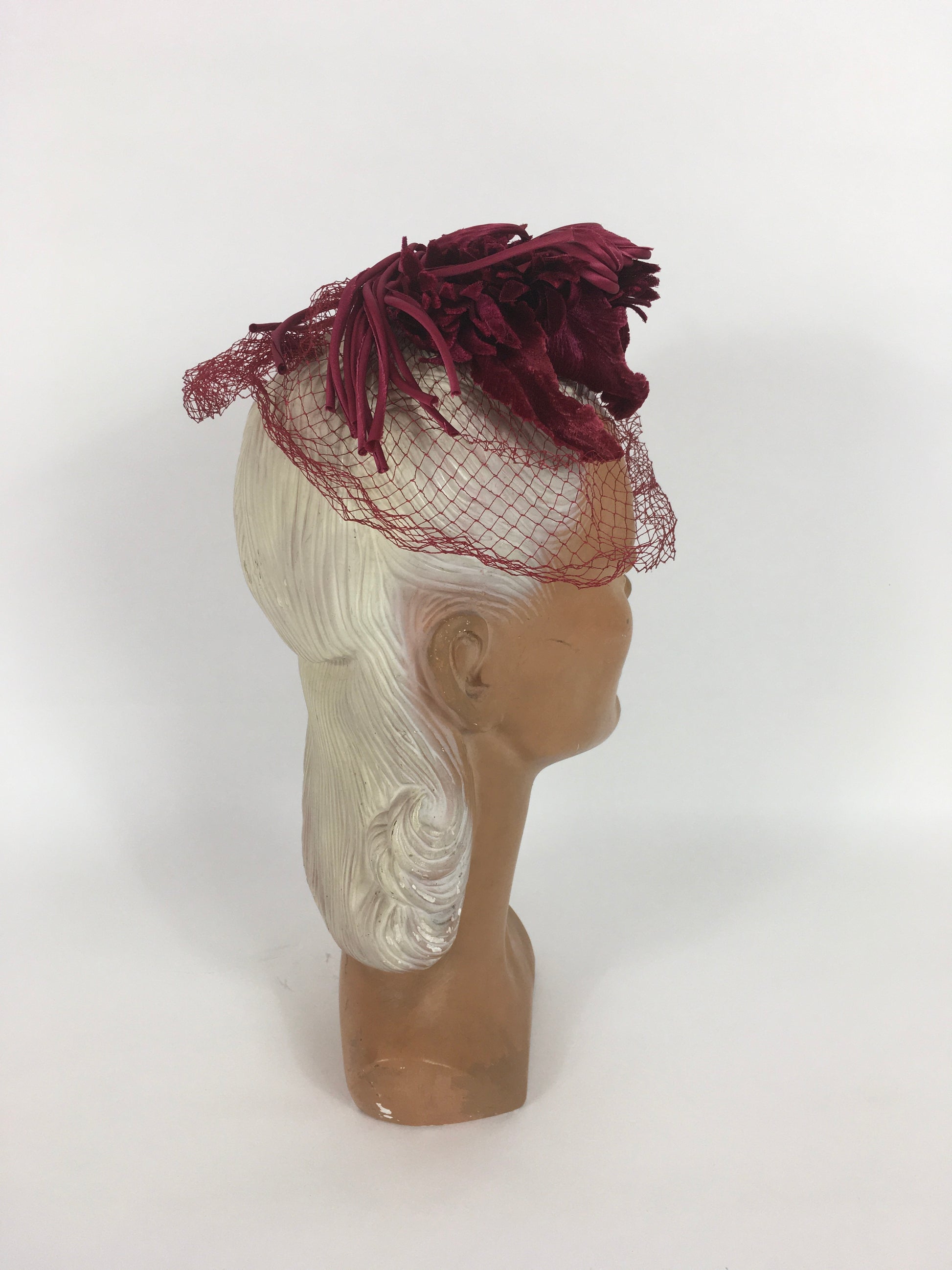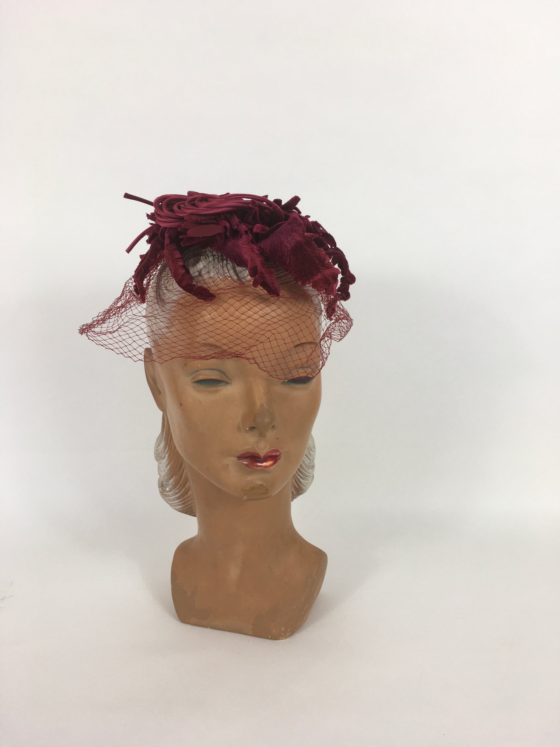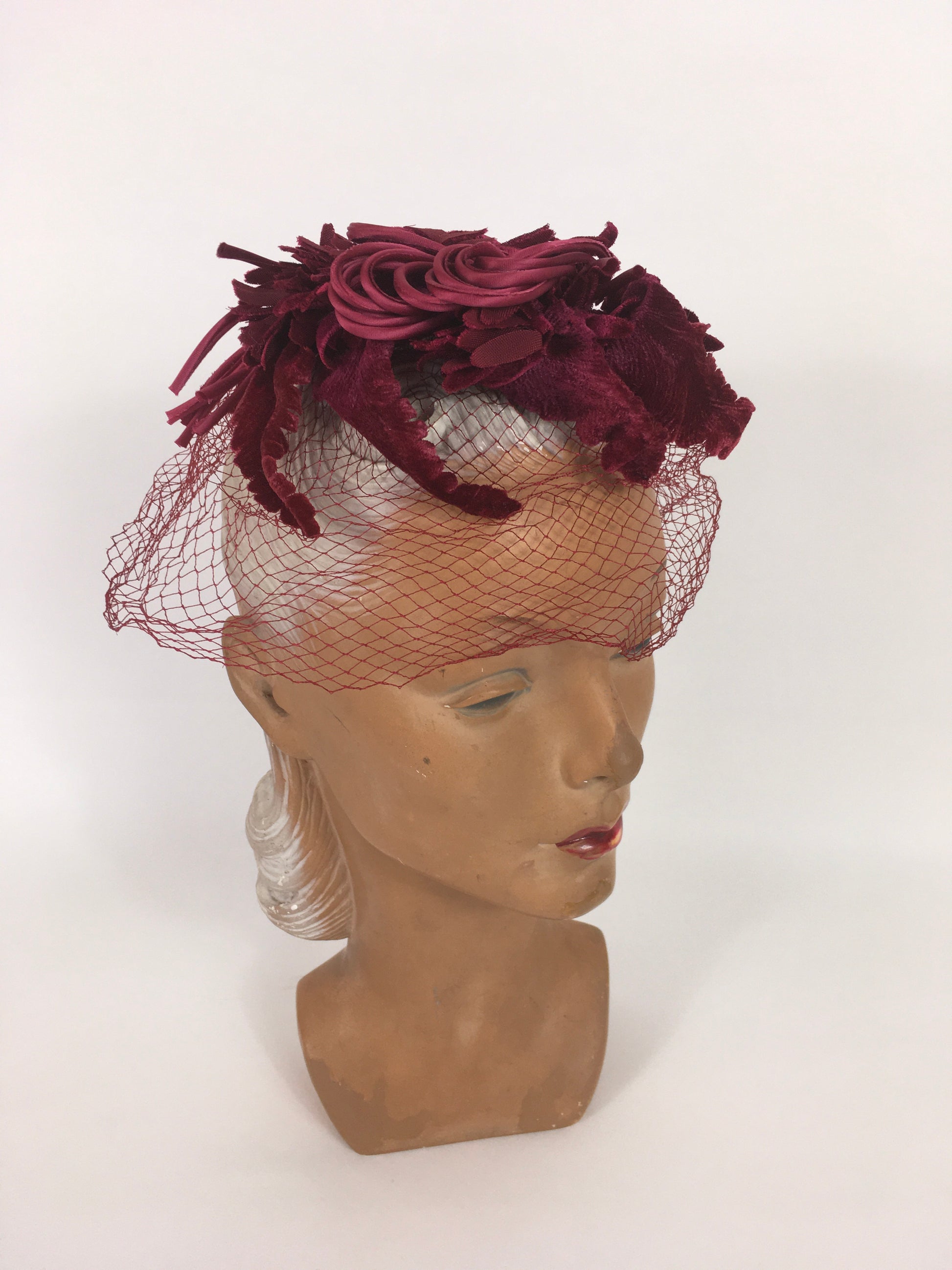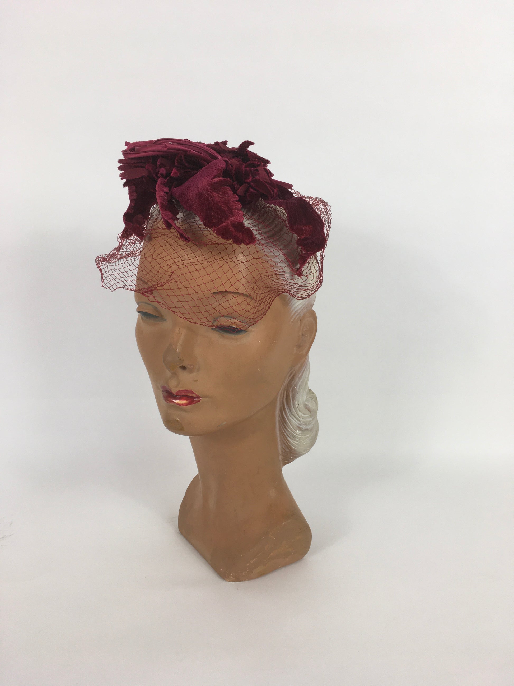 Original 1940s American Headpiece - In a Beautiful Deep Wine Colour