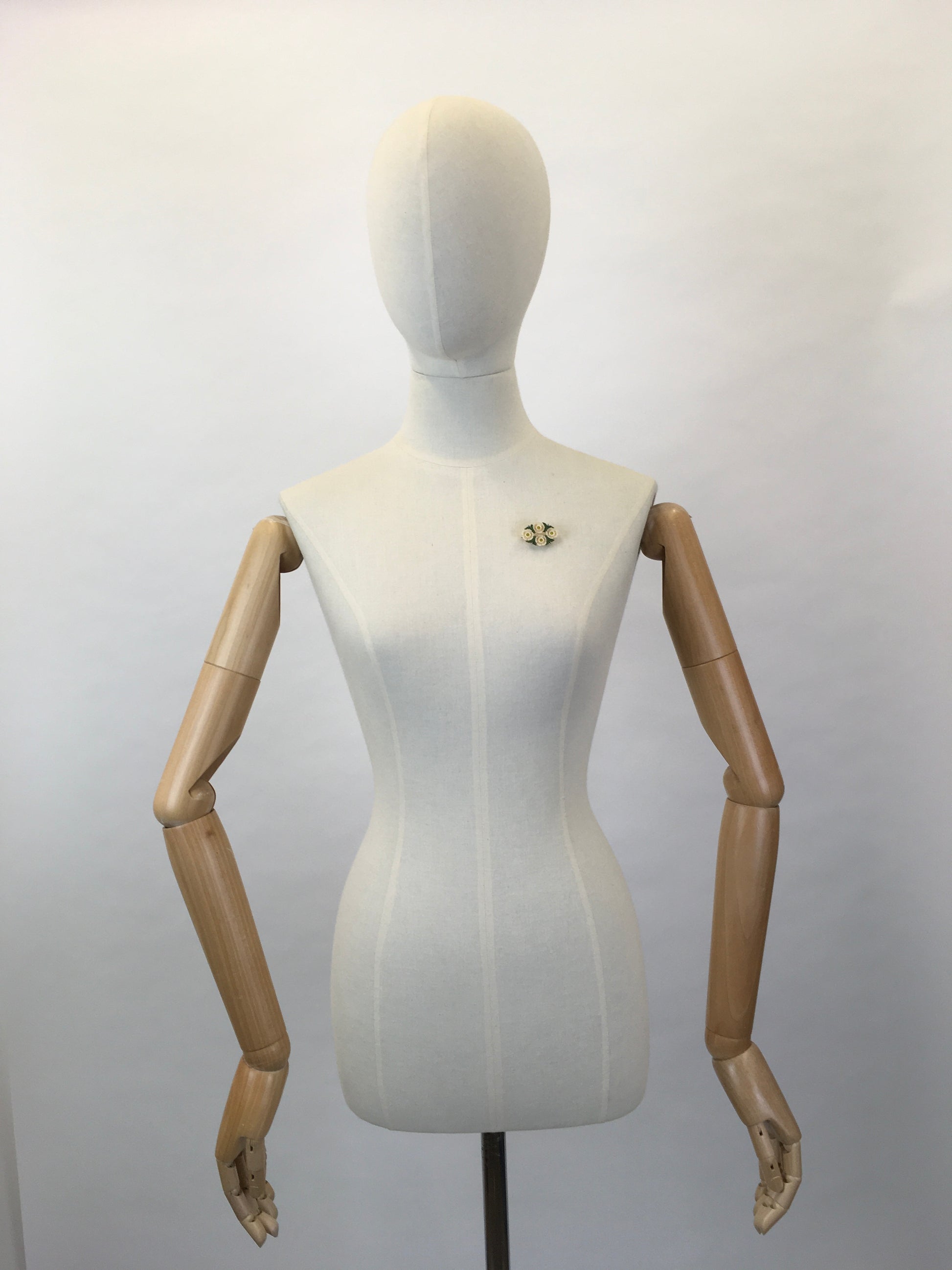 Vintage 1940’s Celluloid oval brooch with lovely white flowers and green leaves. A lovely size measuring 3cm x 2cm this piece is great for wearing on a dress or cardigan to add a little detailing. A lovely gift to yourself or someone special.