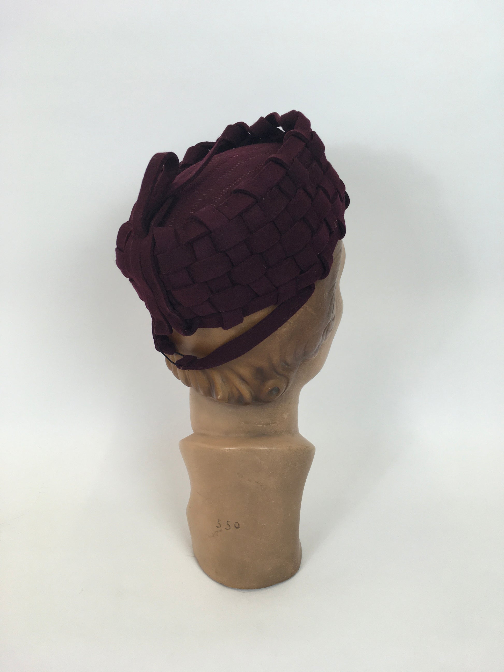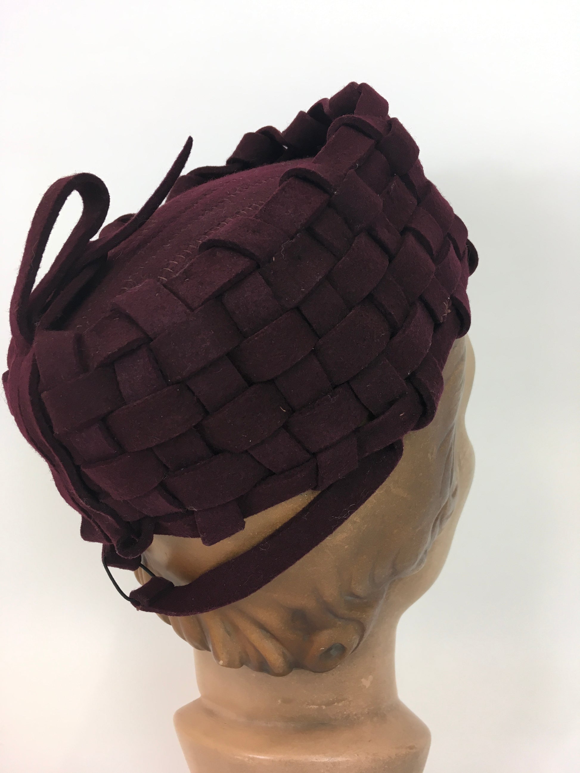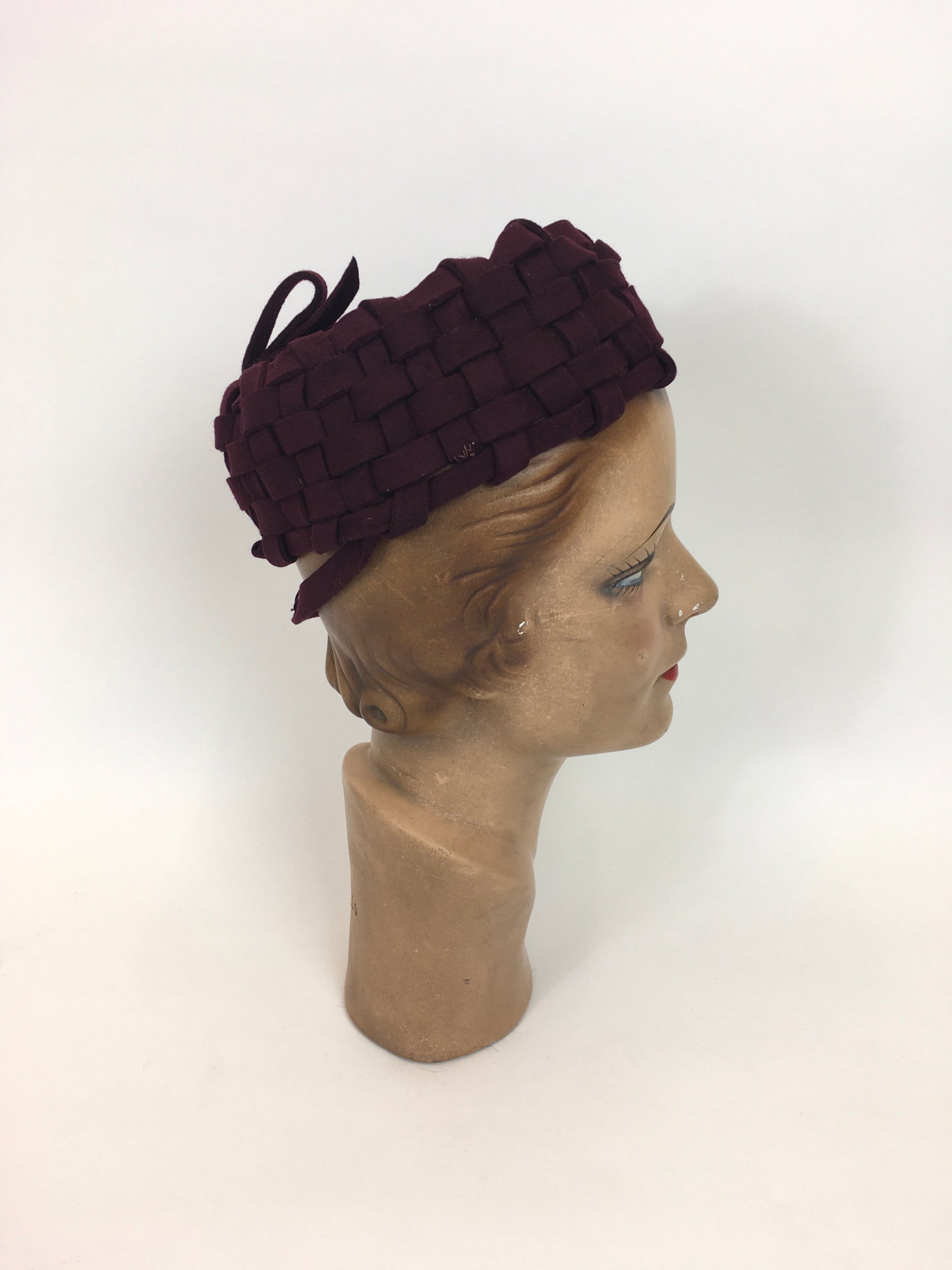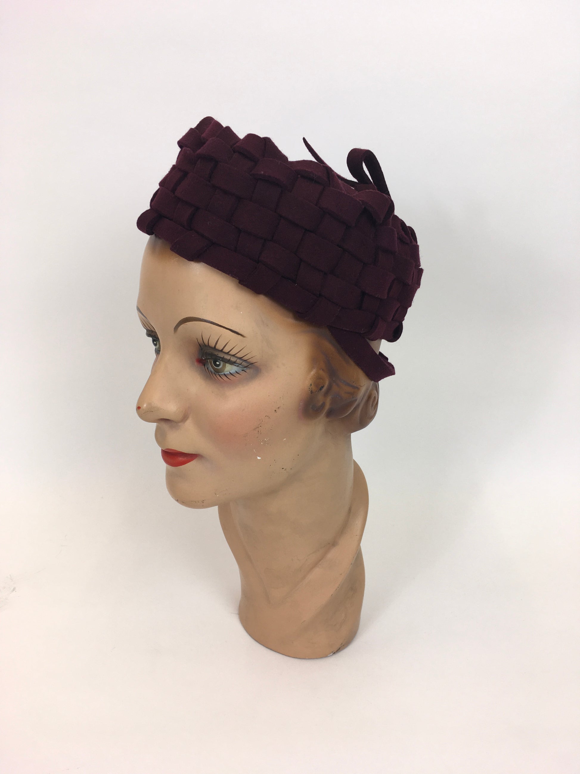 Original 1940s Deep Burgundy Felt Topper Hat - With Stunning Lattice Work Detailing
