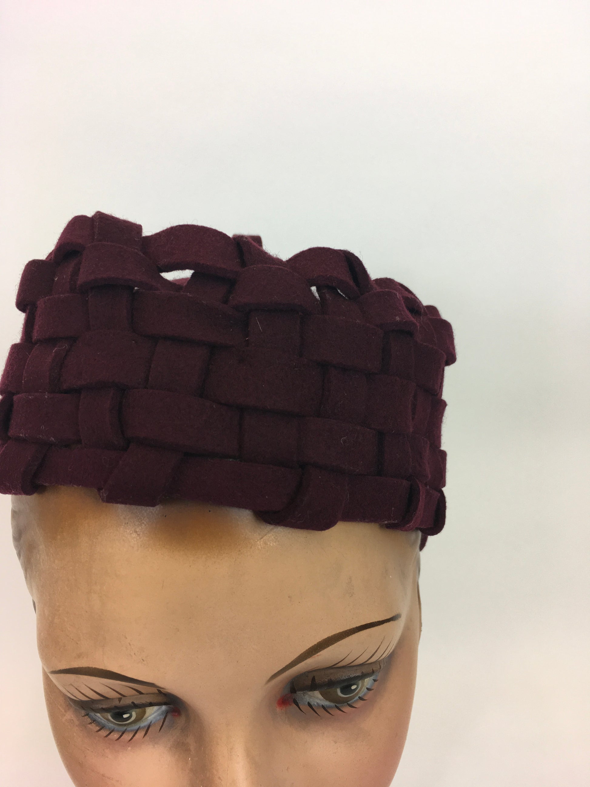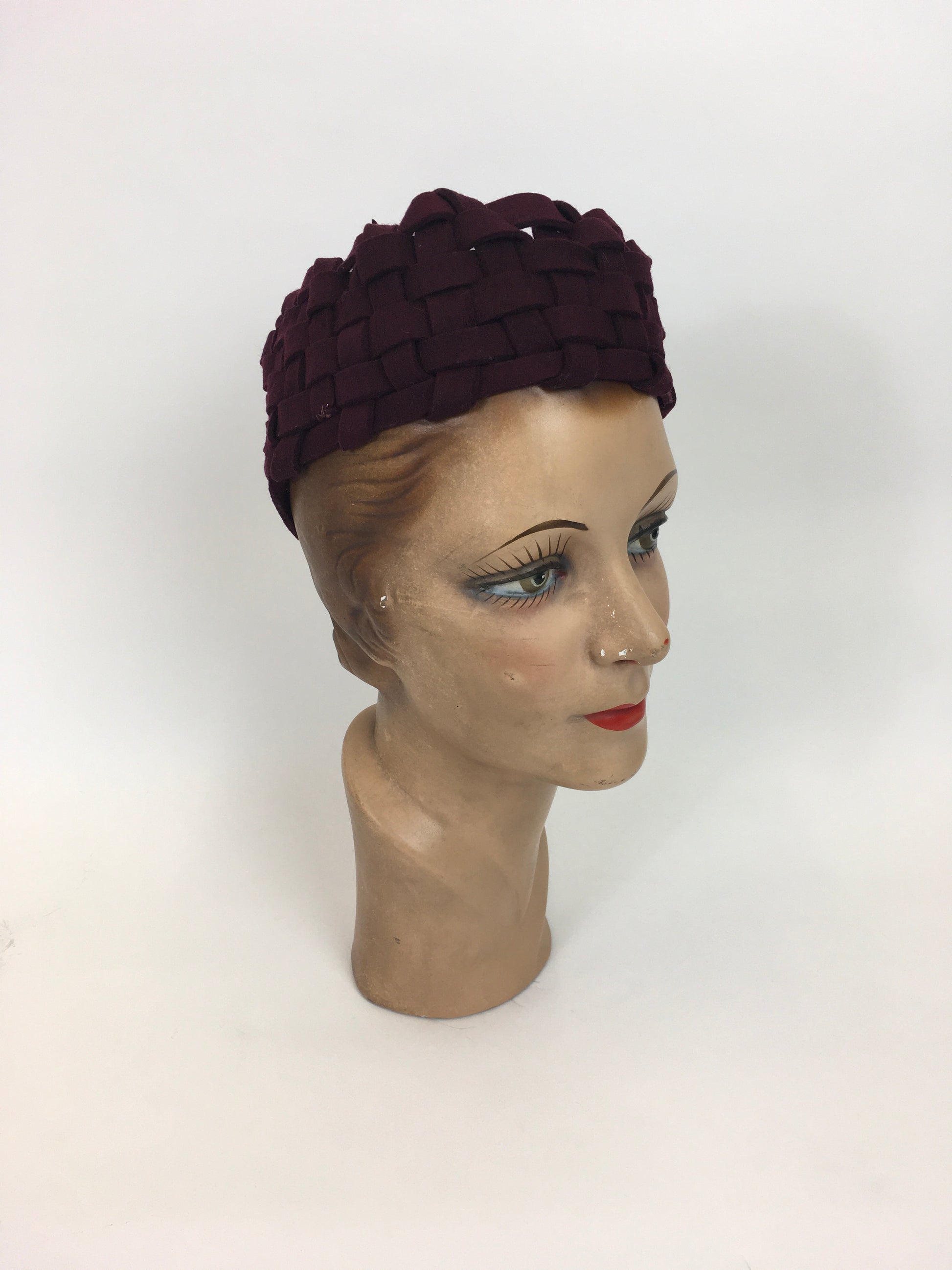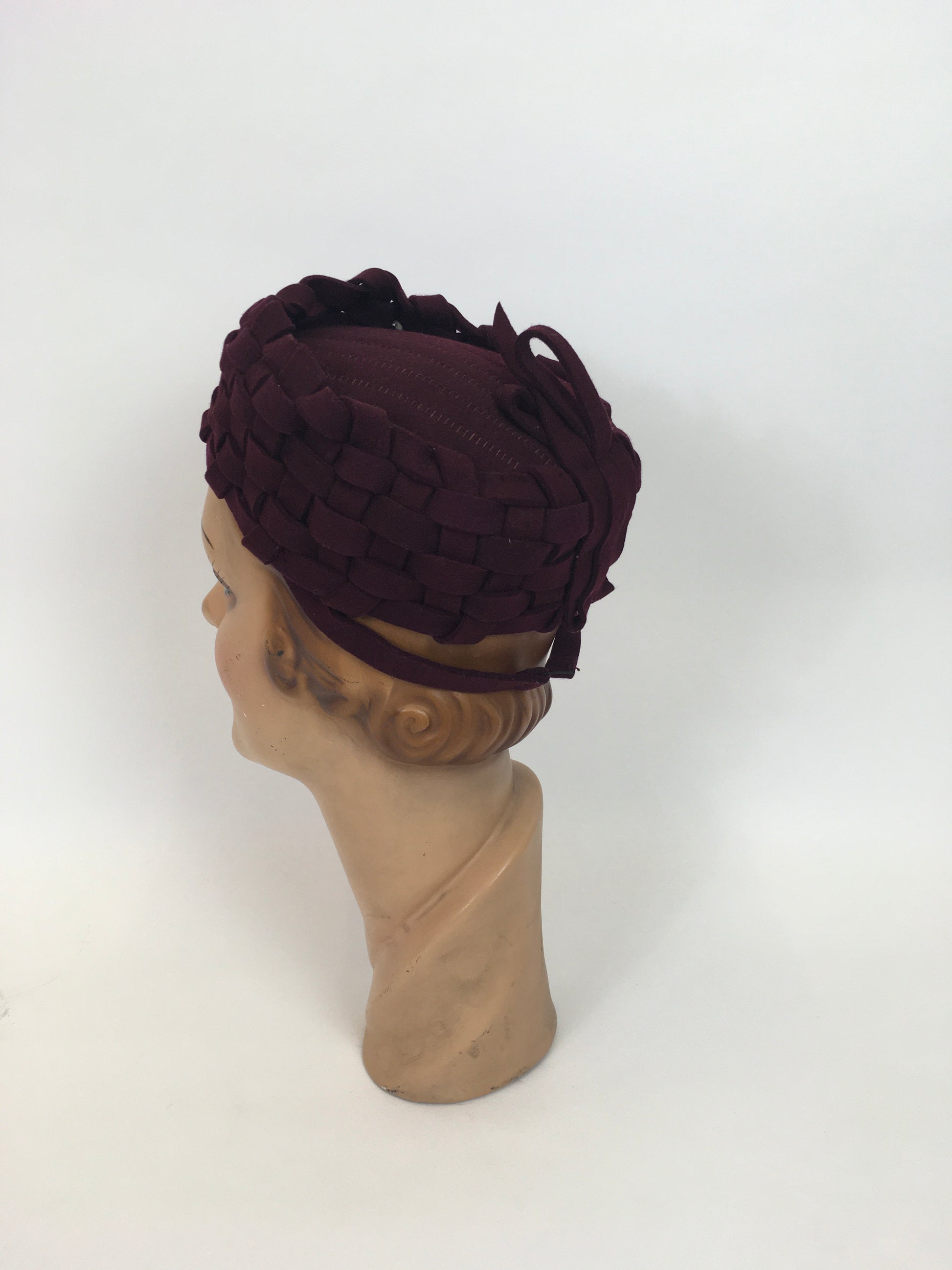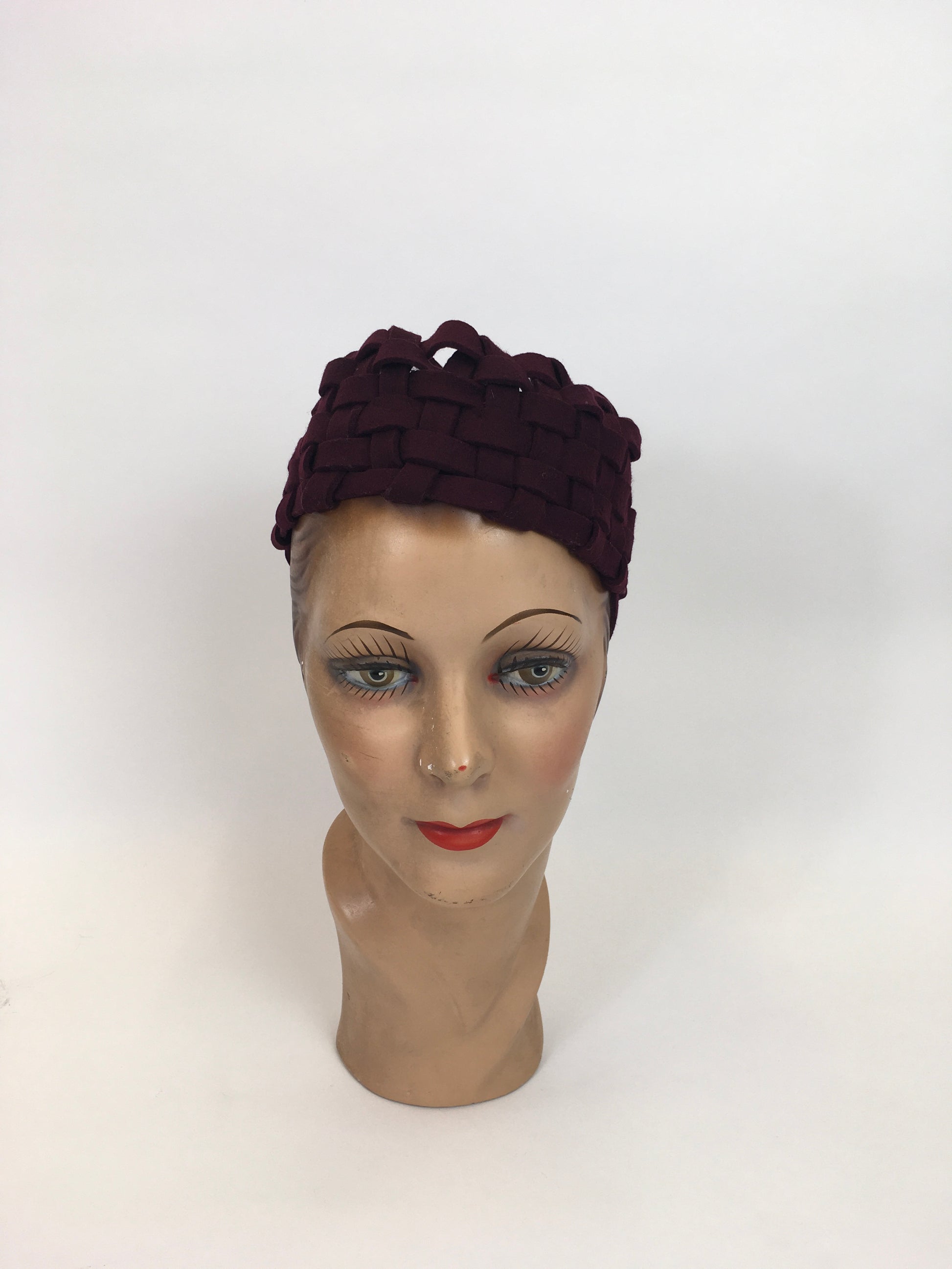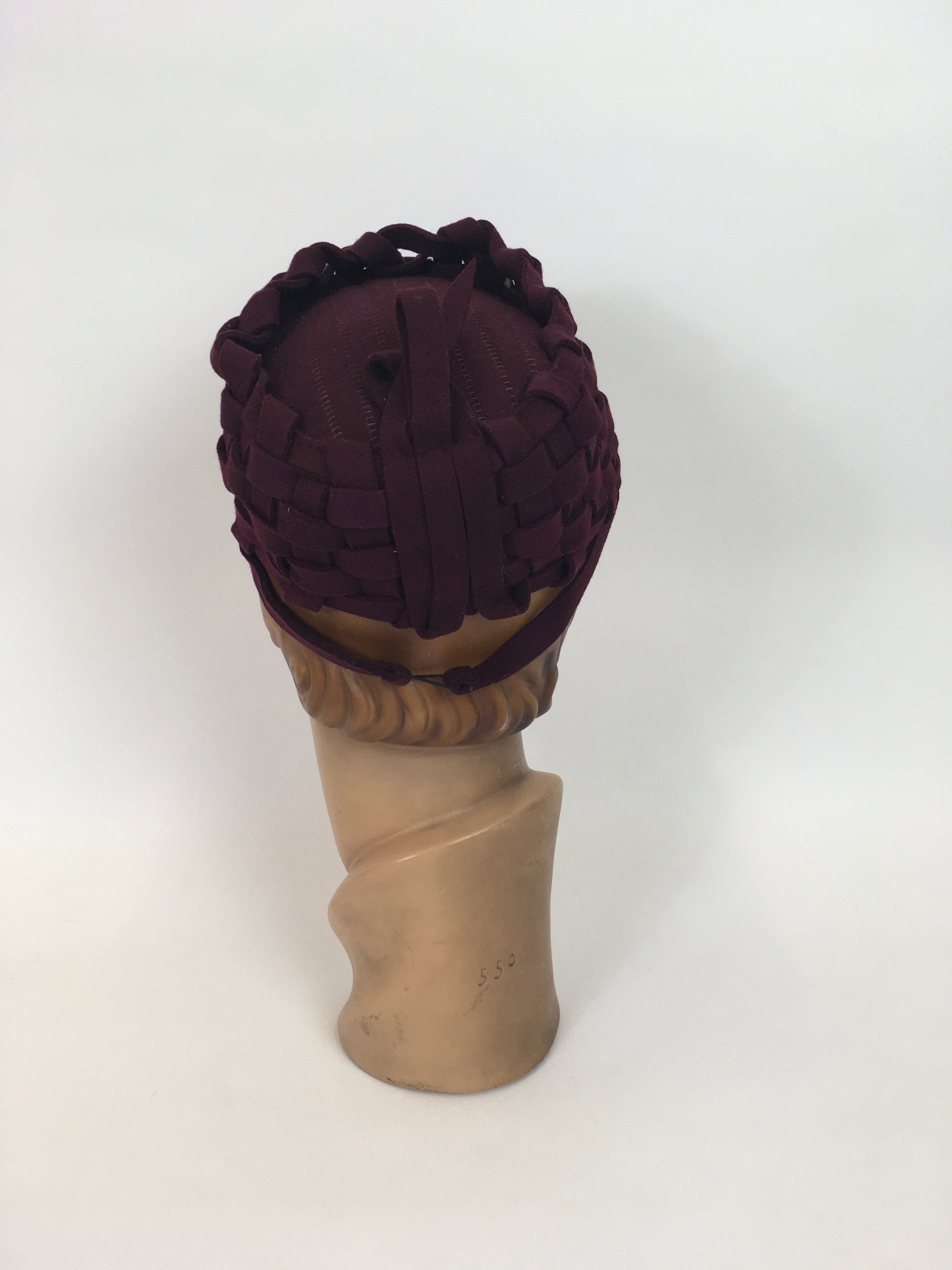 Original 1940s Deep Burgundy Felt Topper Hat - With Stunning Lattice Work Detailing