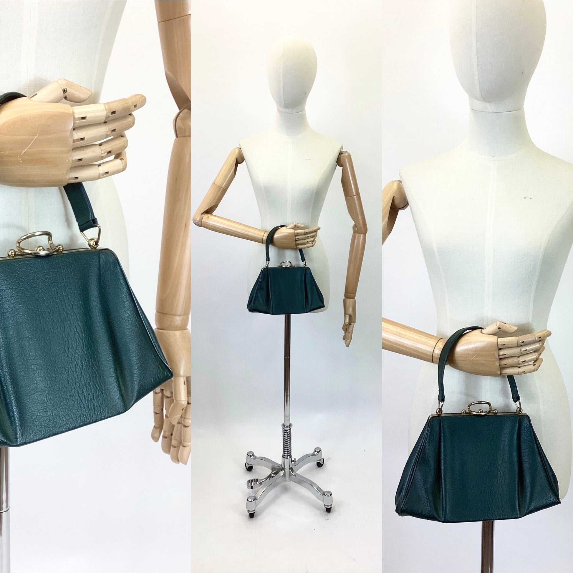 Original 1940's Gorgeous shape handbag - in Forest Green