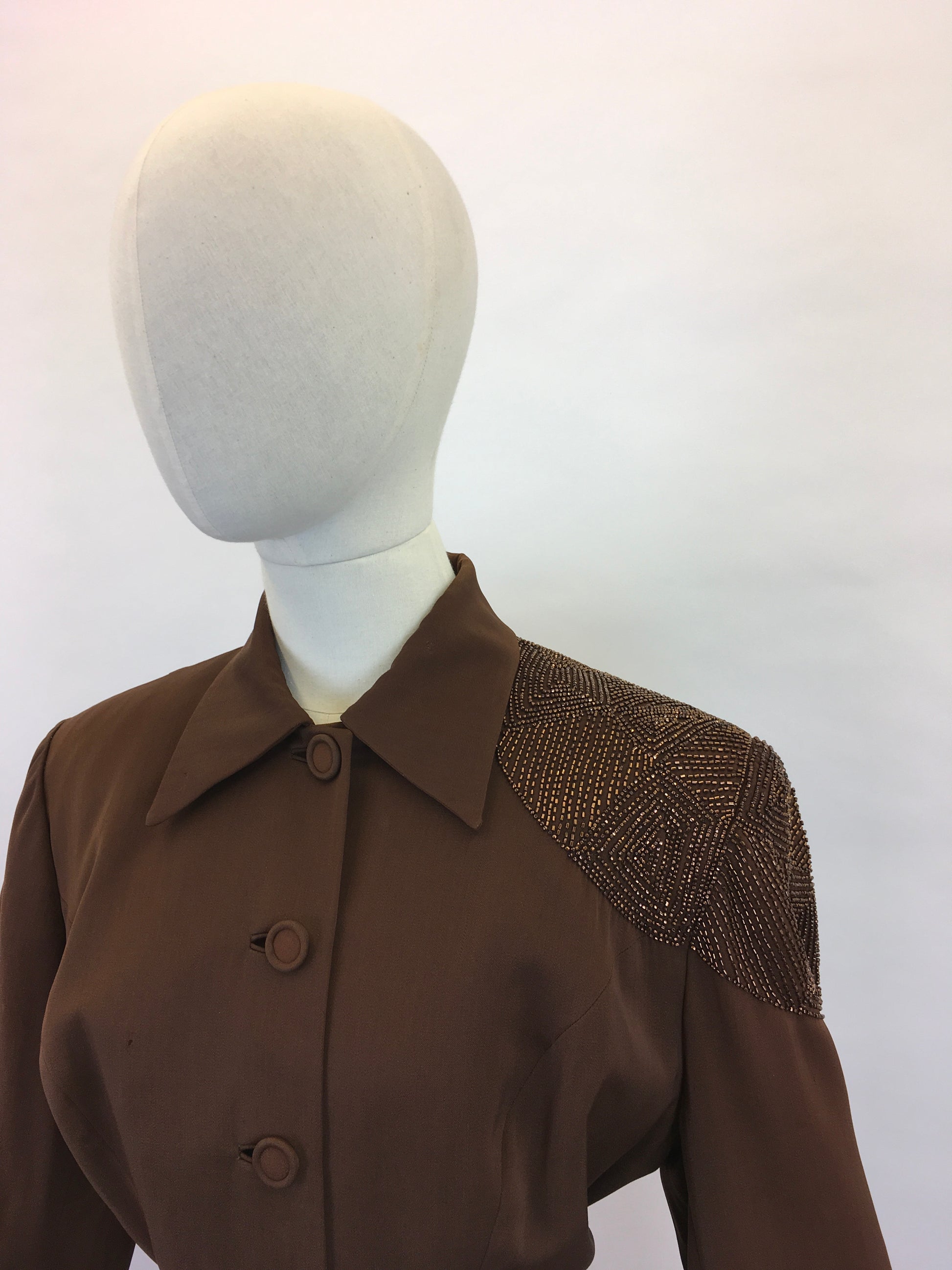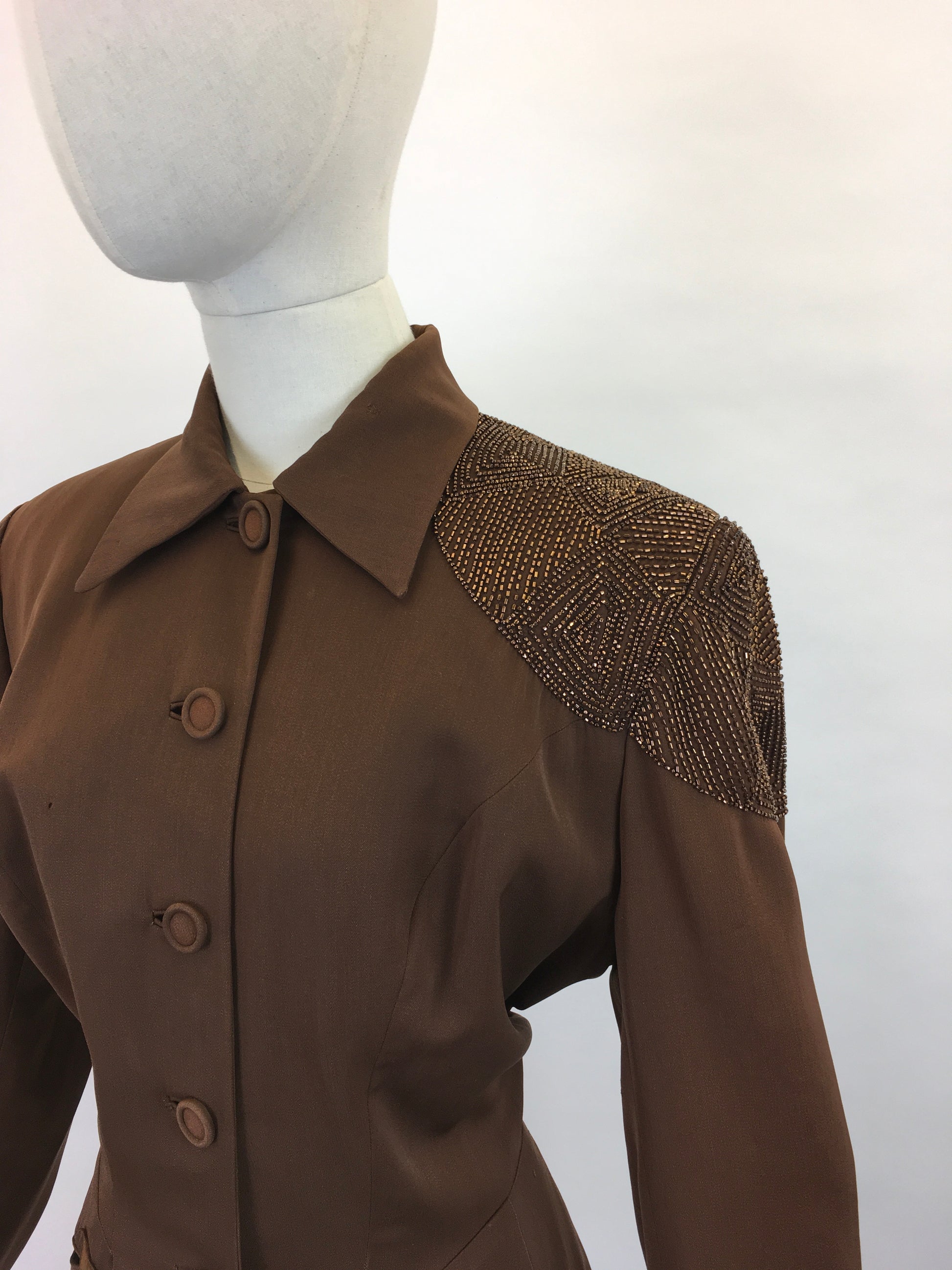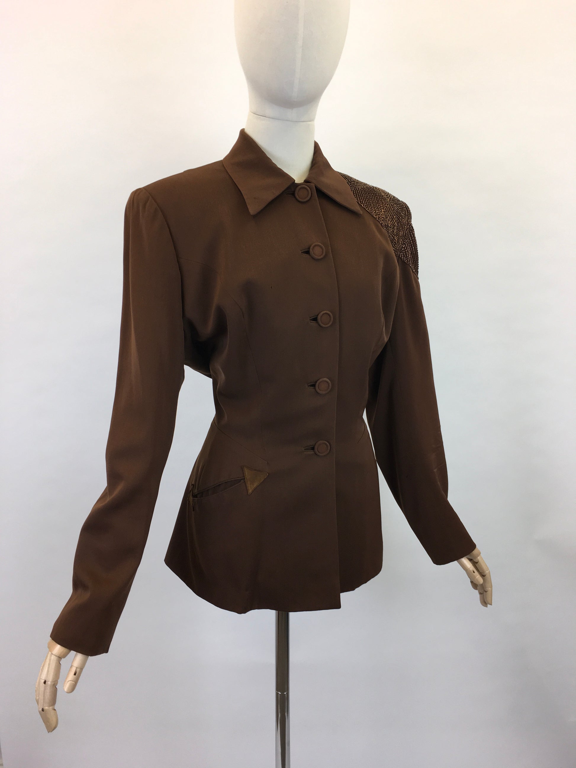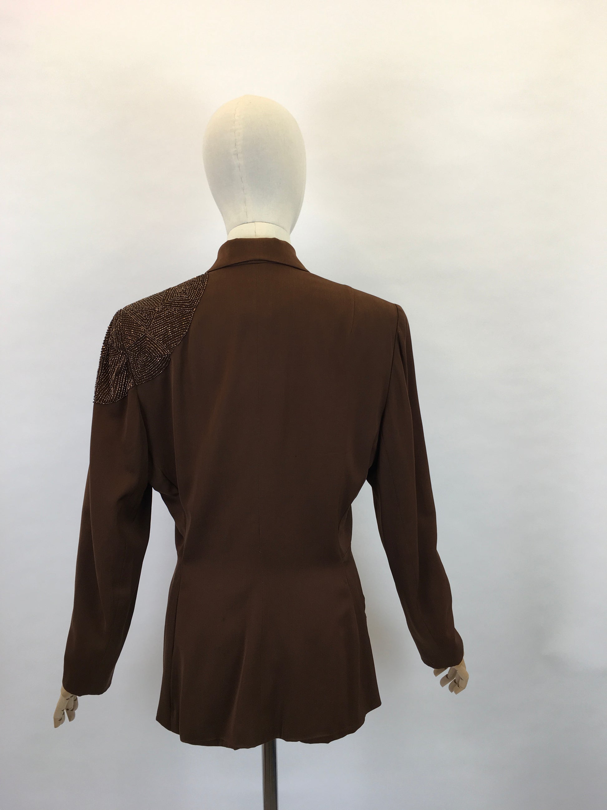 Original 1940s Stunning ‘ Fred A Block’ Jacket - With Beautiful Bronze Beadwork to the Shoulder