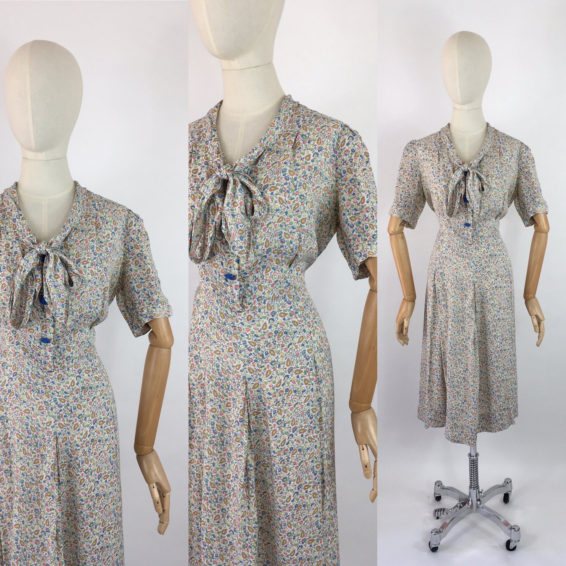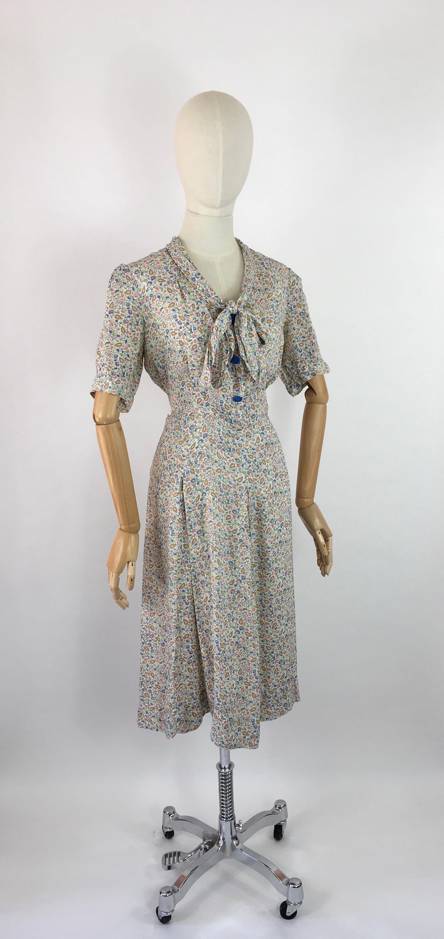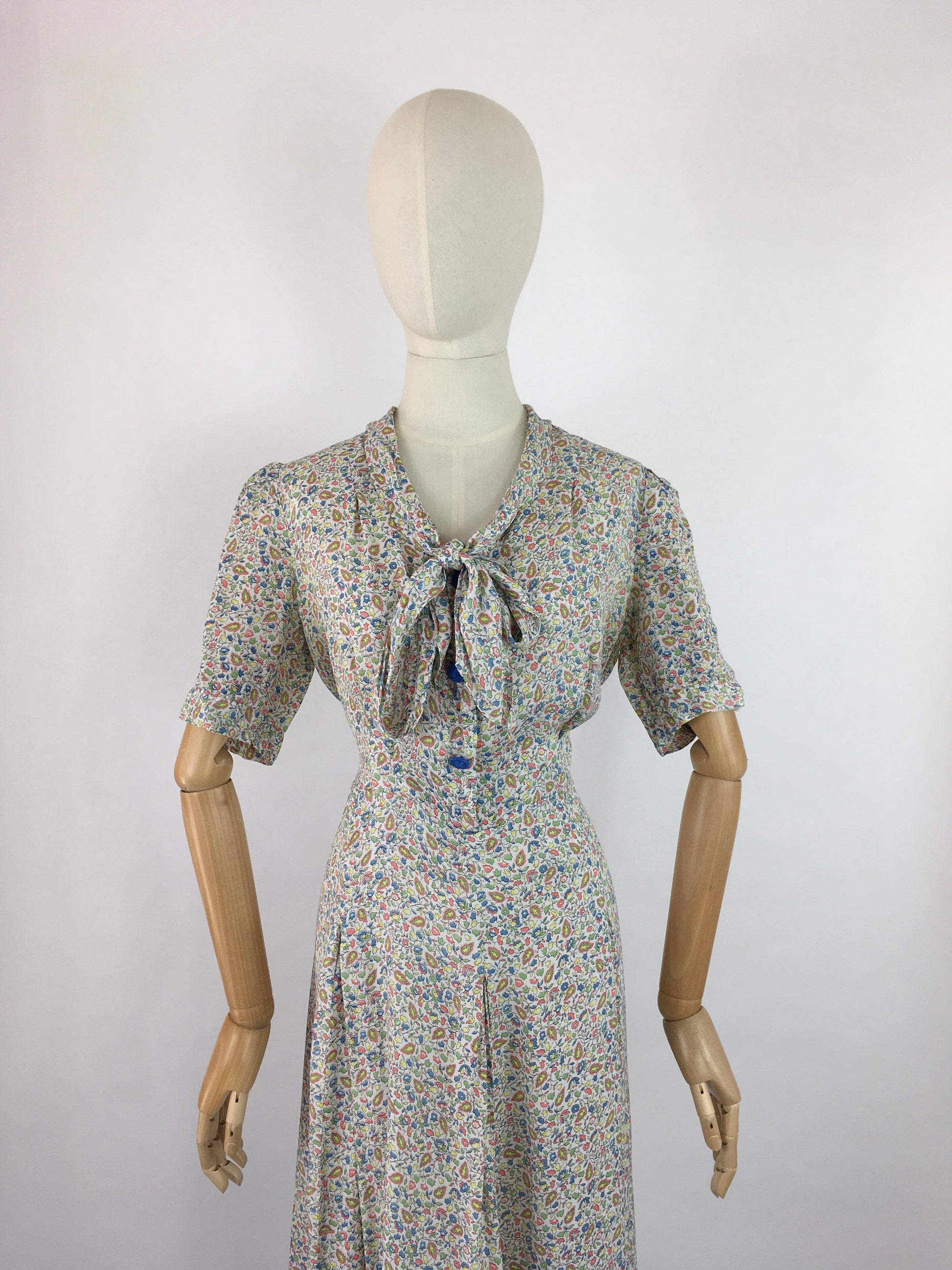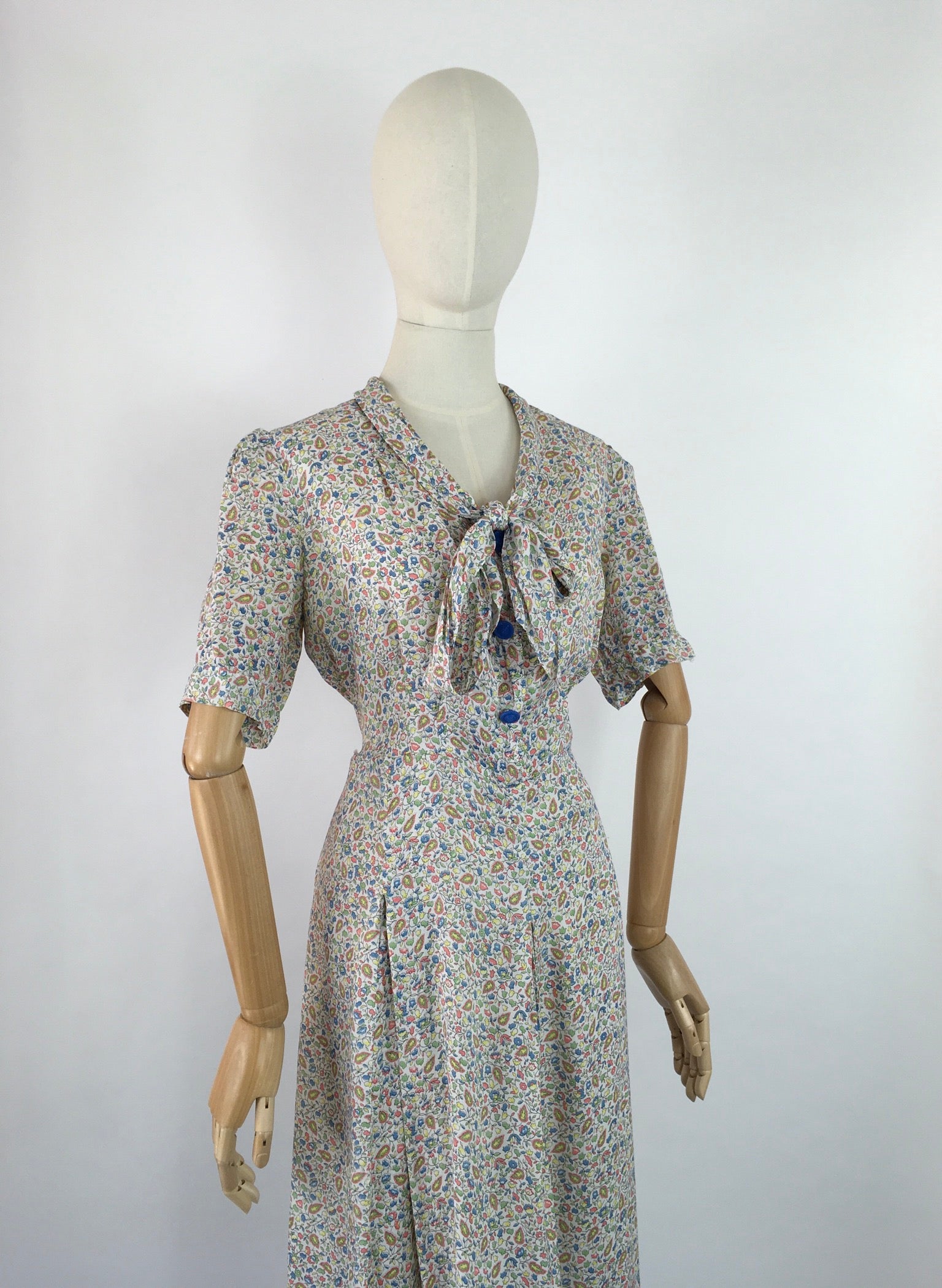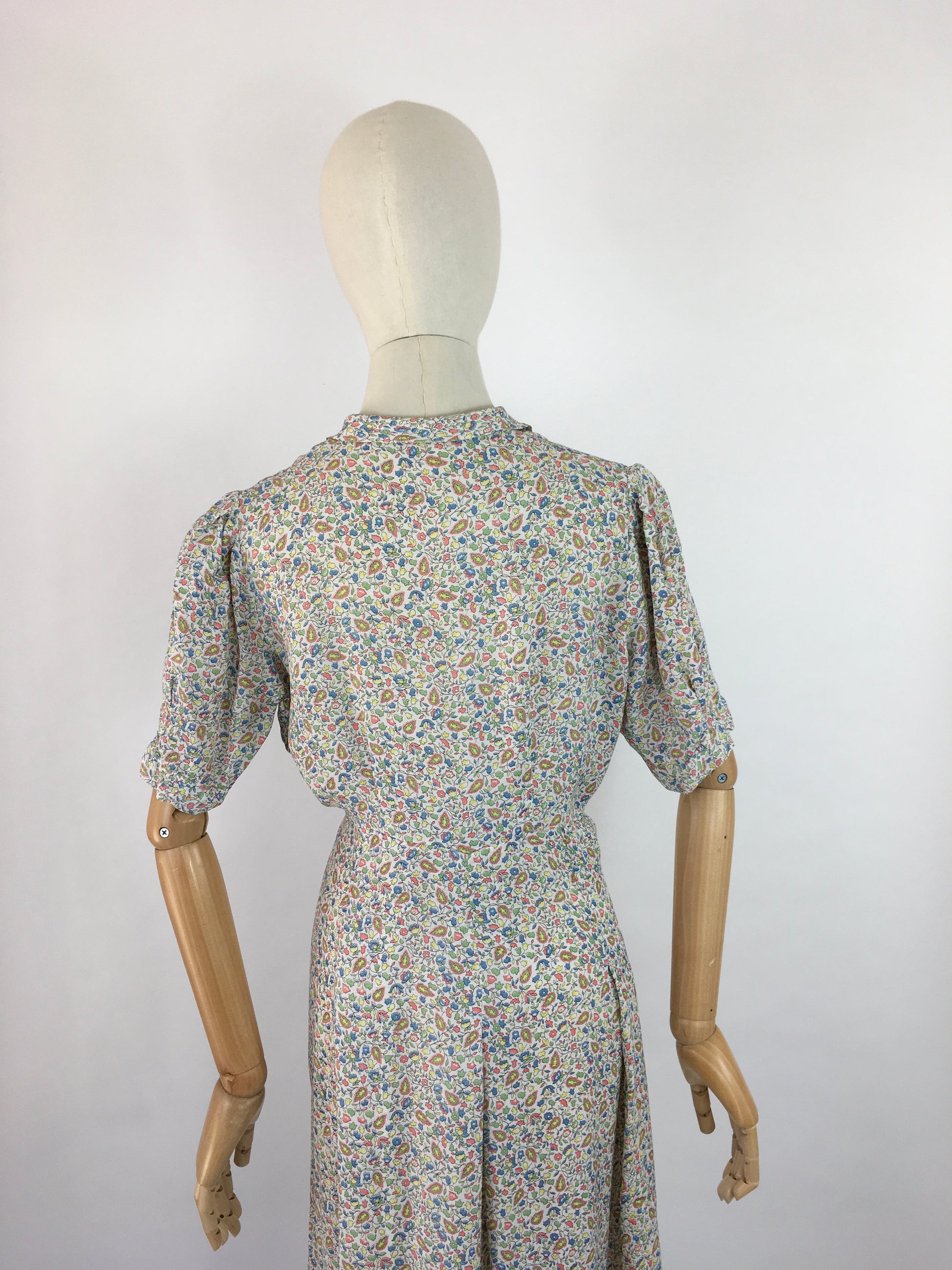 Original 1940s Summer Day Dress - In a Beautiful Floral and Paisley Print