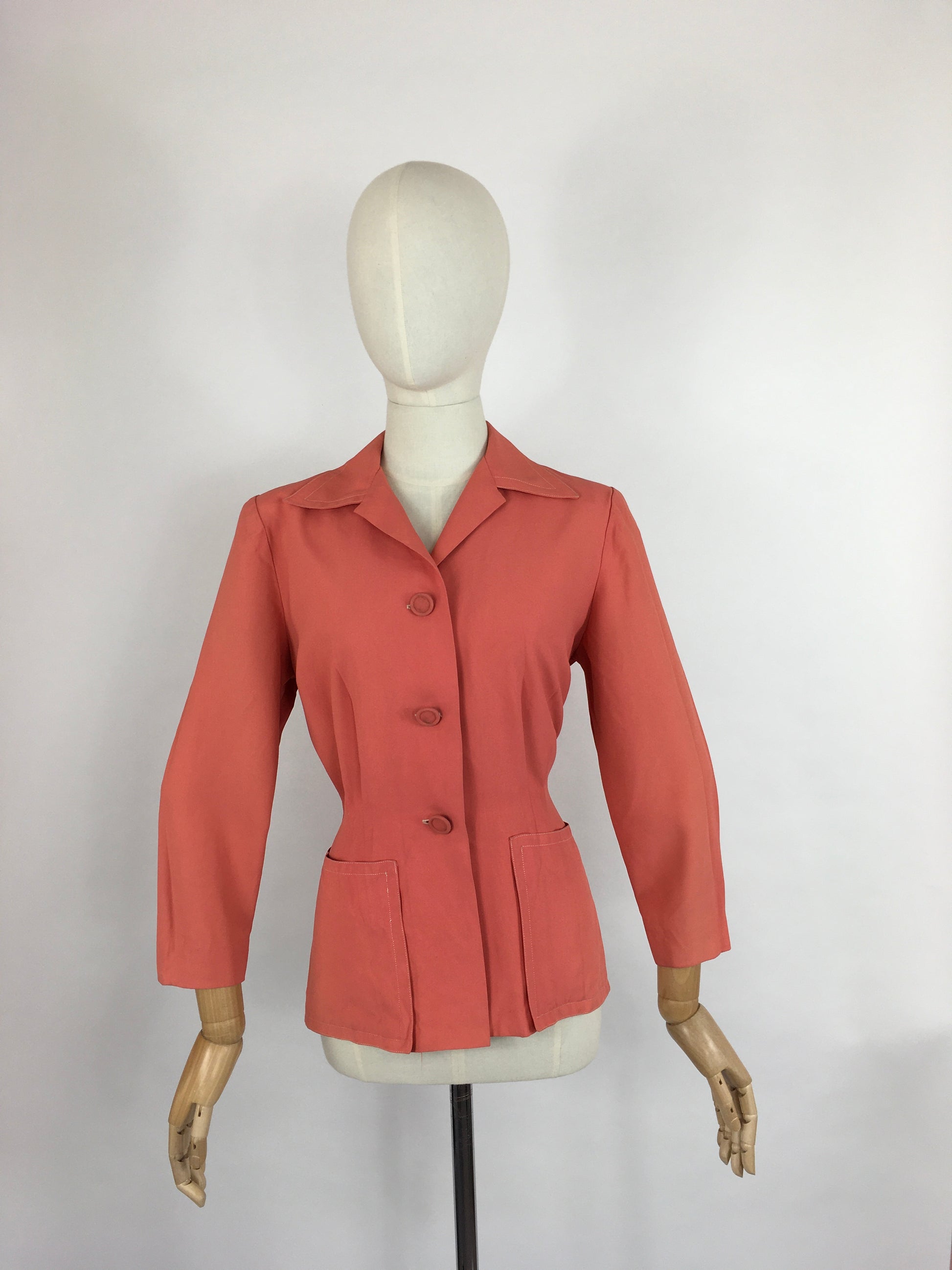 Original 1940s Summer Jacket With Back Belt Detailing - In A Fabulous Coral Colour ‘ A Bobby Ann Original’
