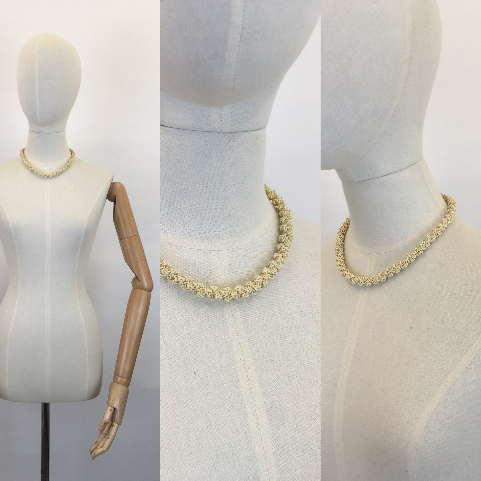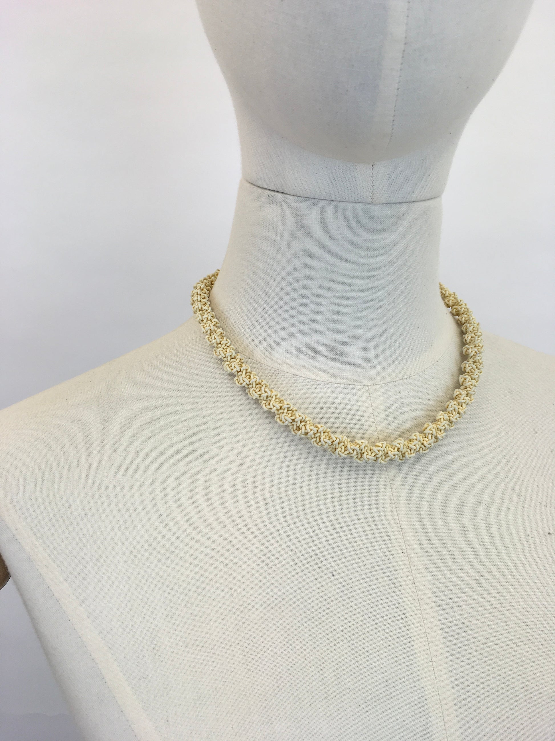 Original 1940s Telephone Cord ‘ Scoobie ‘ Necklace - In A Corn Colourway, Mixture of Cream and Yellow Wirework