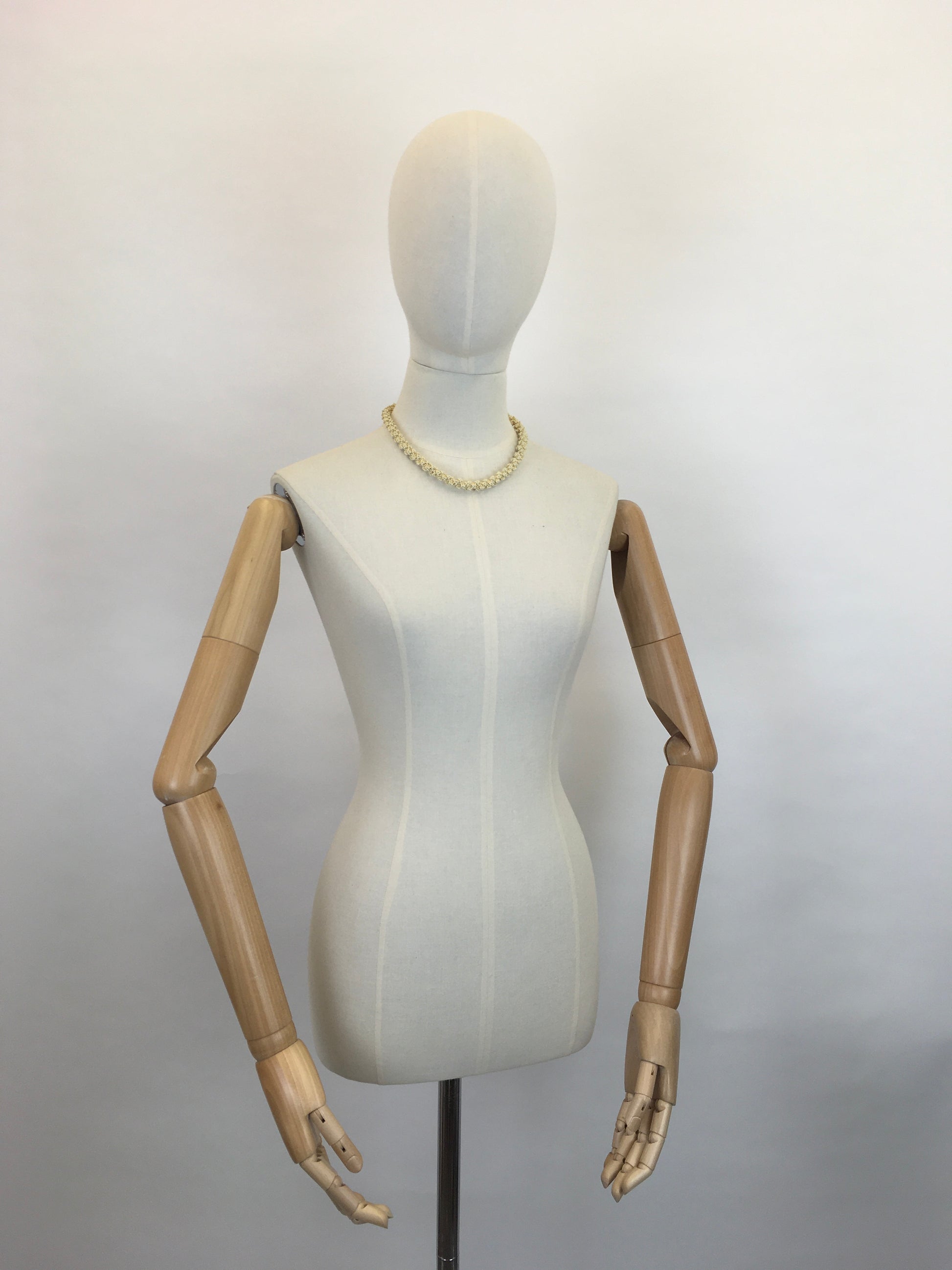 Vintage 1940s Telephone Cord ‘ Scoobie’ Necklace in a lovely corn colour, a mixture of cream and yellow wire work. Such a lovely colour combination and very unusual as they often only the one colour. Measuring 19’ total length with some slight stretch. A lovely treat to yourself or someone special and a must have for any make do and mend loving lady.