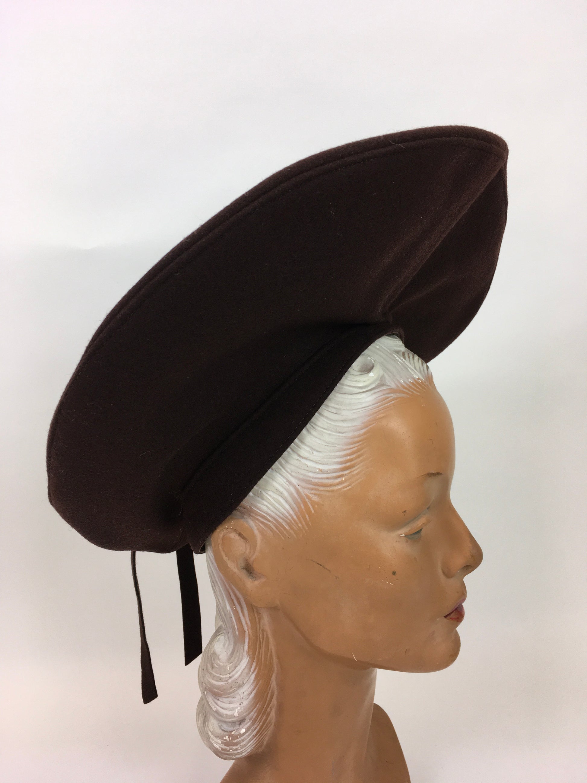 Original 1940s Warm Brown Felt Halo Hat - Made by ‘ Gimbel Brothers ‘
