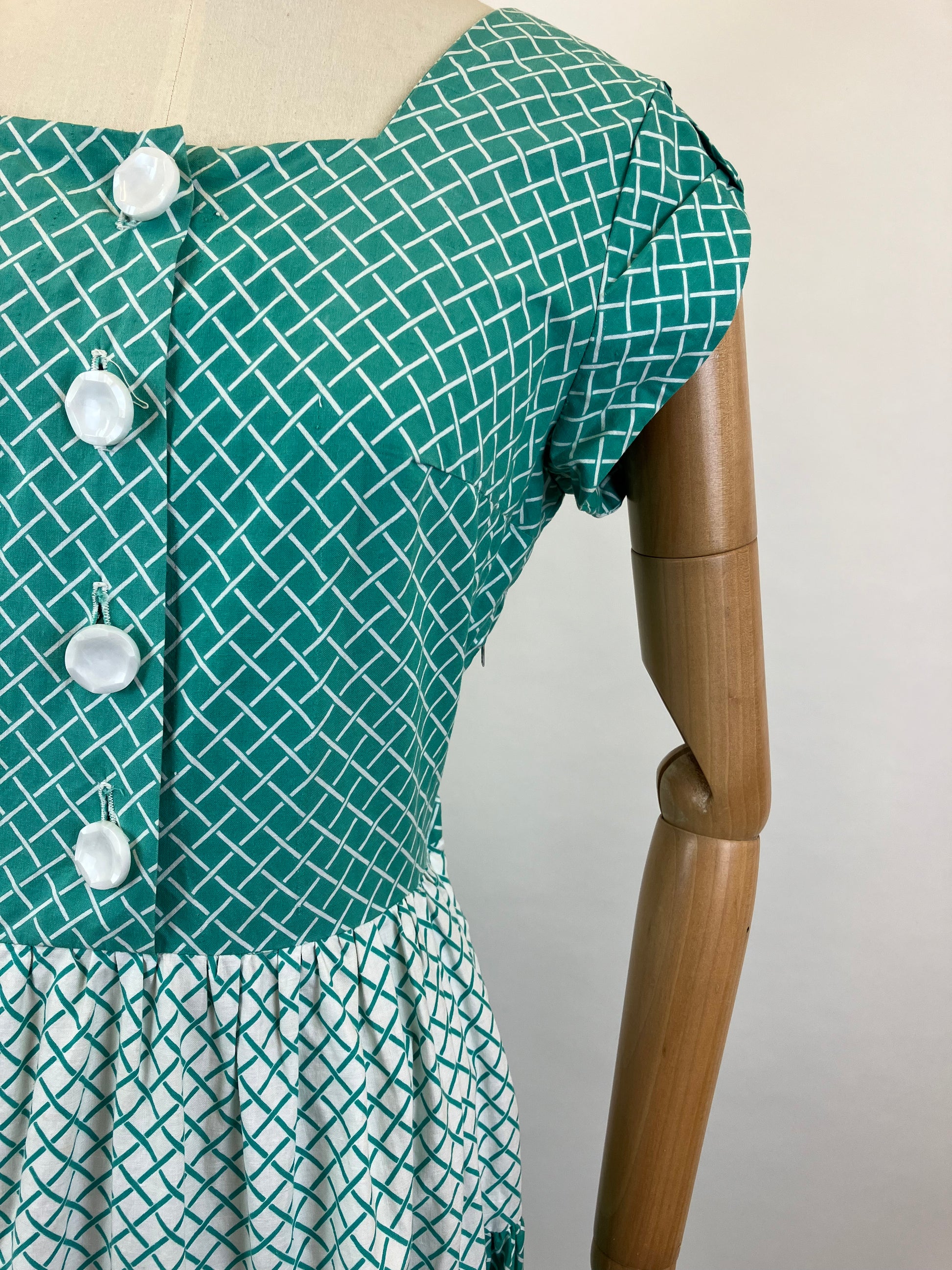 Vintage 1950’s beautiful cotton day dress in Jade & White.