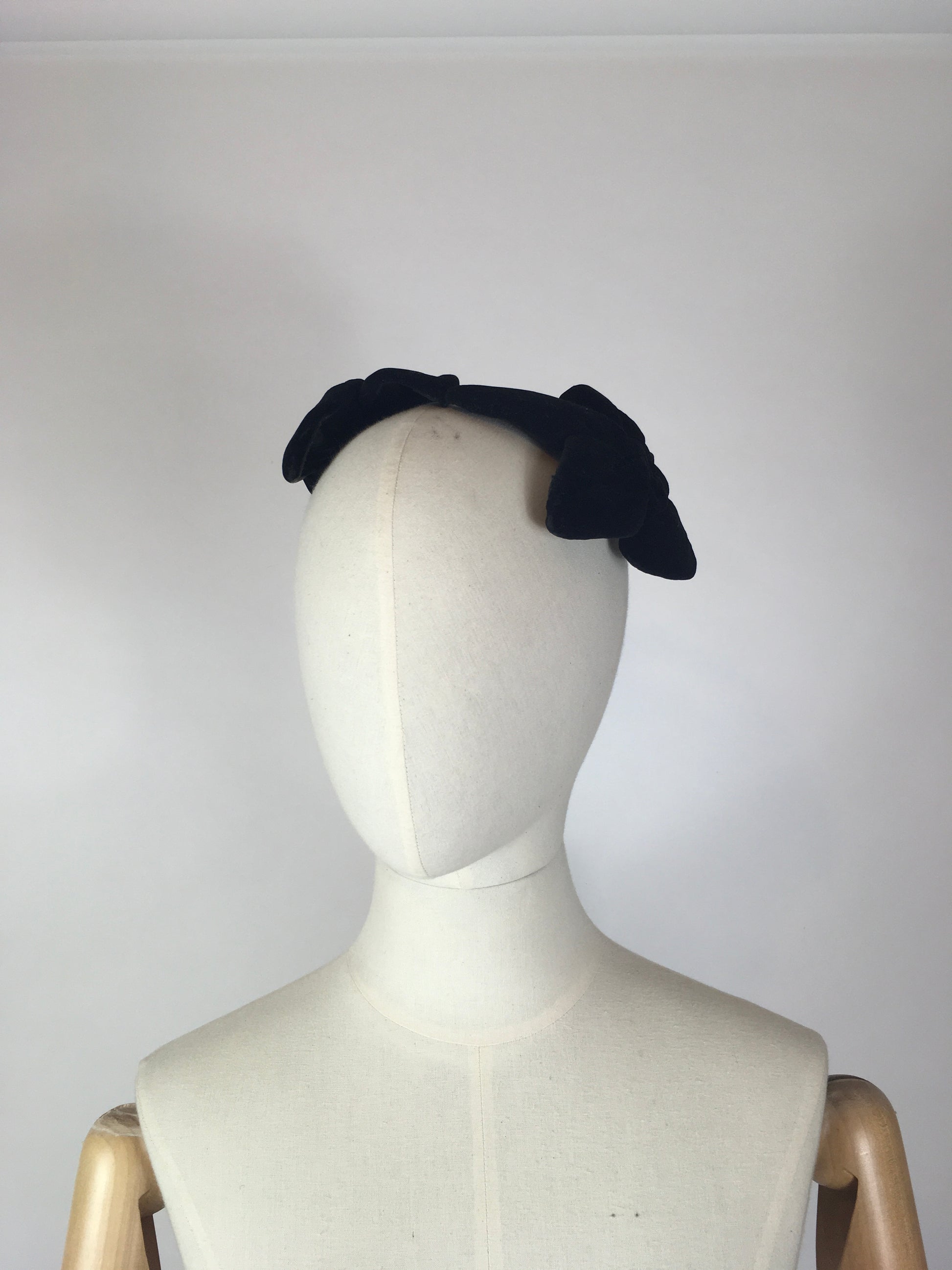 Original 1950’s Black Velvet Headpiece - With Fabulous Bow Shaping