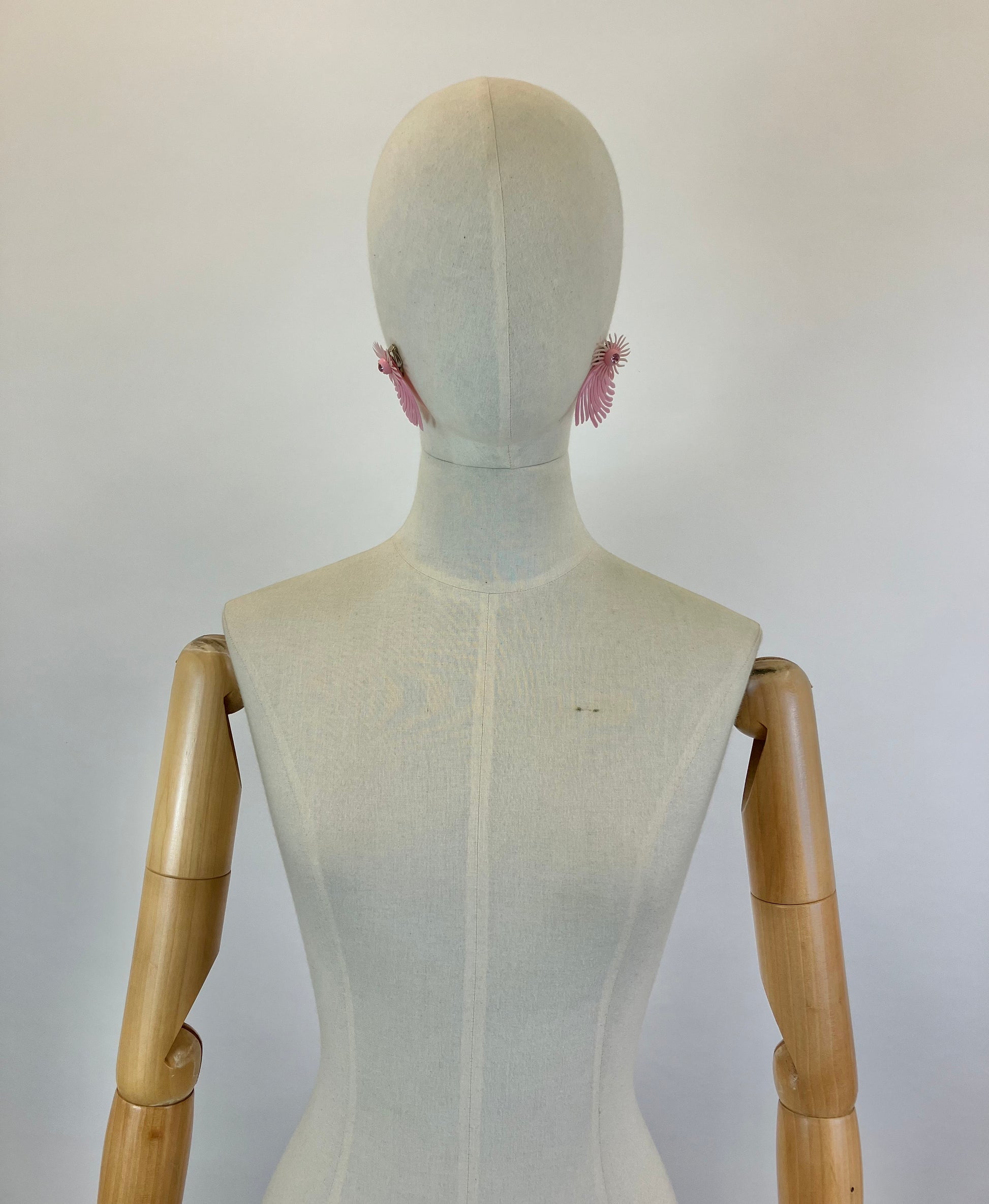 Vintage 1950’s clip on earrings in Baby Pink - feathers. A fabulous pair of dead stock clip on earrings, still on original card, with a paste jewel in the centre. Clips nice and tight.