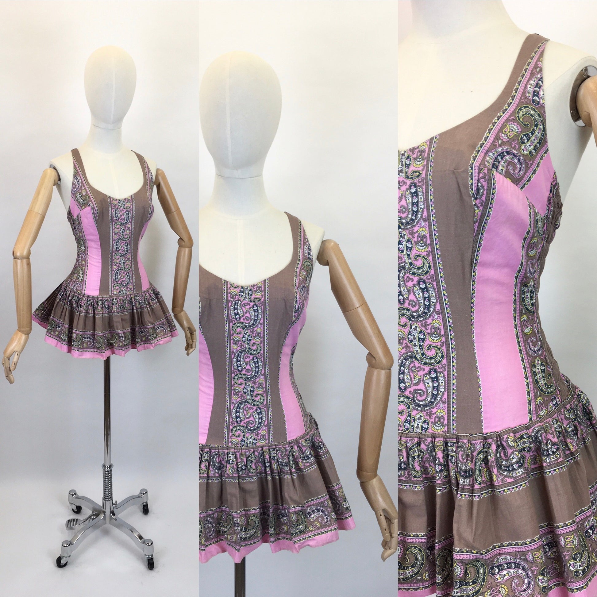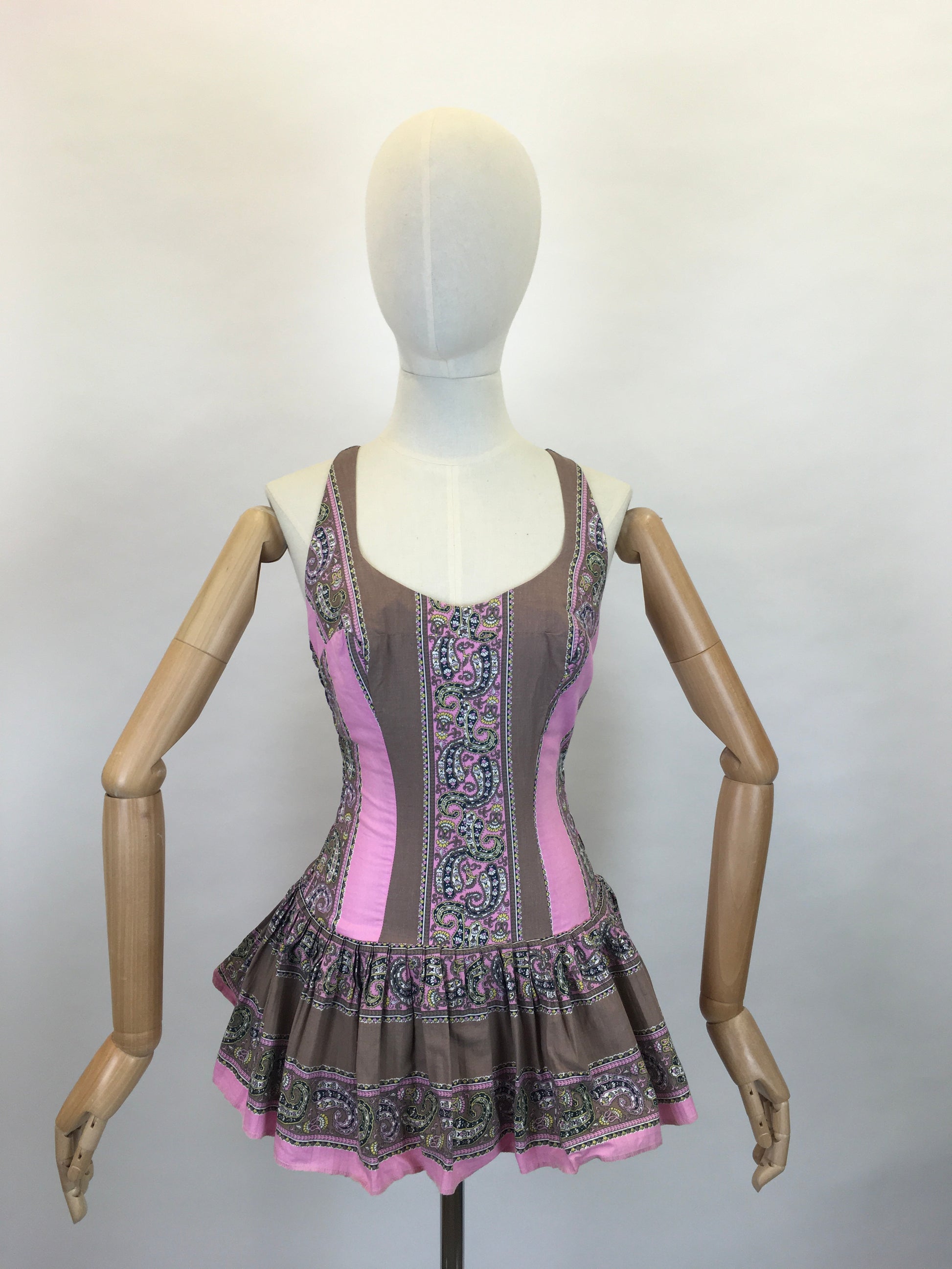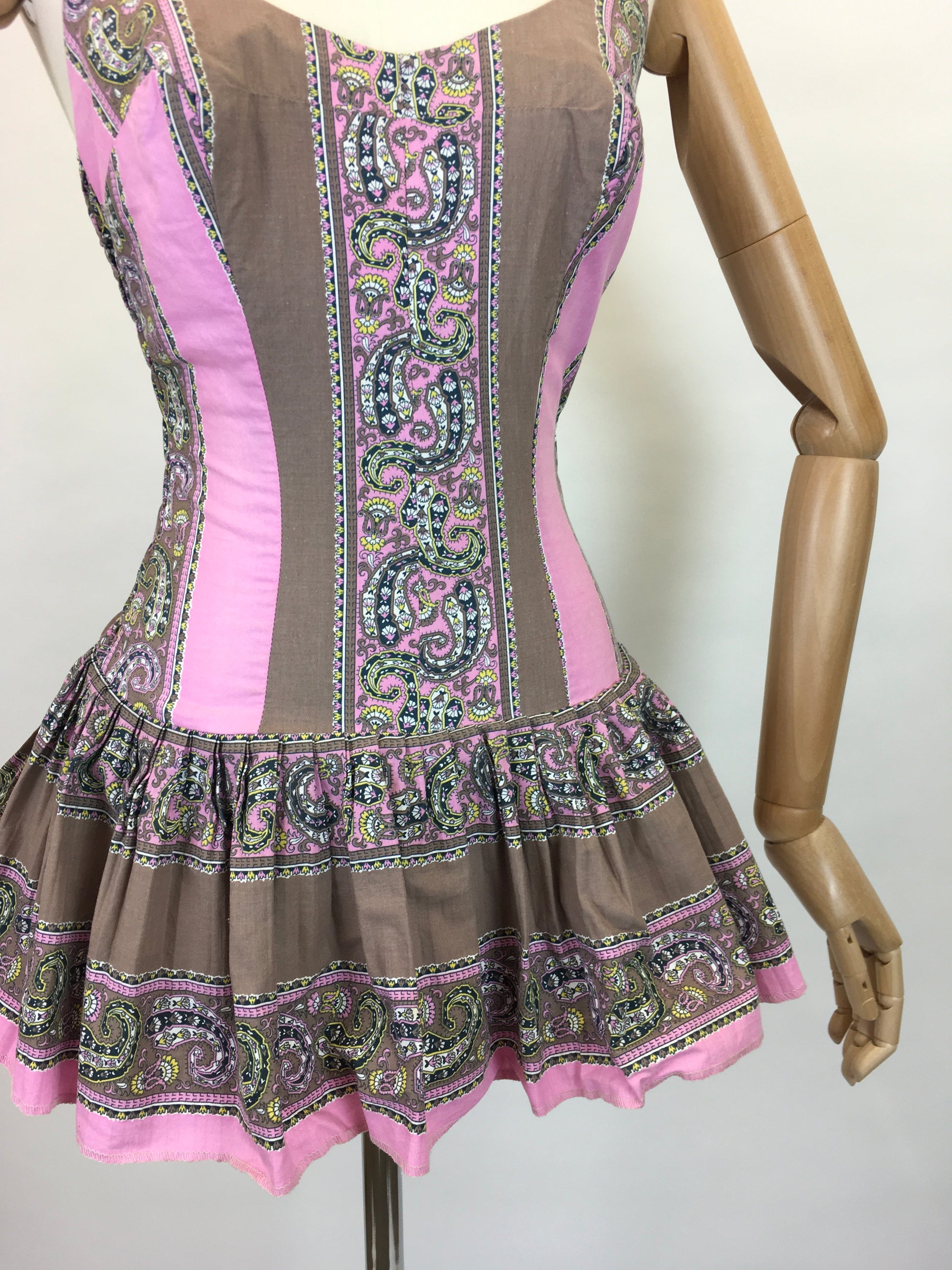 Original 1950’s ‘ Dorothy Perkins ‘ Bathing Costume - In a Lovely Colour Block and Paisley Print Cotton