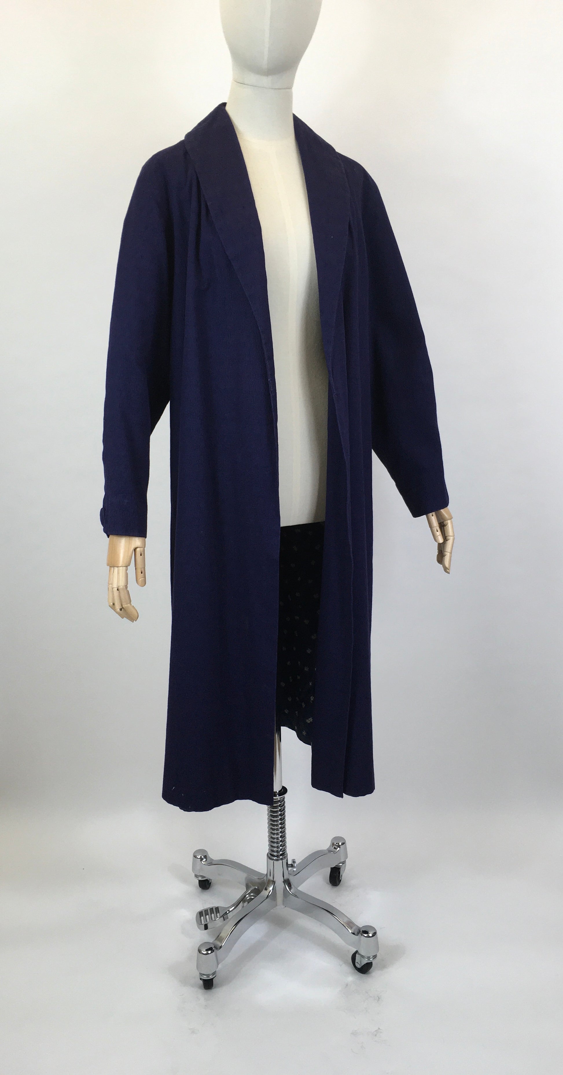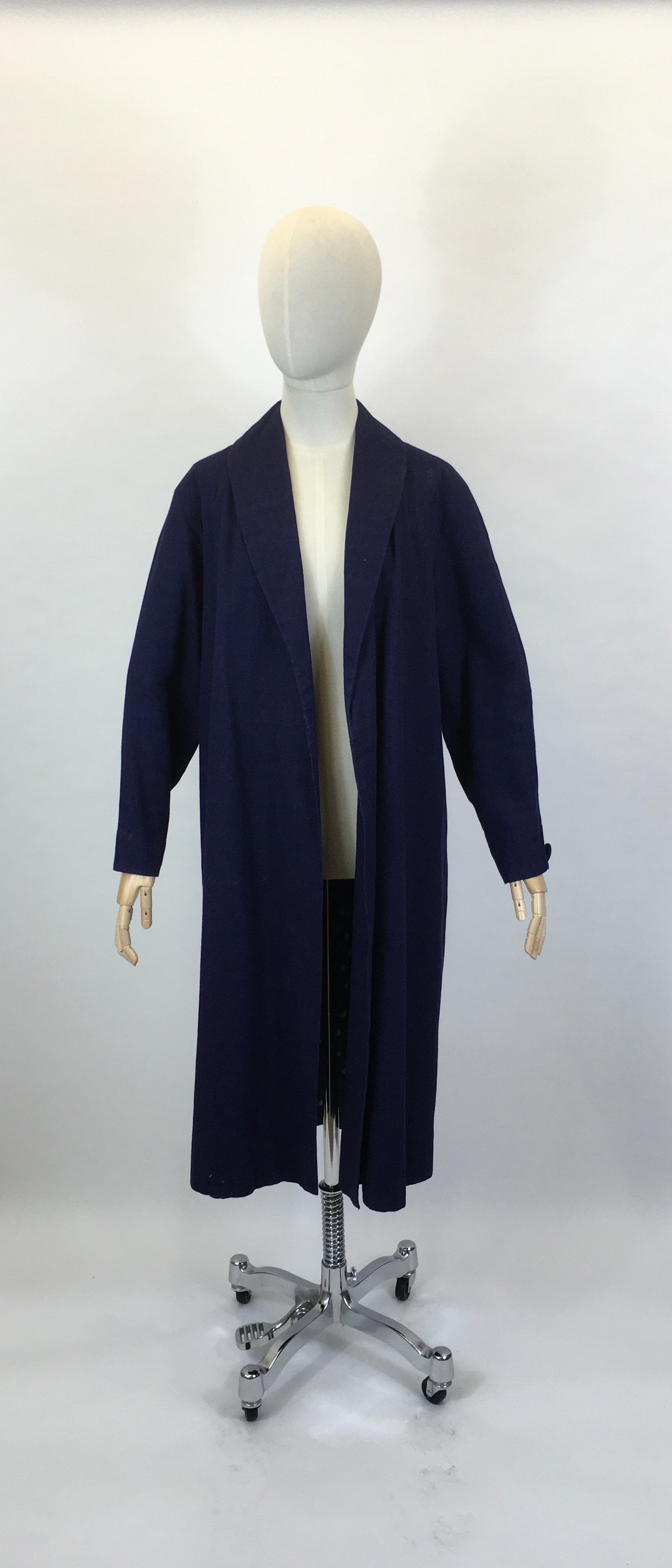 RESERVED Do NOT BUY - Original 1950’s Edge to Edge Duster Coat - In a Midnight Blue Textured Cloth With Contrast Lining