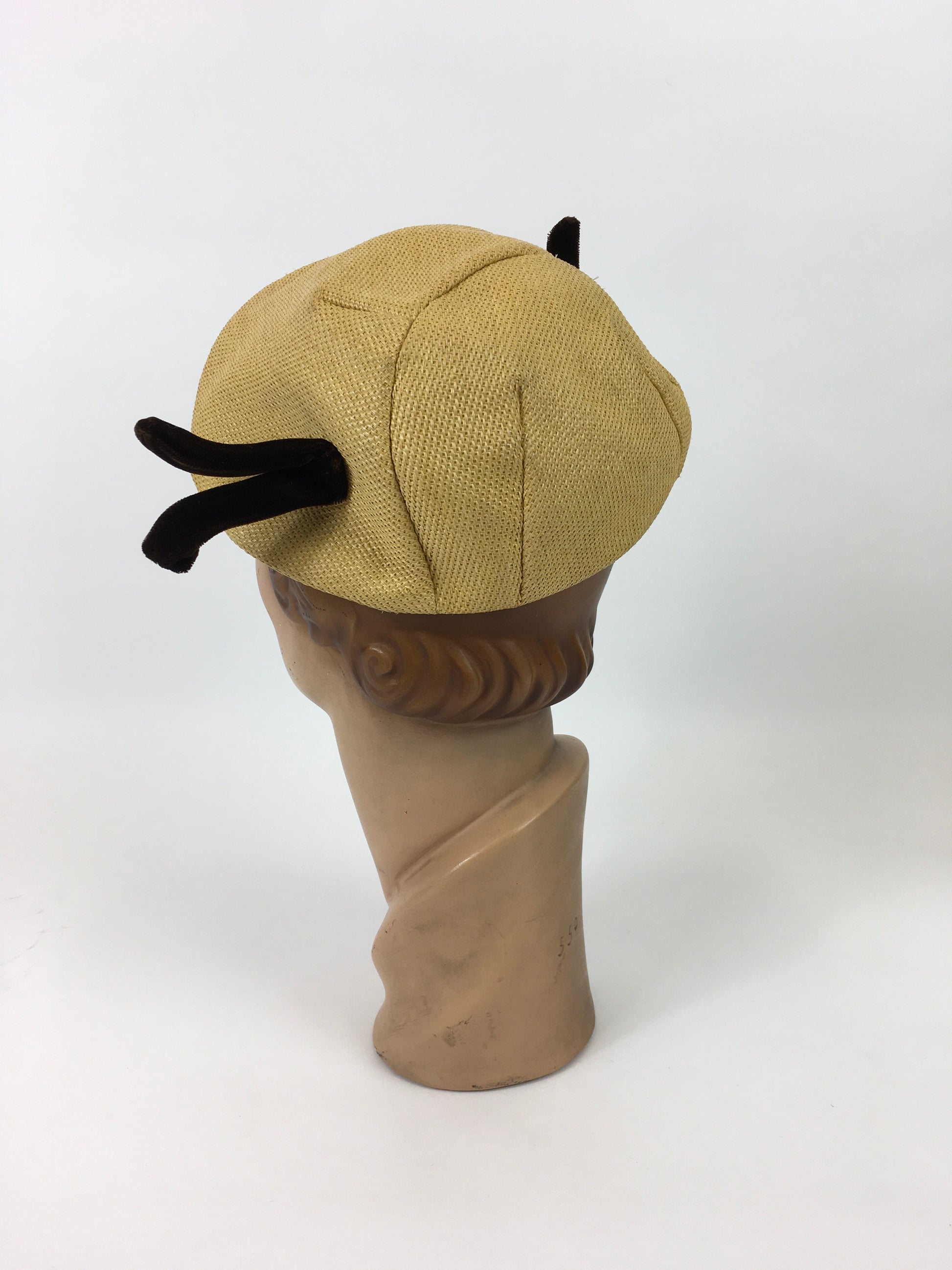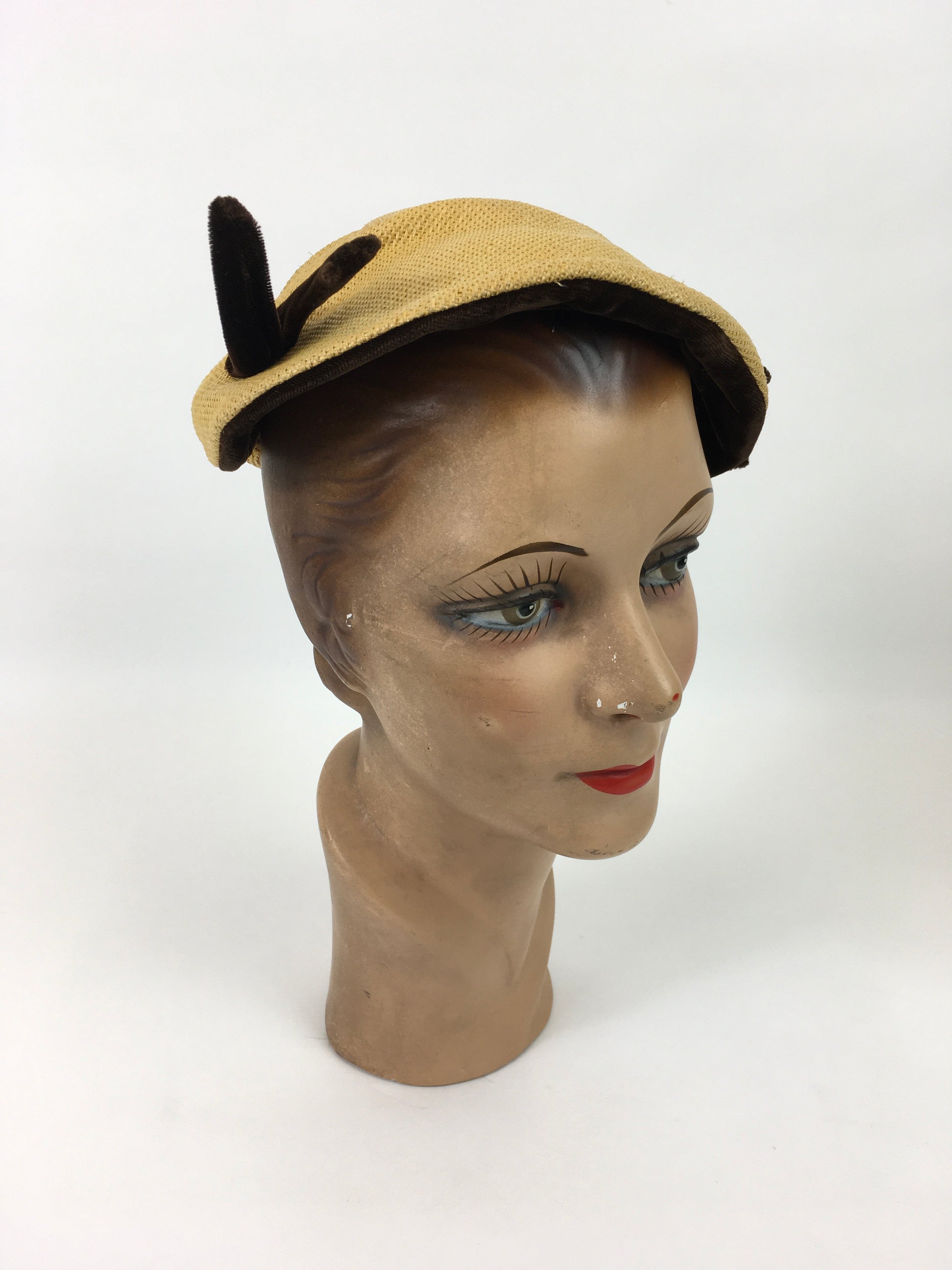 Original 1950’s Fun Autumnal Hat - In Warm Yellow and Brown Velvet Trims