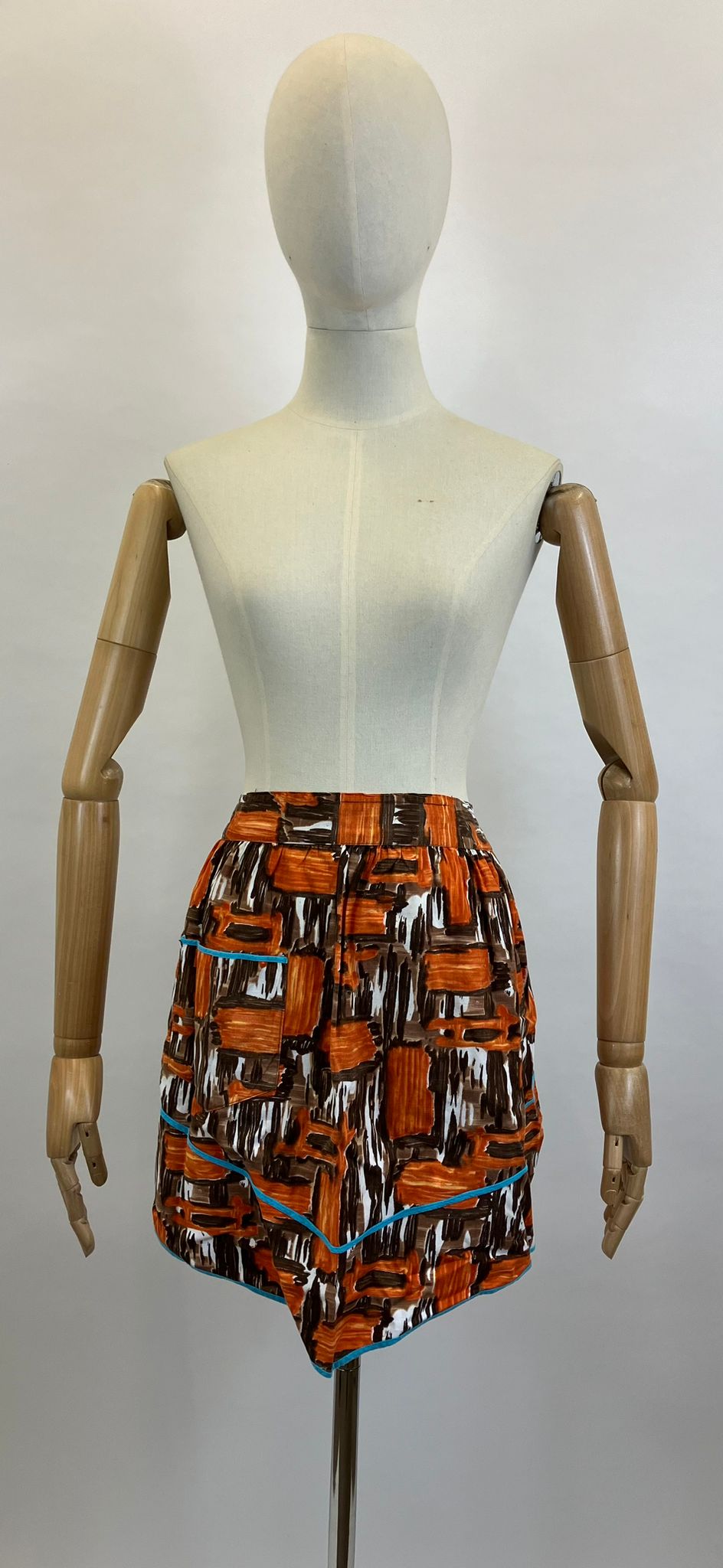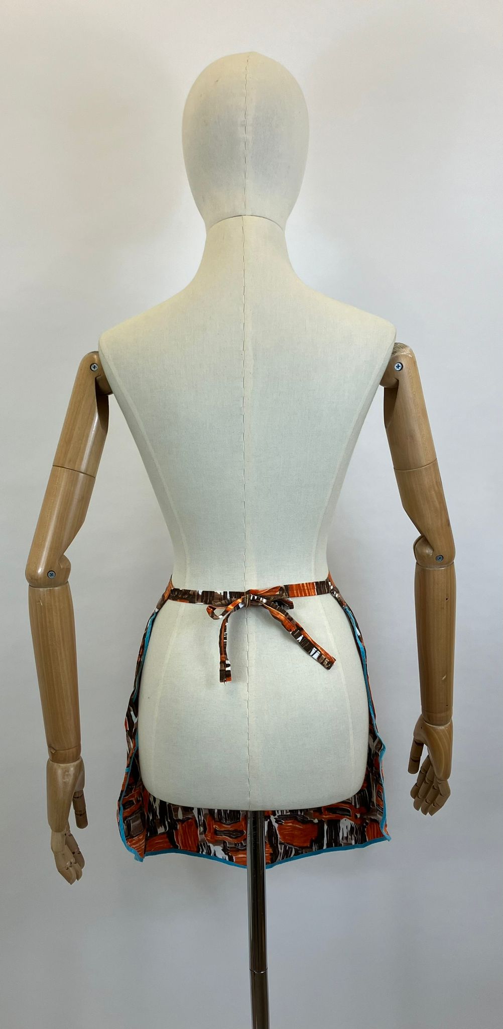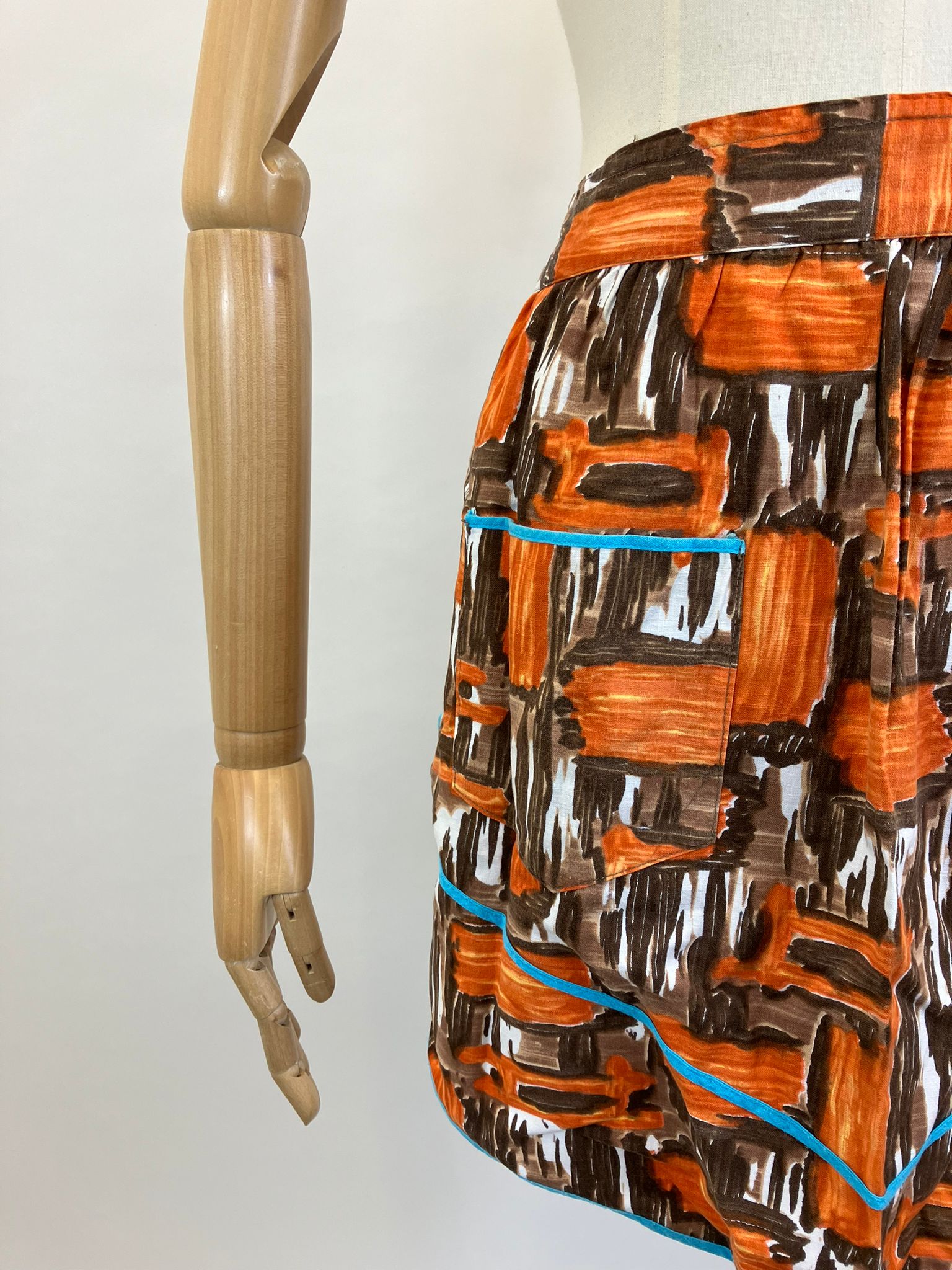 Original 1950’s Half Pinny Apron - Rust/ Orange / Brown / Blue Abstract