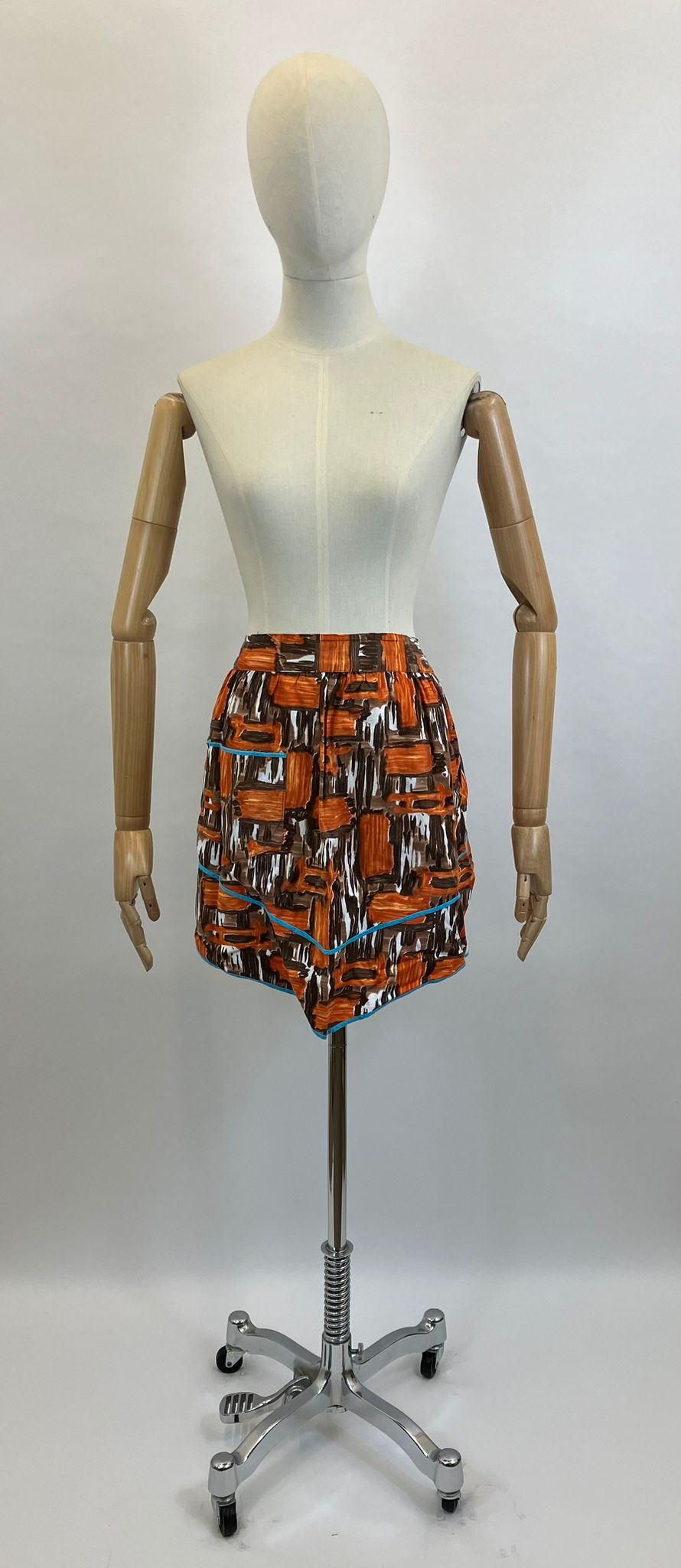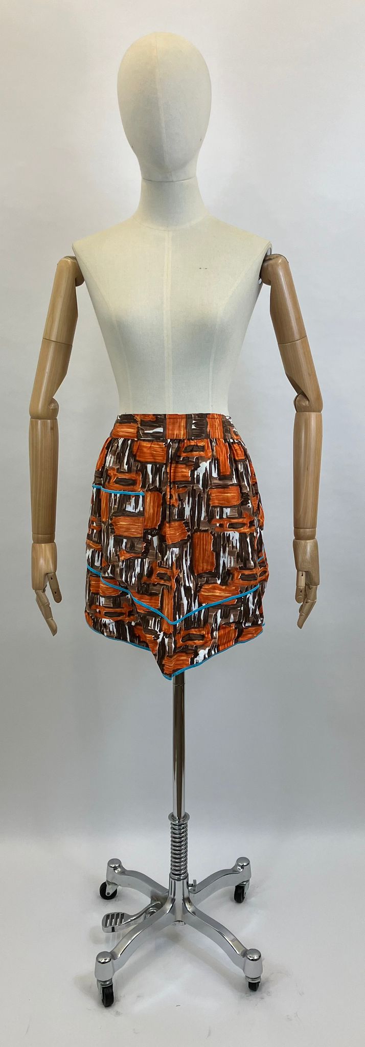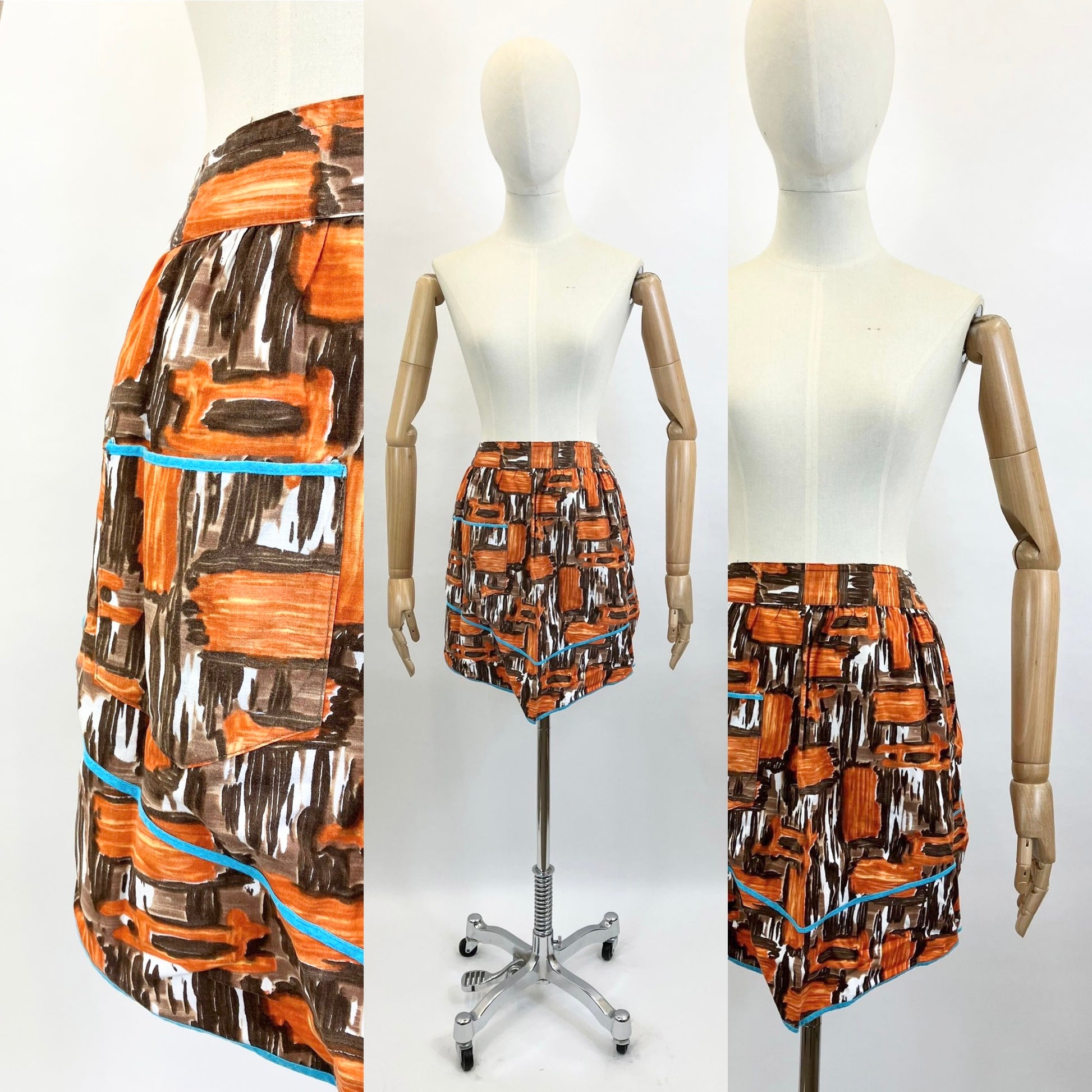 Original 1950’s Half Pinny Apron - Rust/ Orange / Brown / Blue Abstract