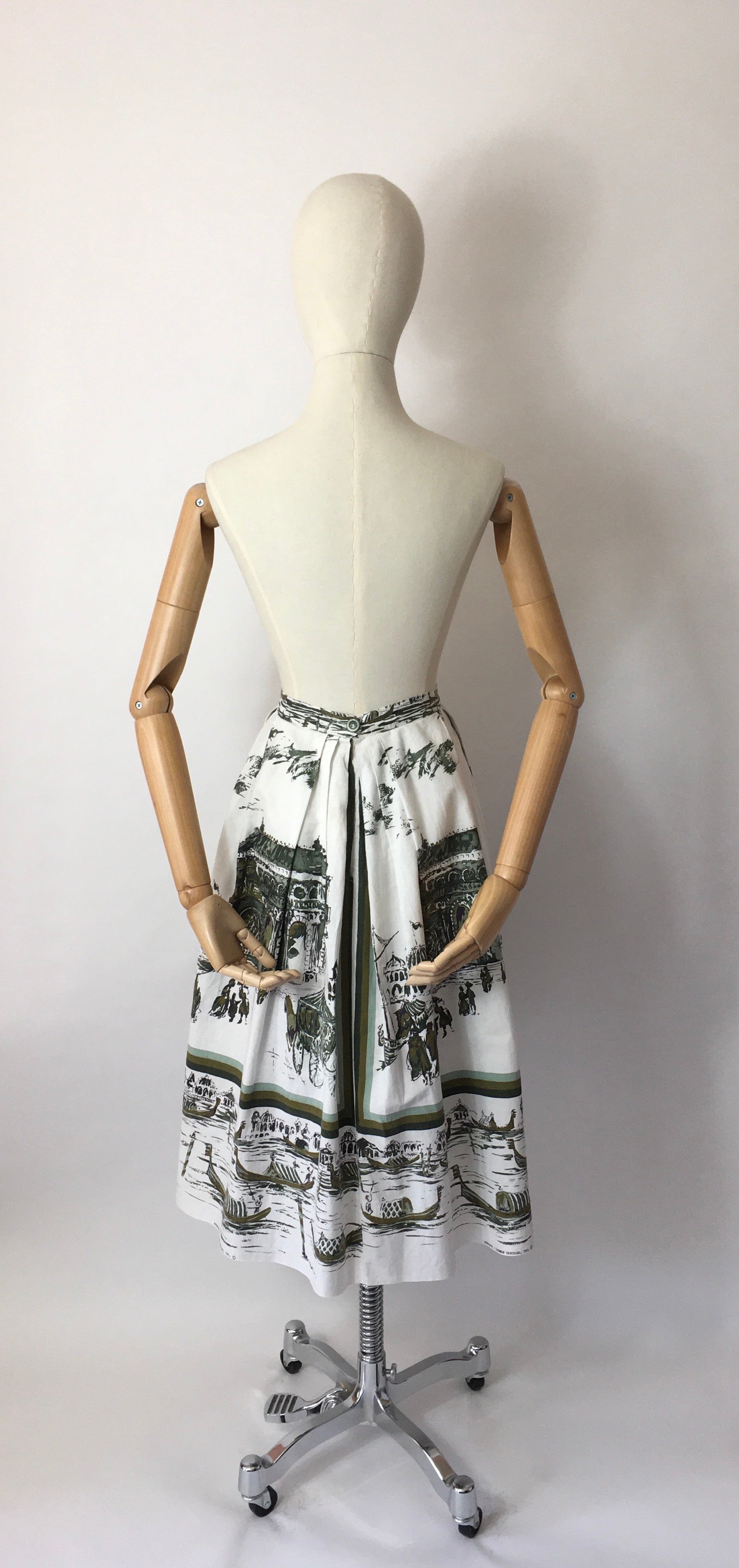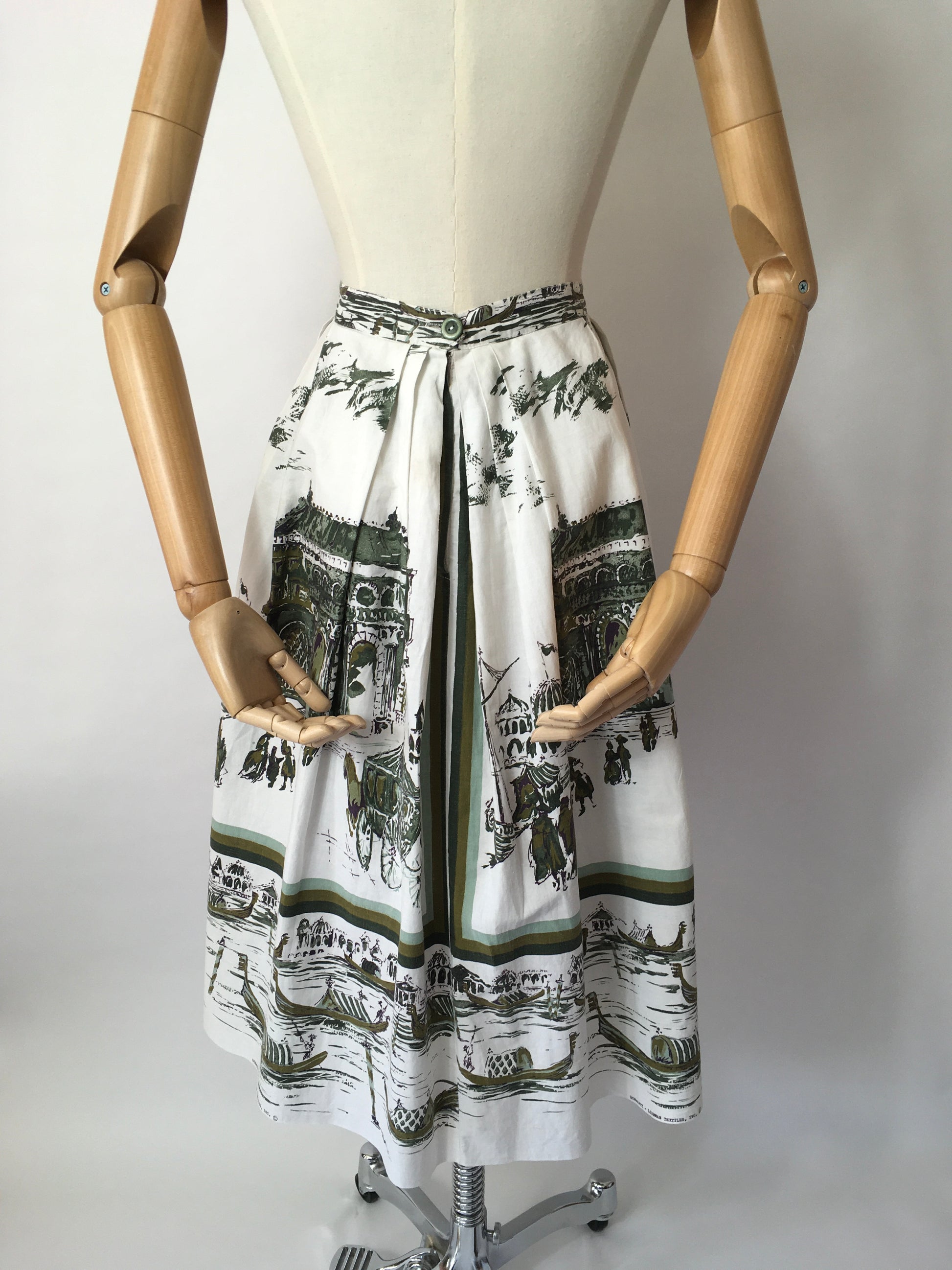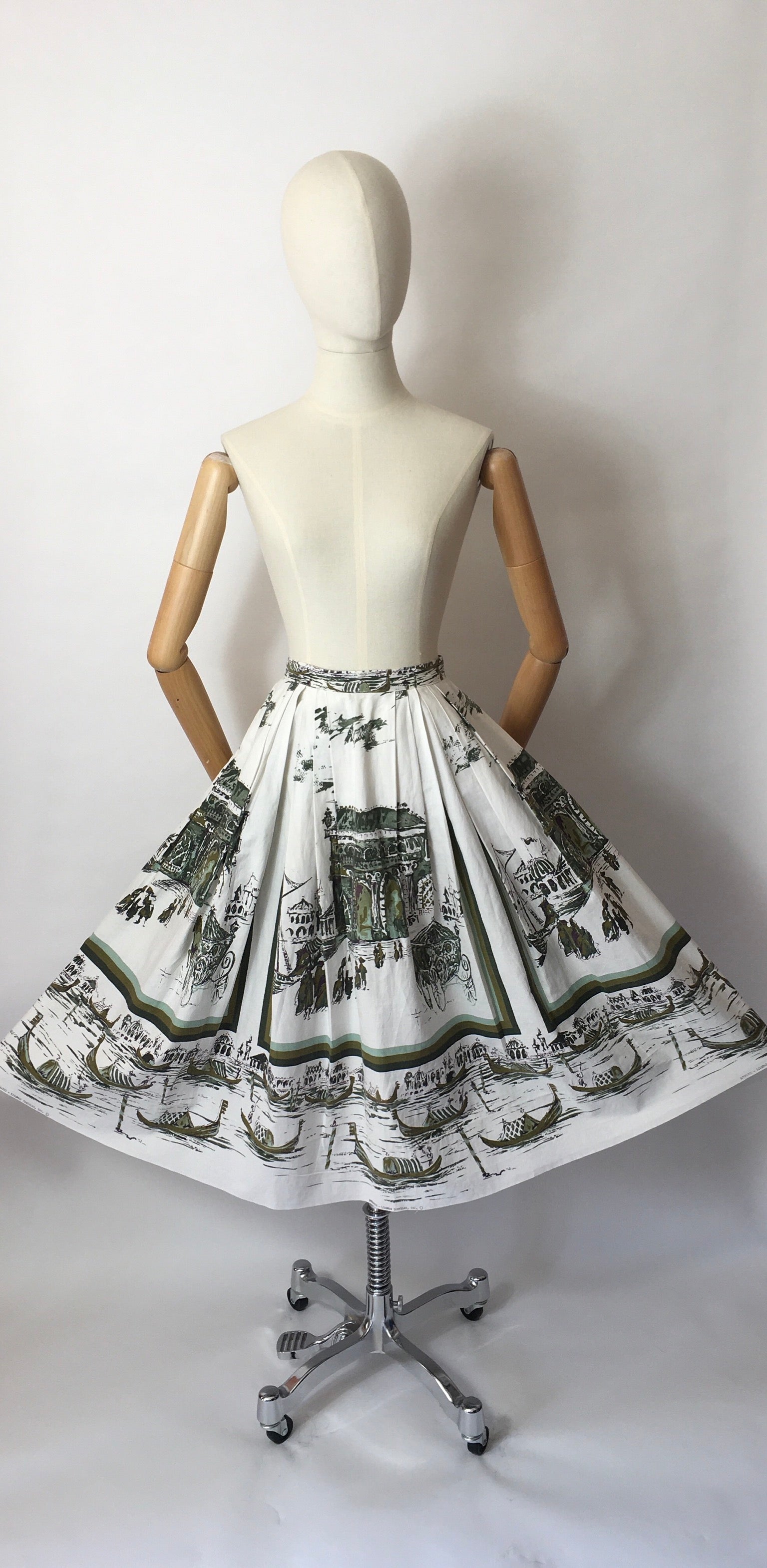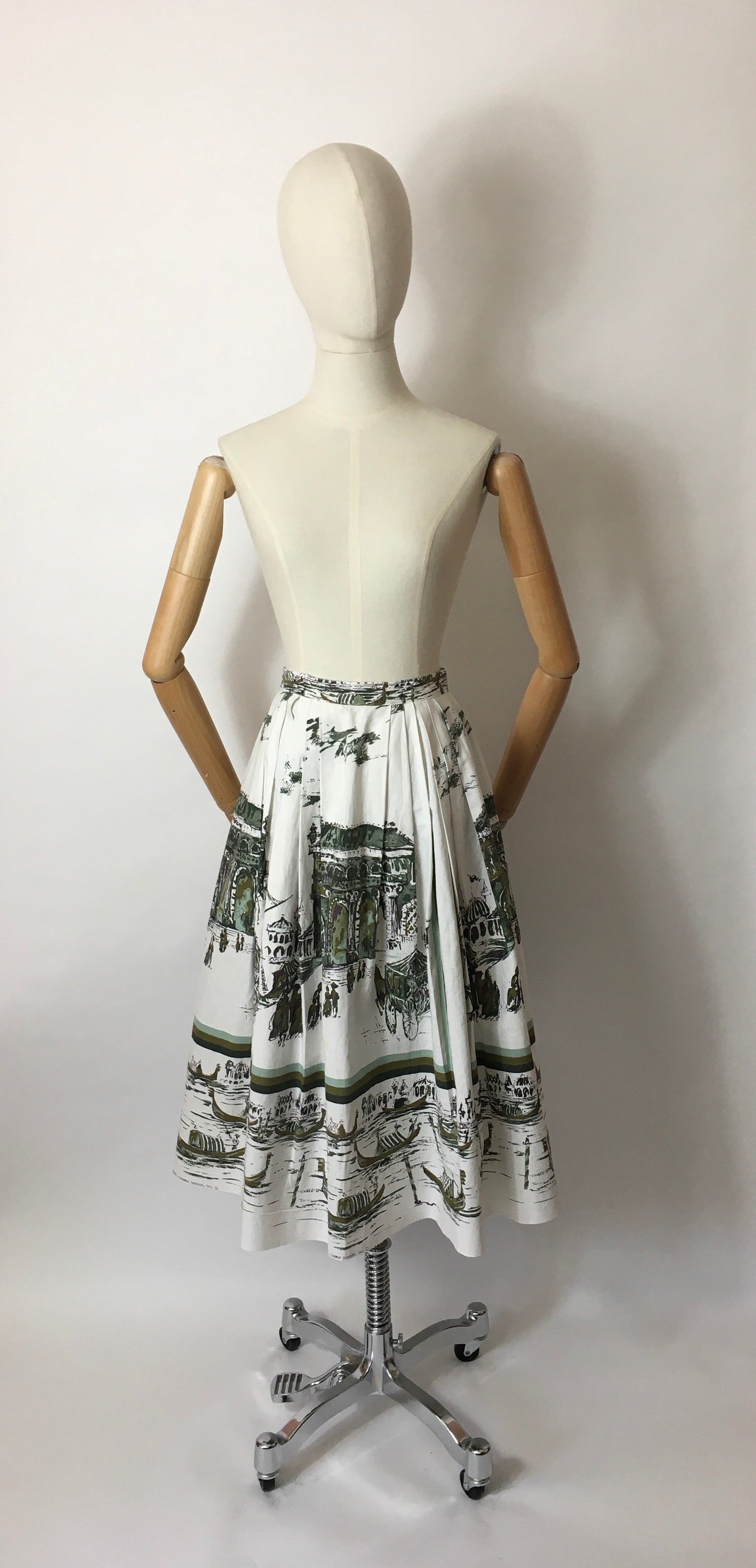 Original 1950’s Novelty Scenic Print Skirt - Featuring Victorian Scenes, Horses & Carriages, Gondolas on the River