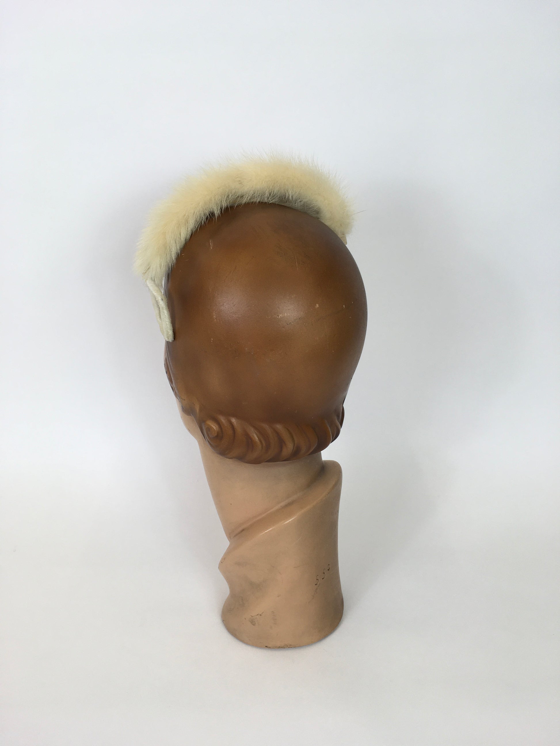 Original 1950’s Stunning Blonde Mink Headpiece - Covered In Cream Velvet