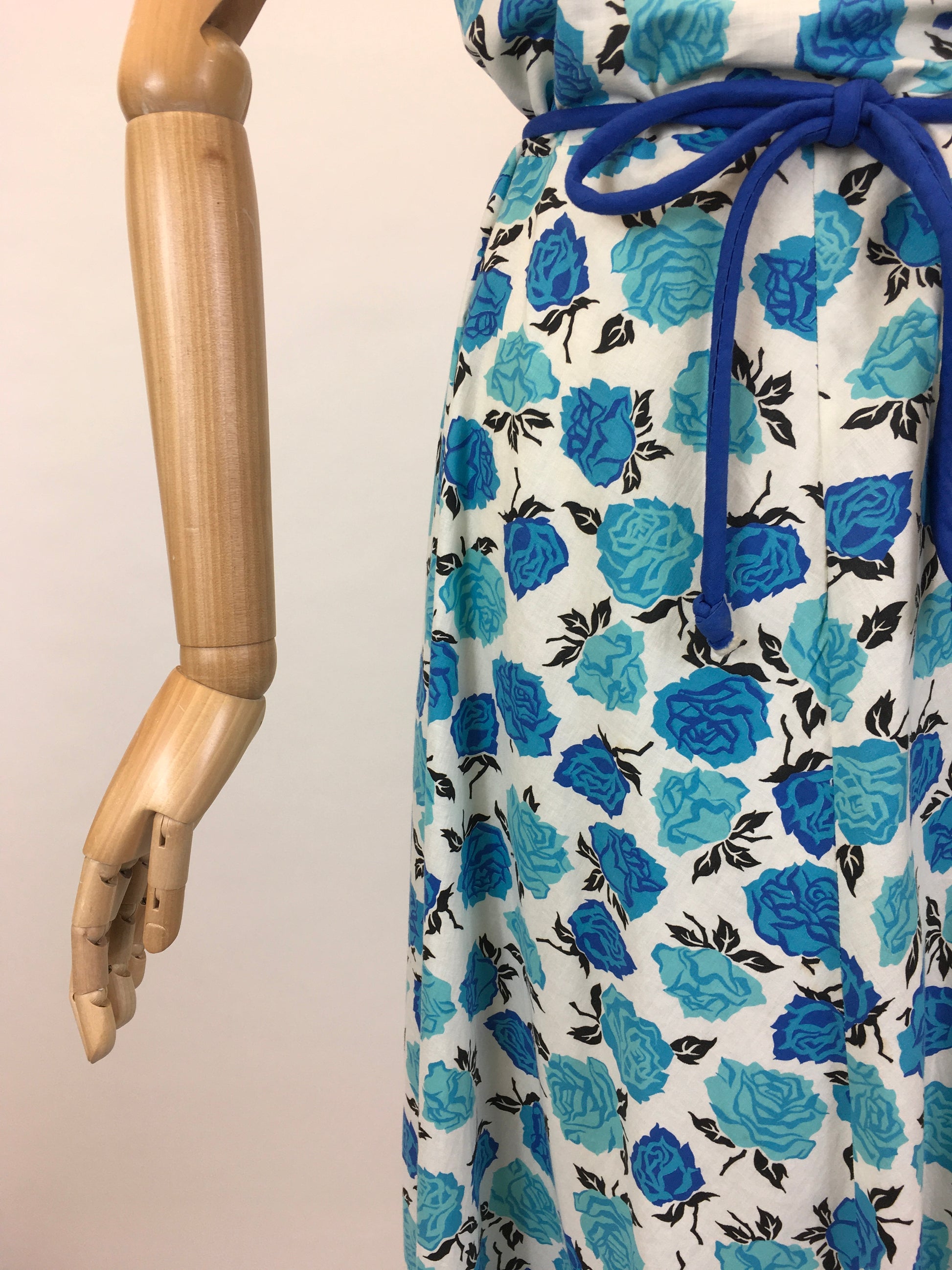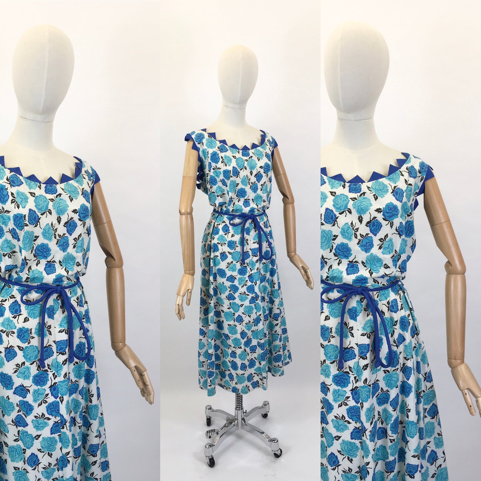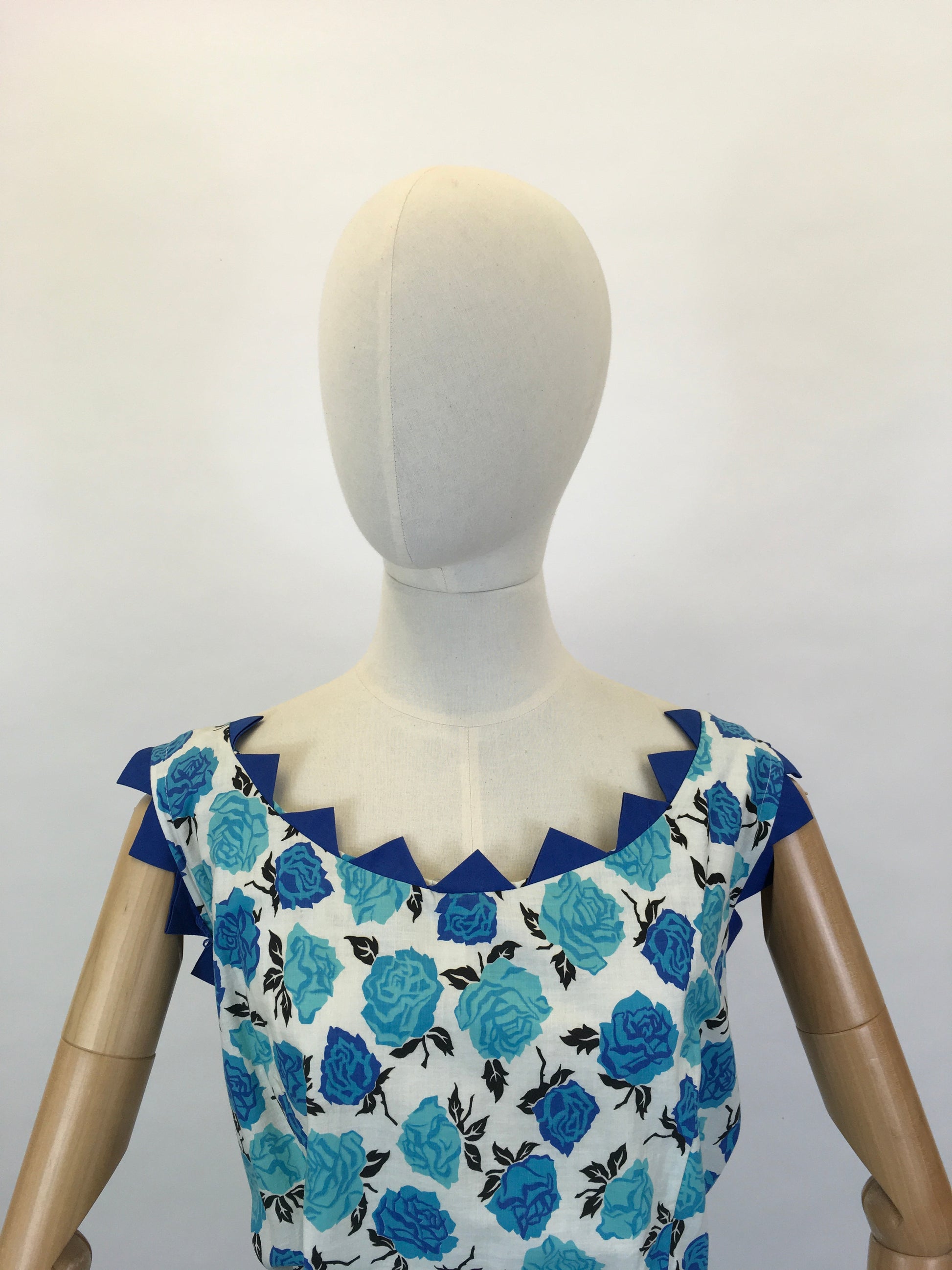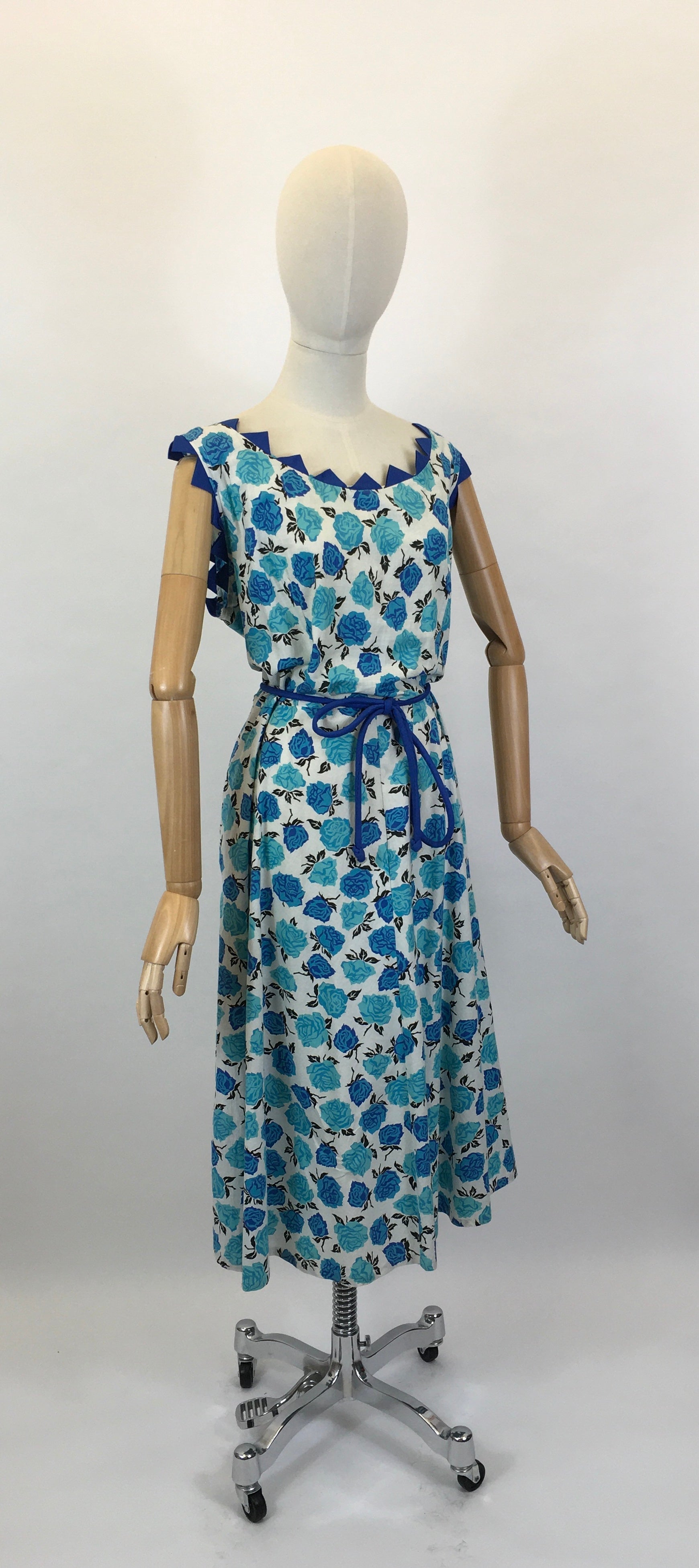 Original 1950’s VOLUP Cotton Day Dress - In A Stunning Blue Floral with Contrast Detailing