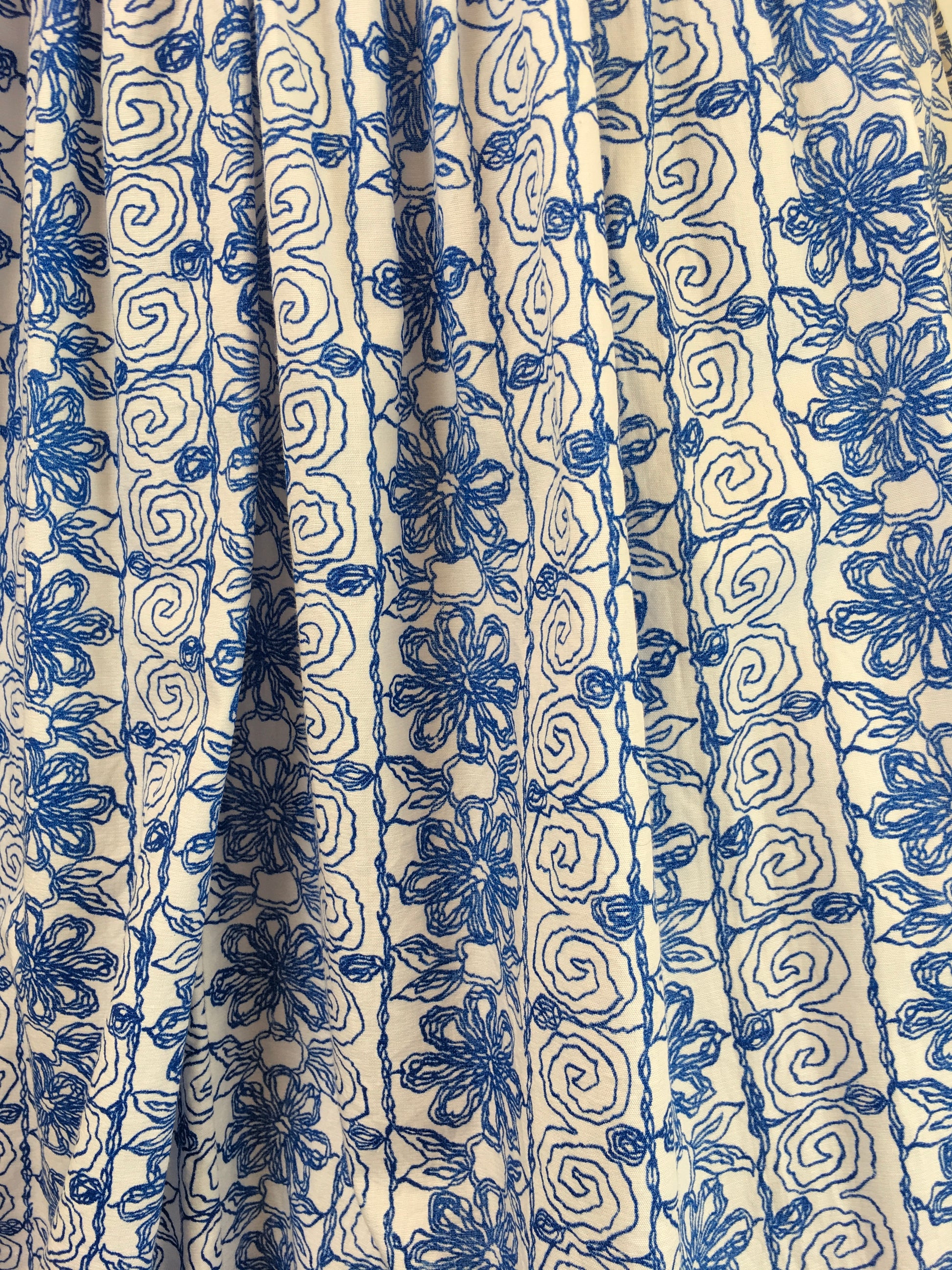 Original 1950s Cotton Day Dress - In a Lovely Cobalt Blue and White Scribble Fabric