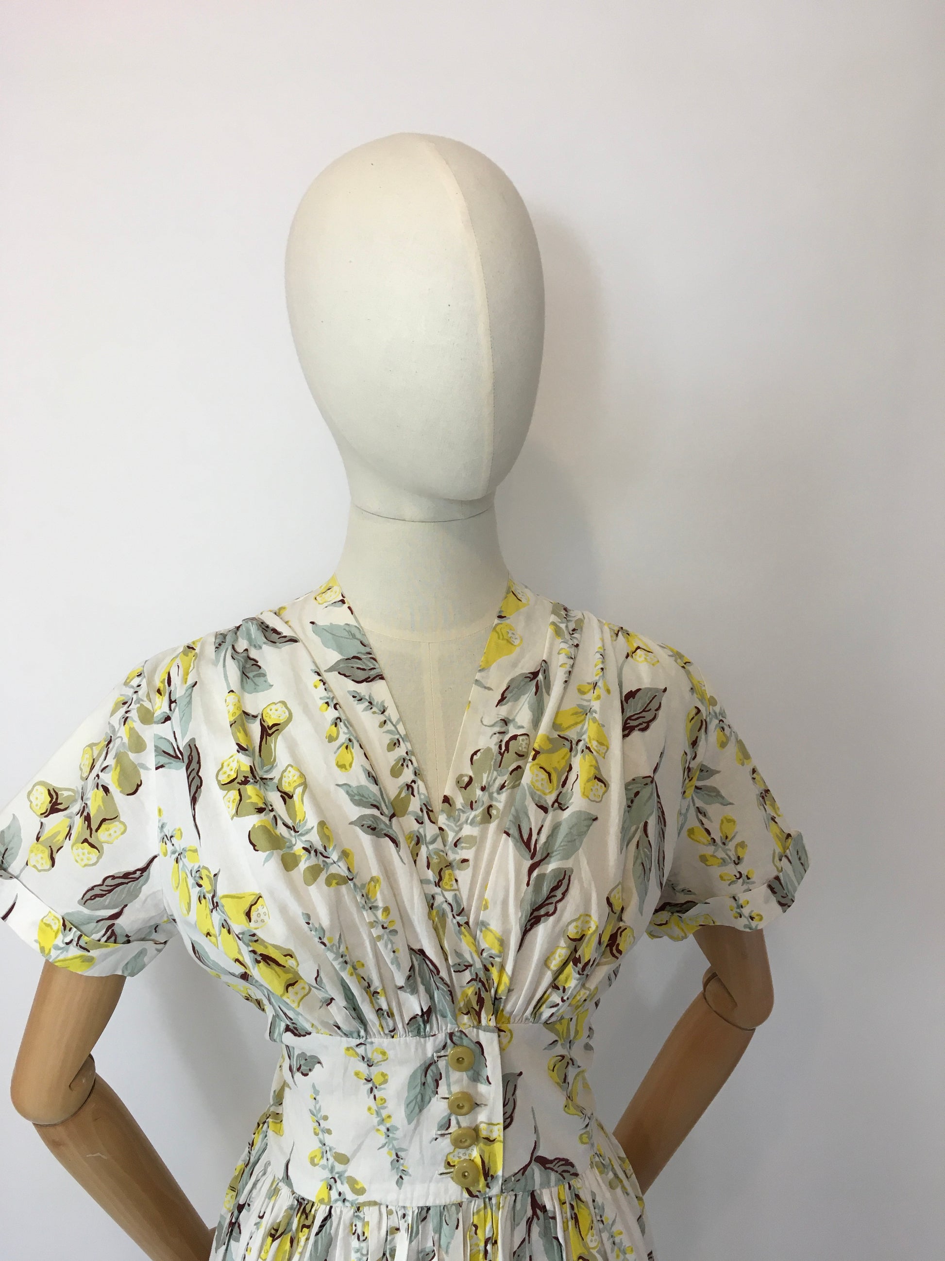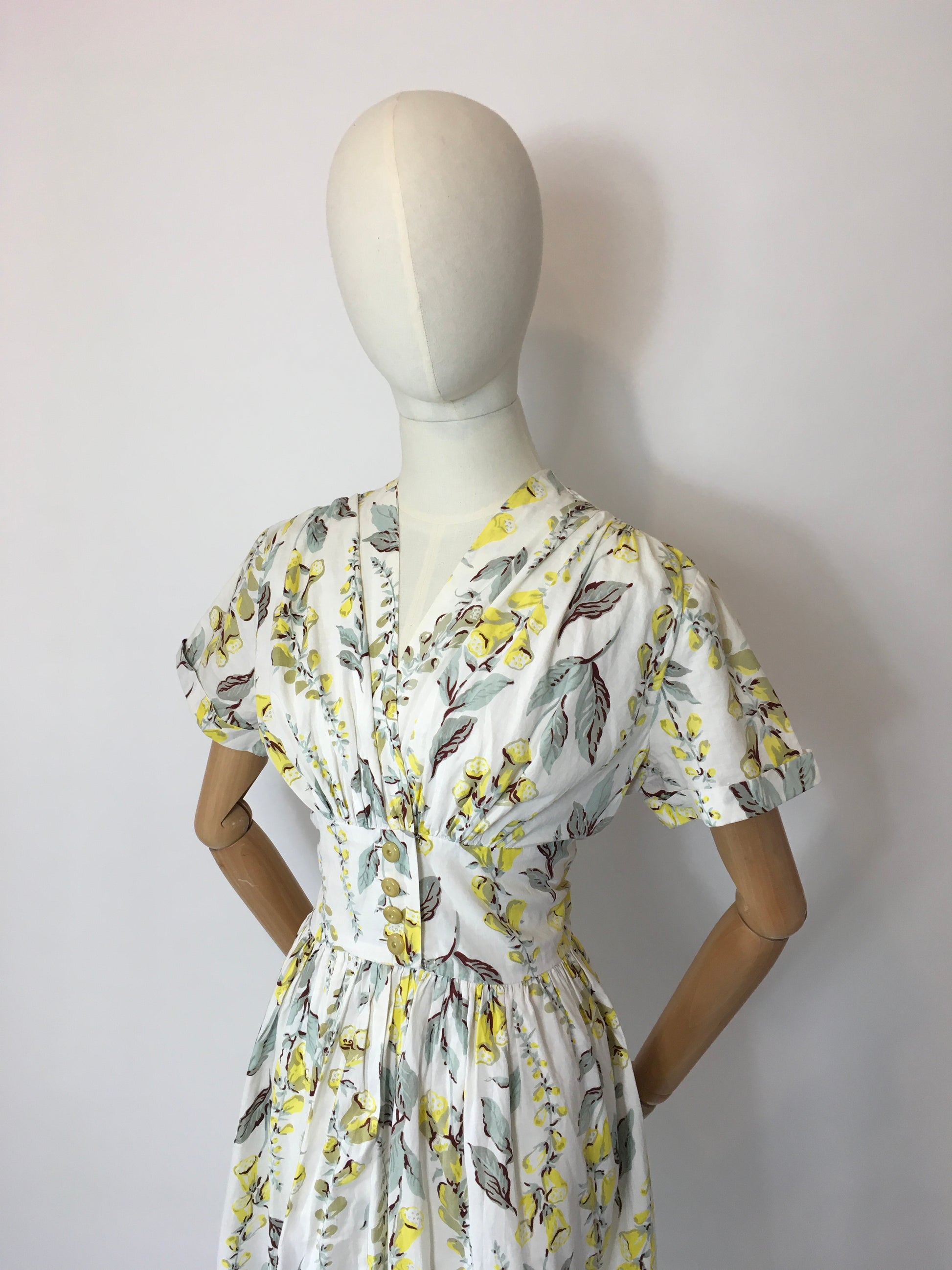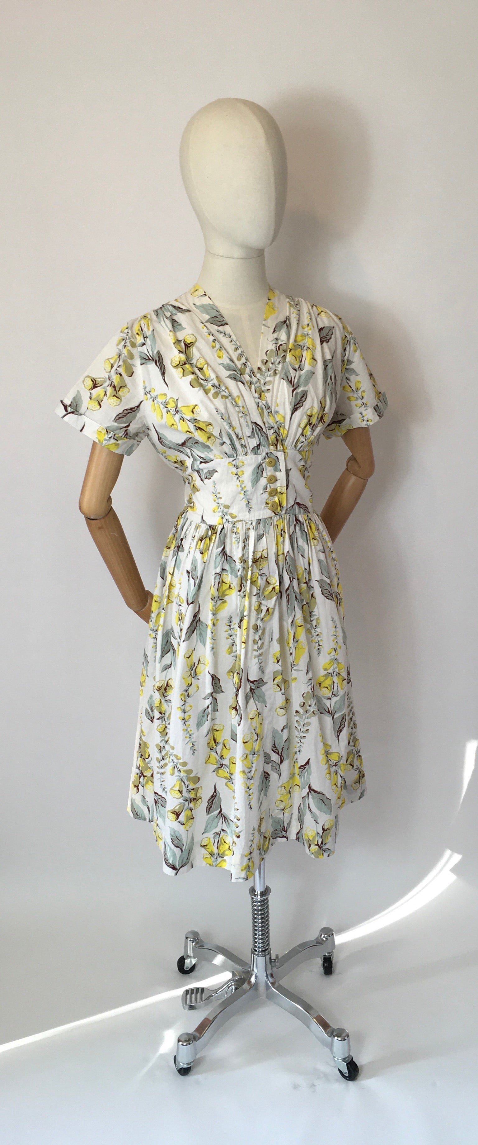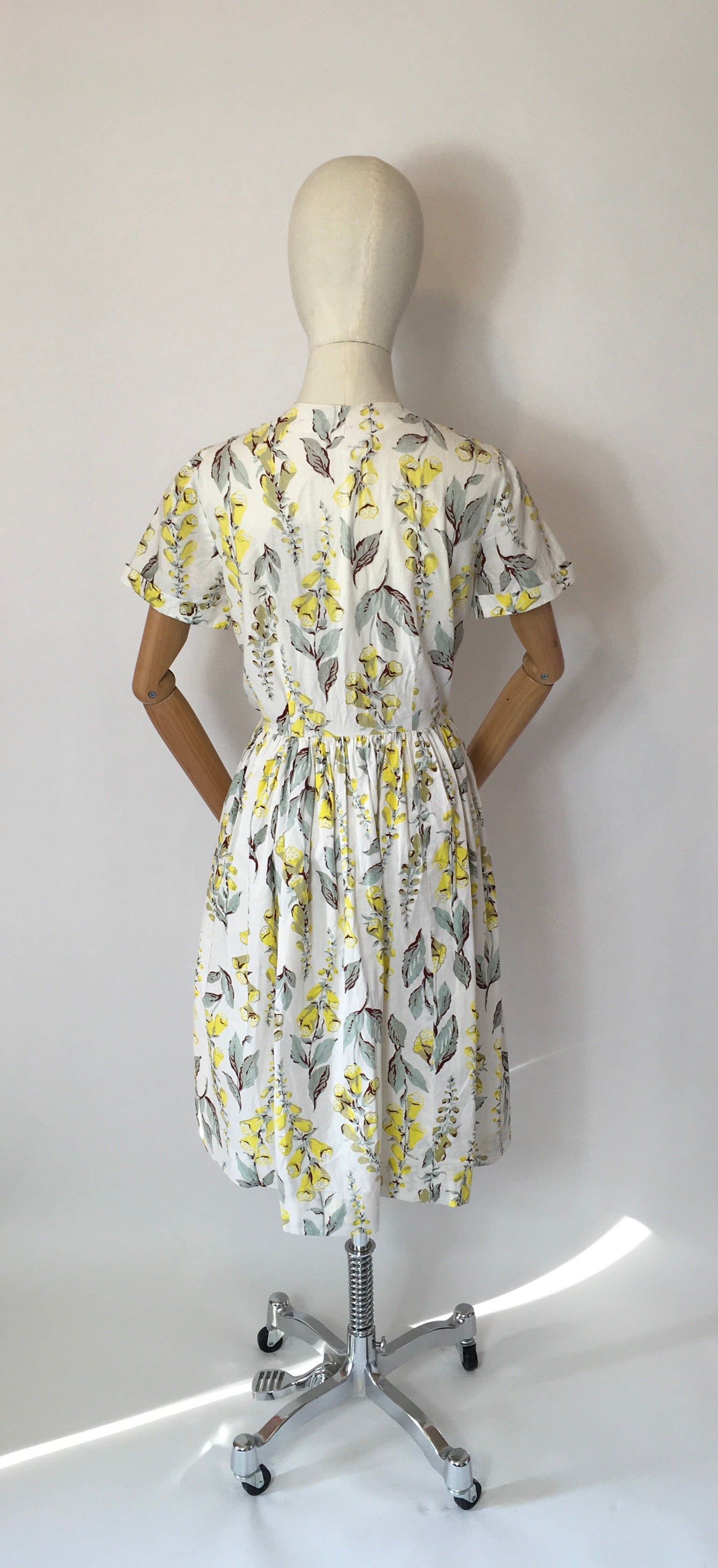 Original 1950s Floral Day Dress - In the Most Beautiful Colour Palette of Buttery Yellows and Mint Greens