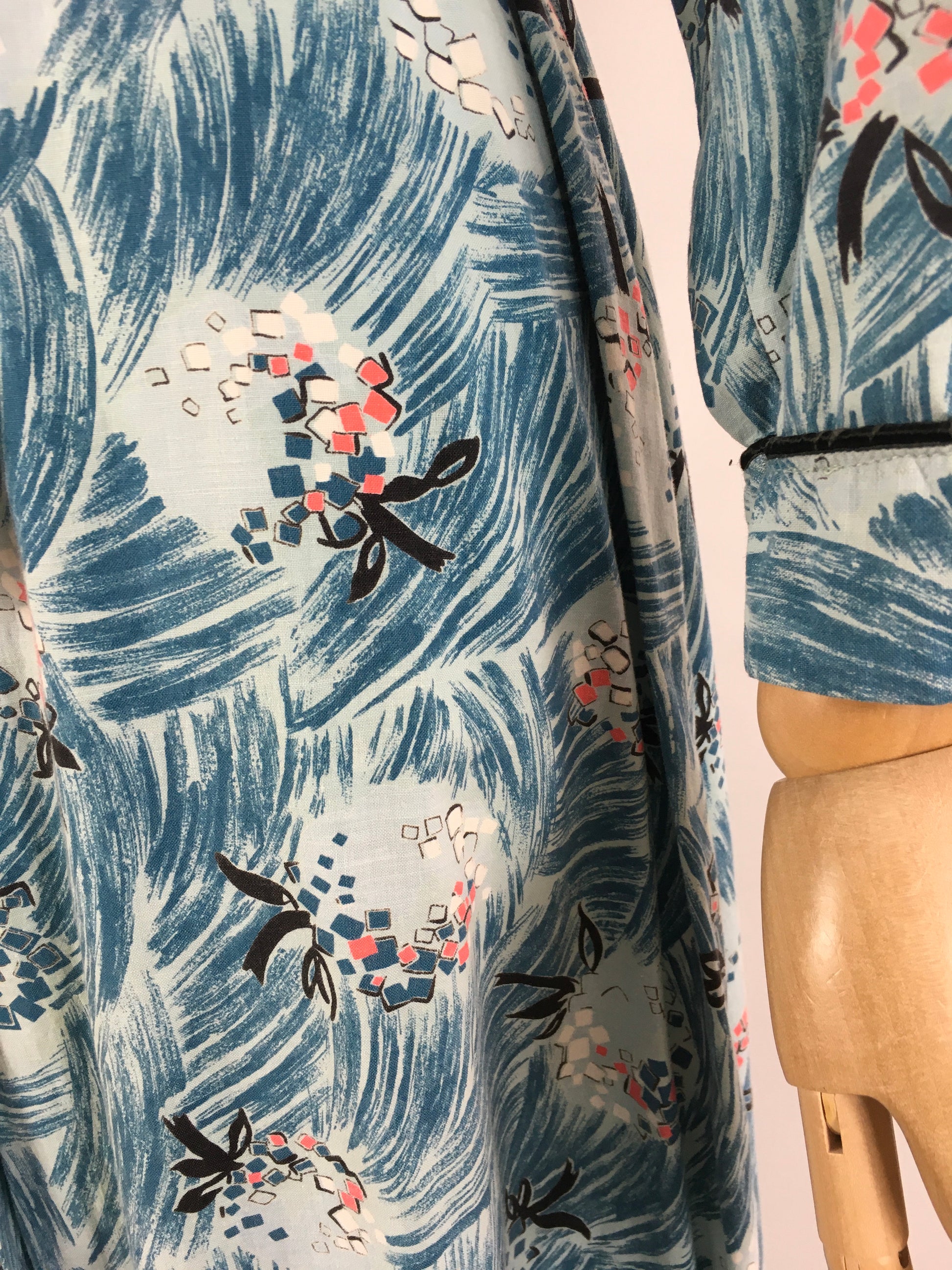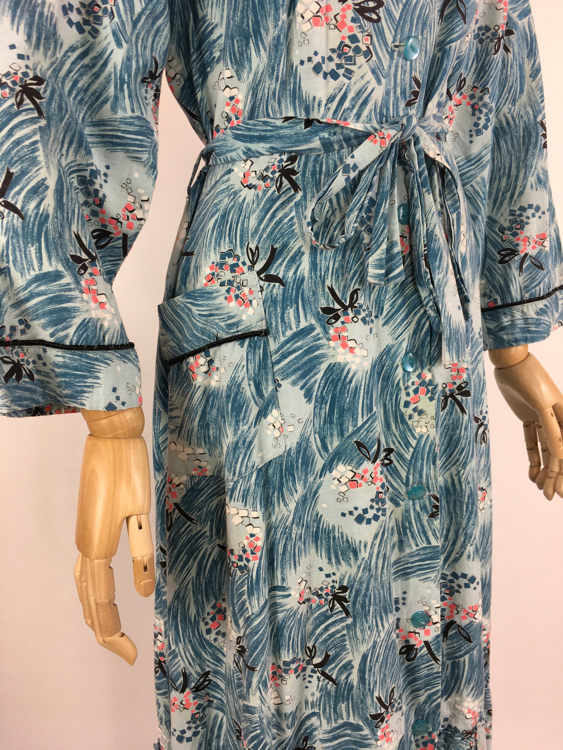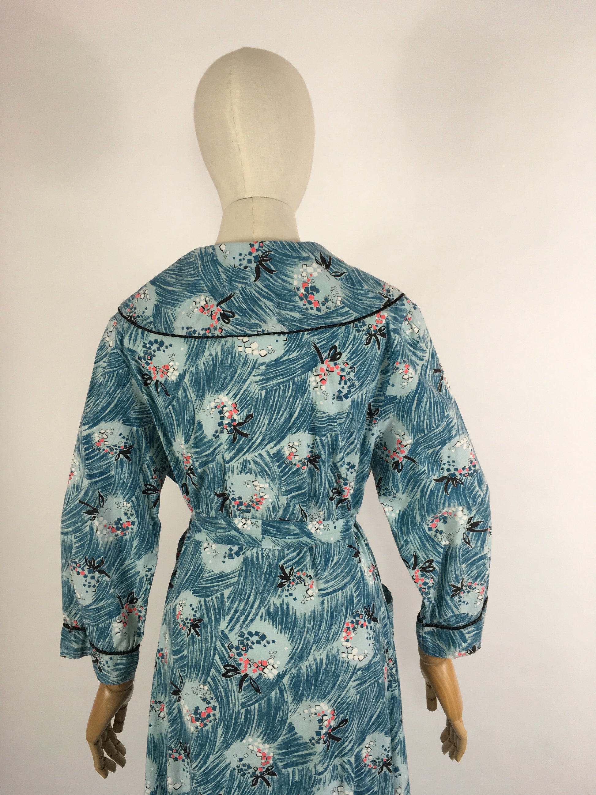 Original 1950s Housecoat by ‘ Pelaw ‘ - Made From a Beautiful Cotton In Blues, Pinks, Yellows and Blacks