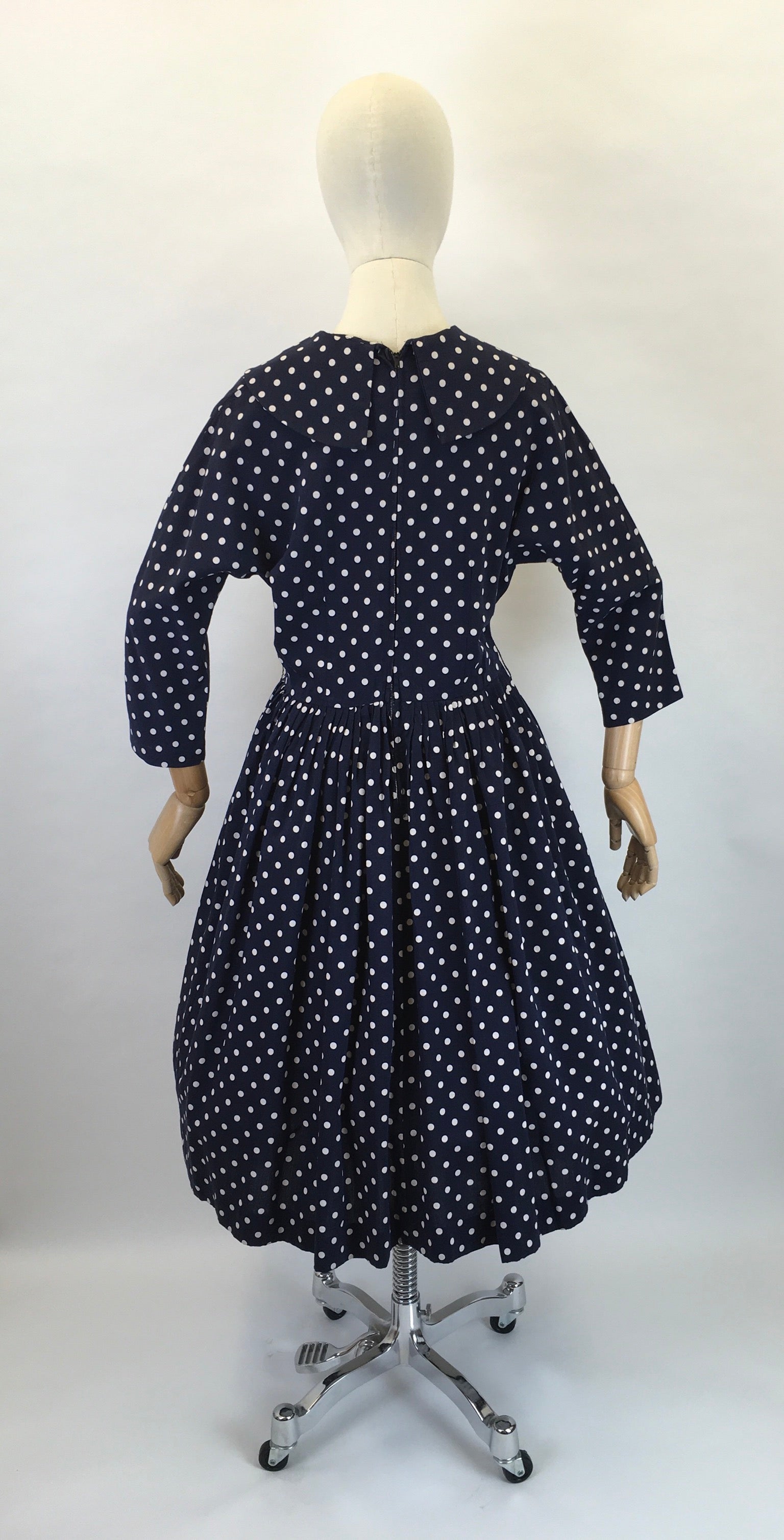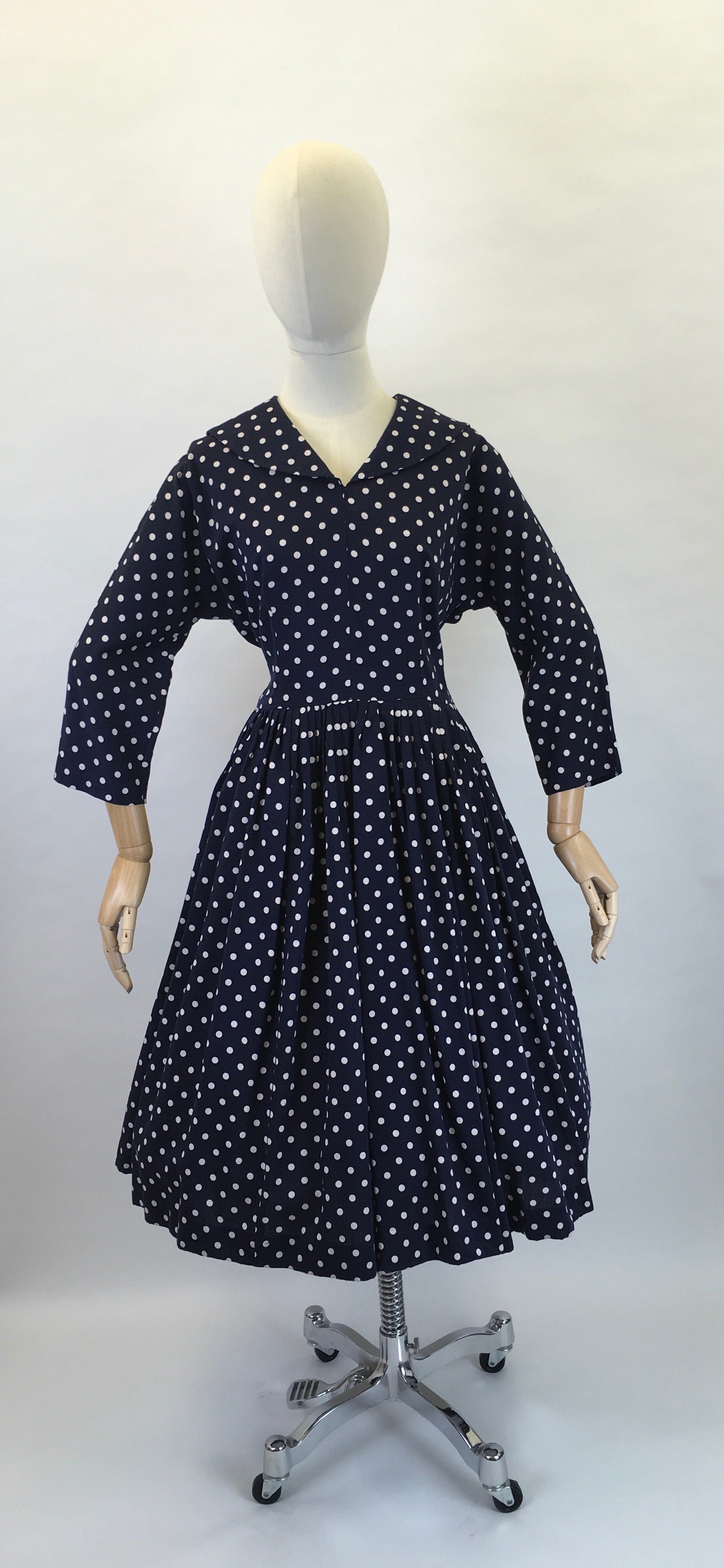 Original 1950s Lightweight Cotton Day Dress - In a Fabulous Deep Navy Polka Dot