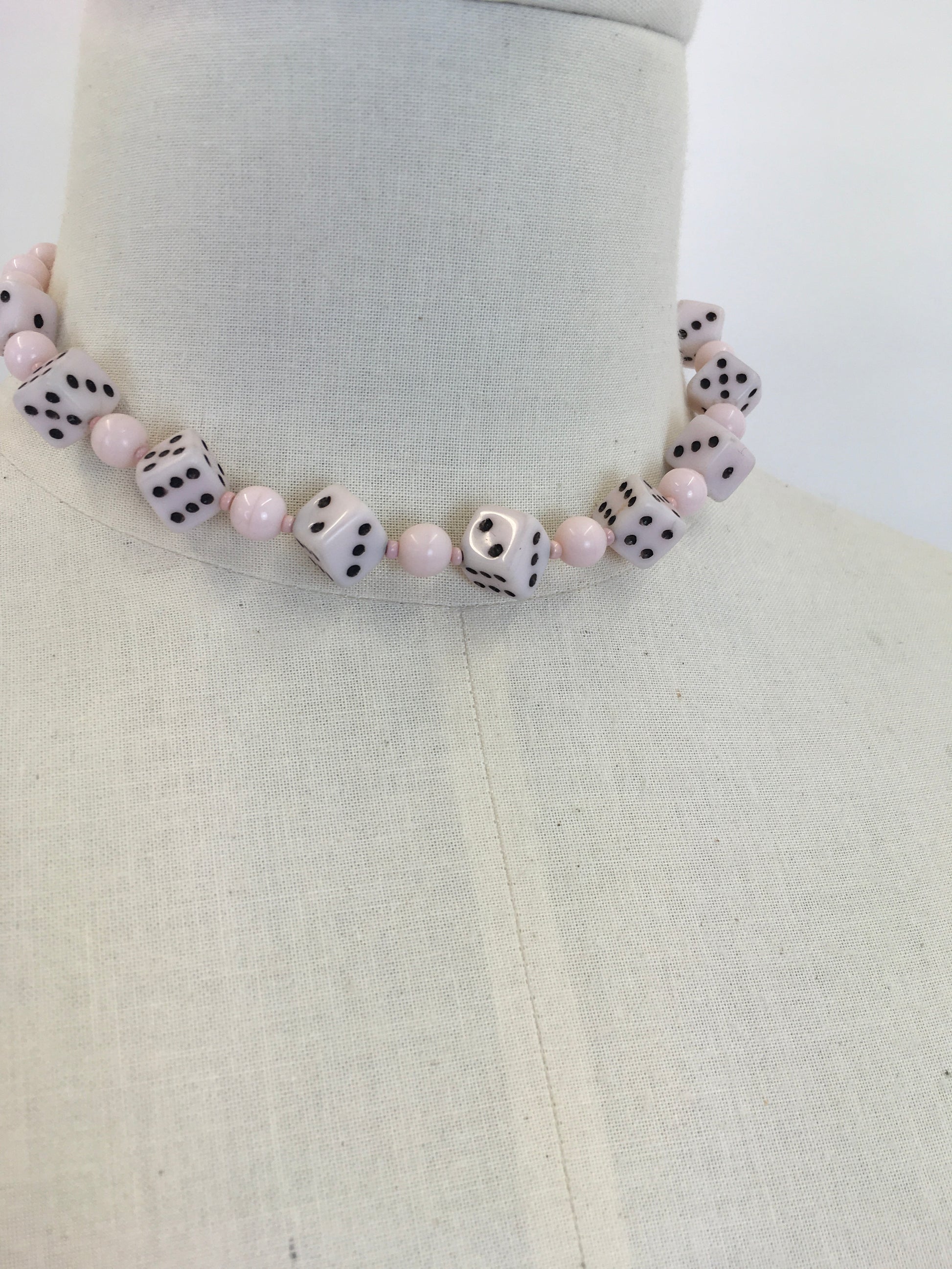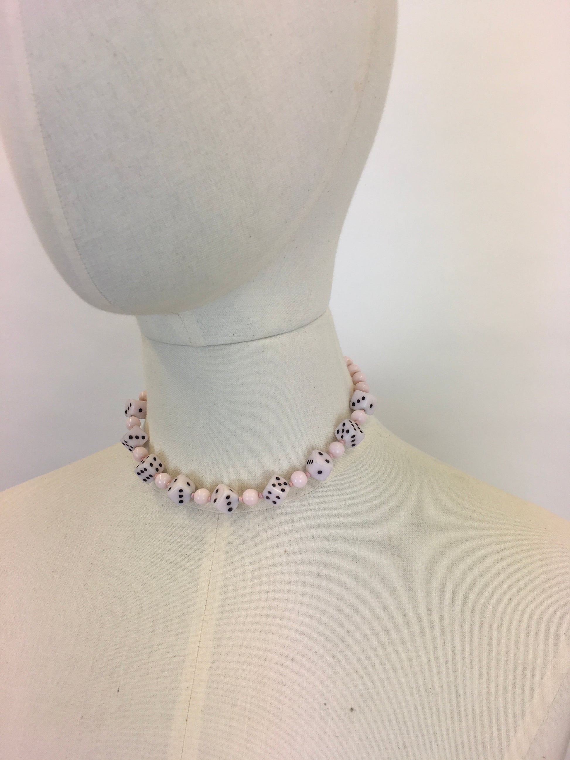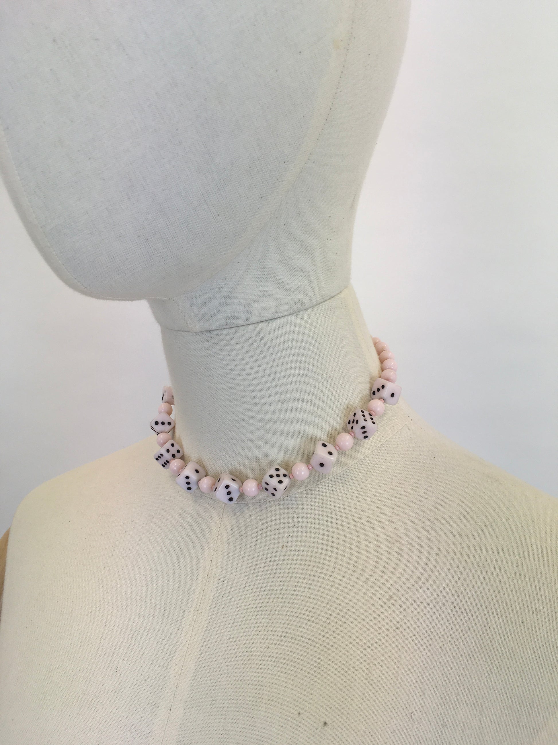 Original 1950s Pale Pink Novelty Dice Necklace - Made From Milk Bottle Glass
