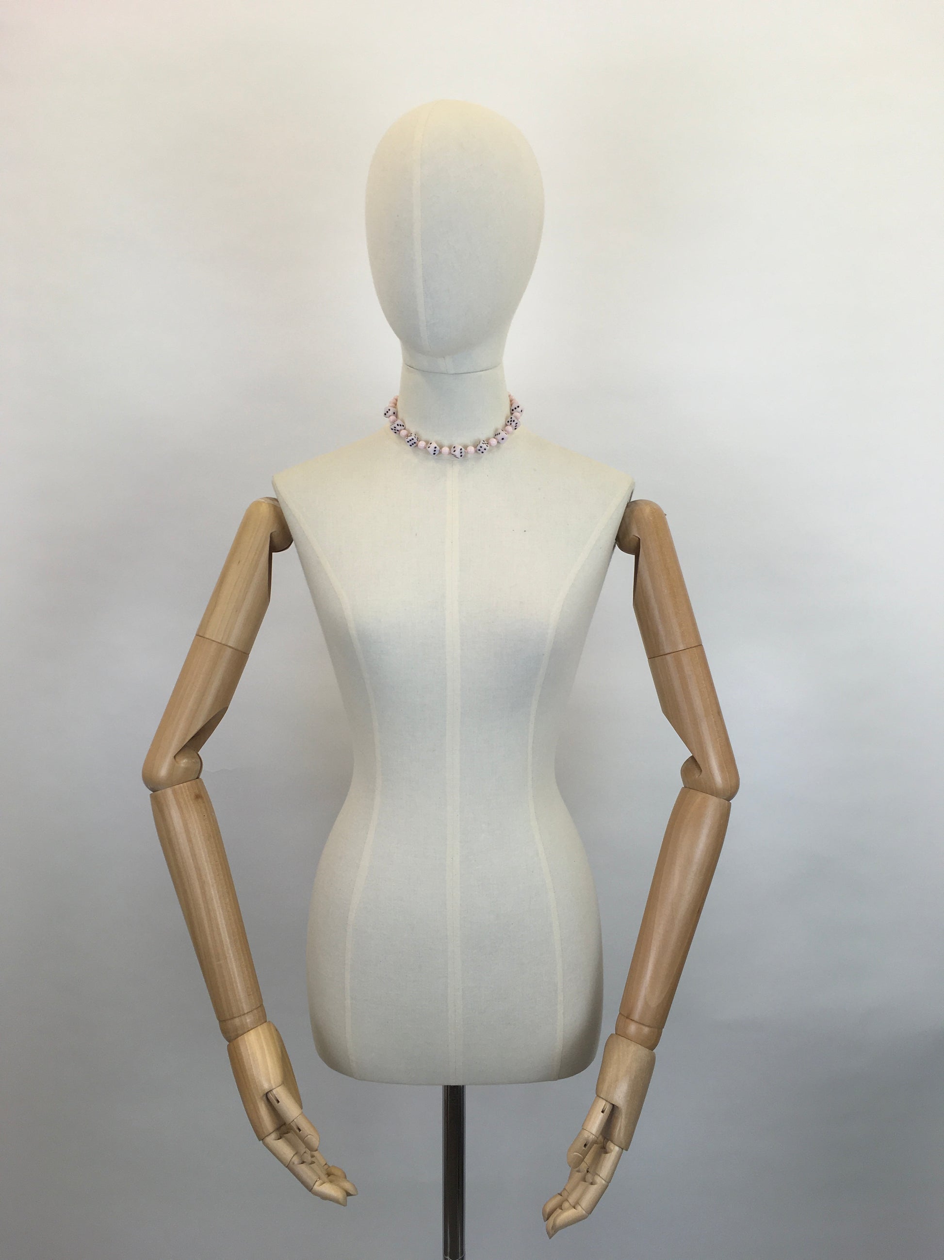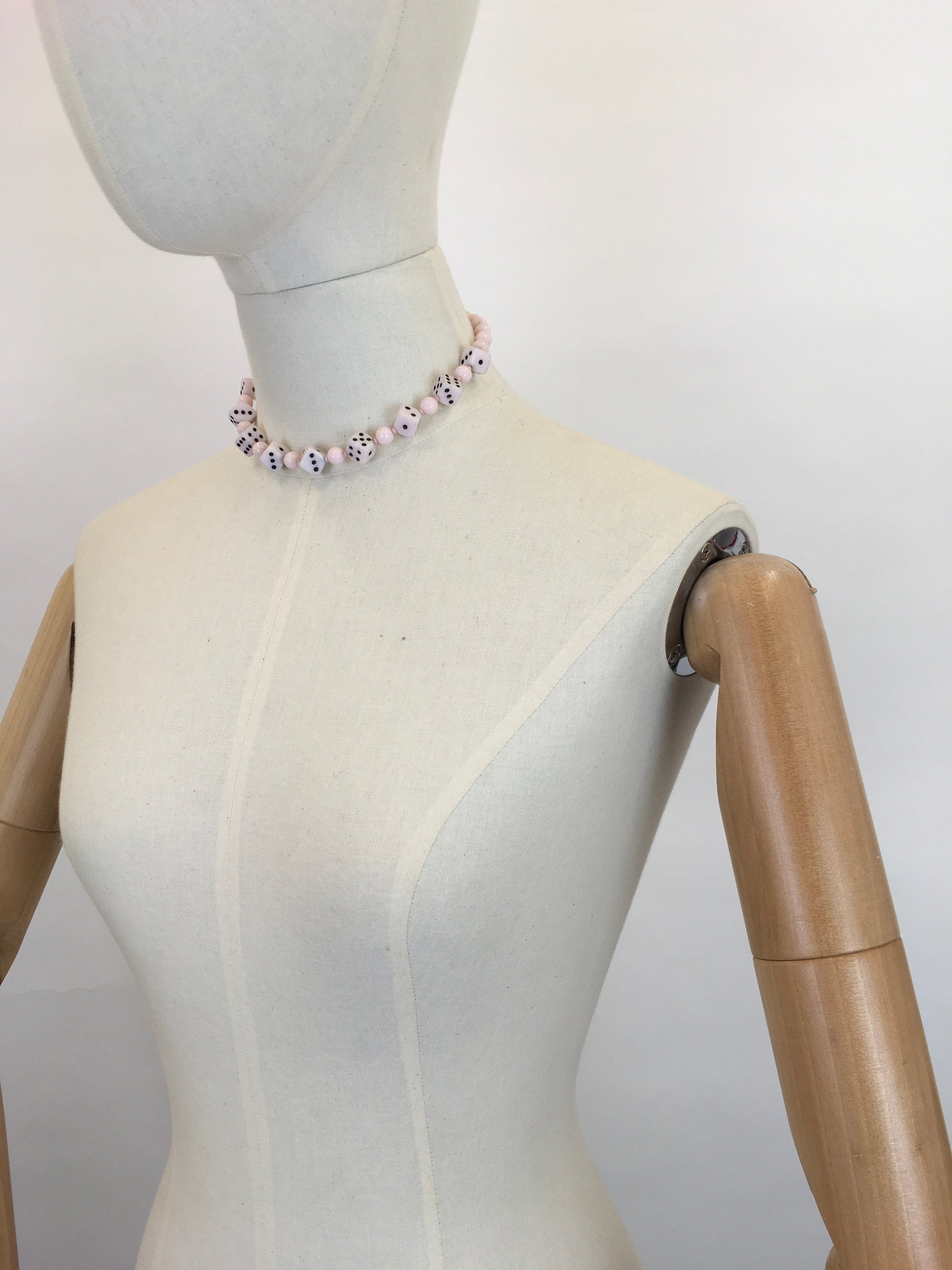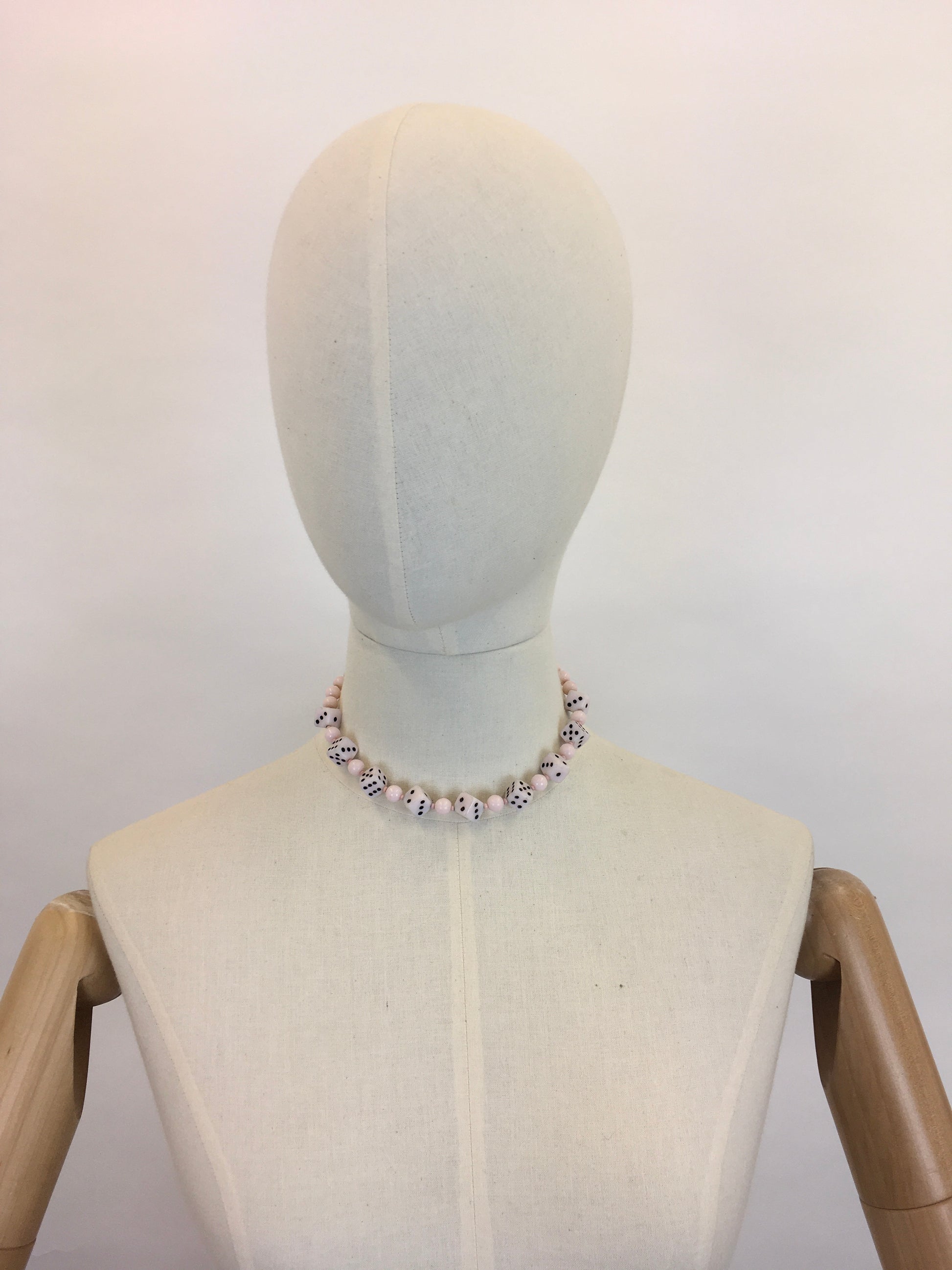 Original 1950s Pale Pink Novelty Dice Necklace - Made From Milk Bottle Glass