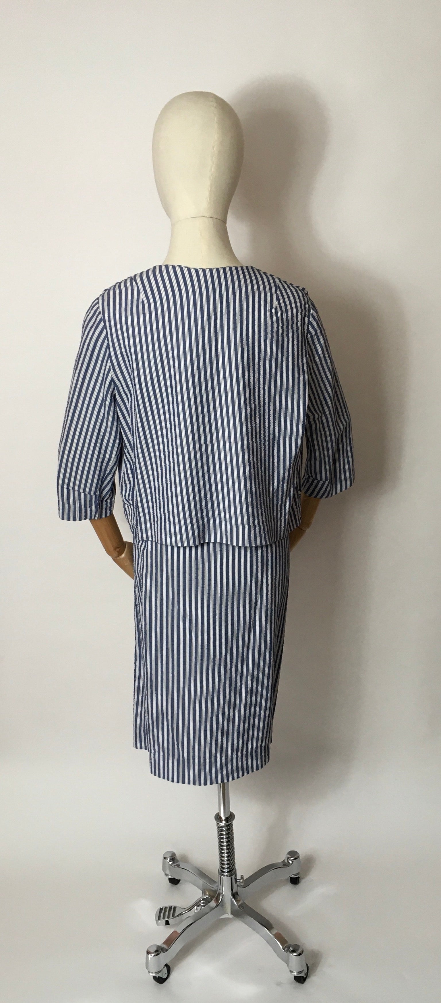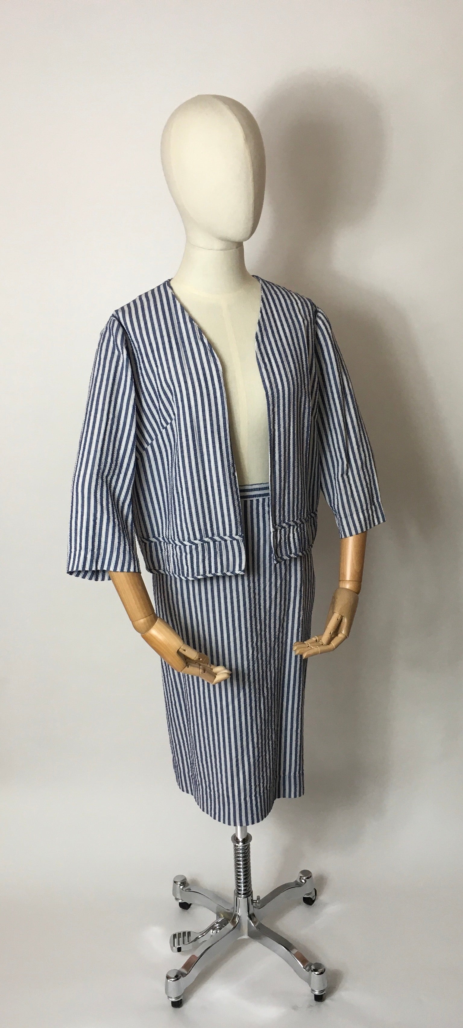 Original 1950s Summer Suit In a lovely Lightweight Seersucker fabric - Blue & White Stripes