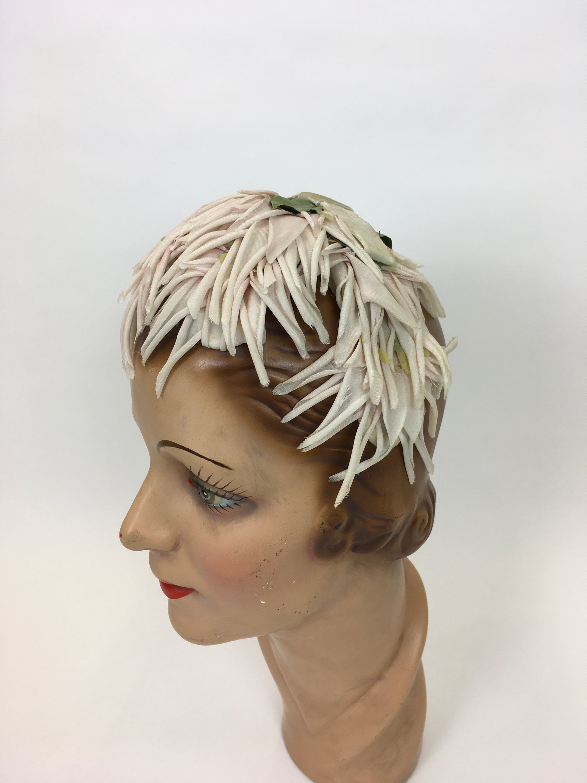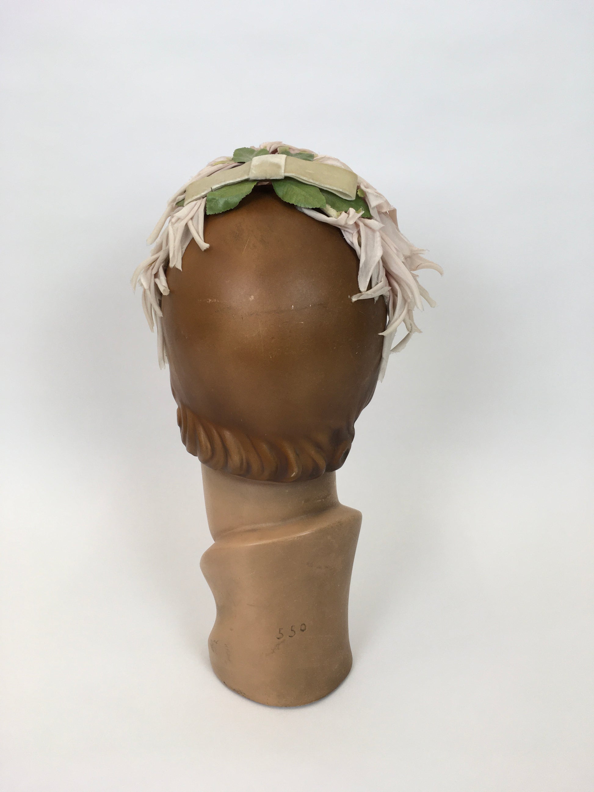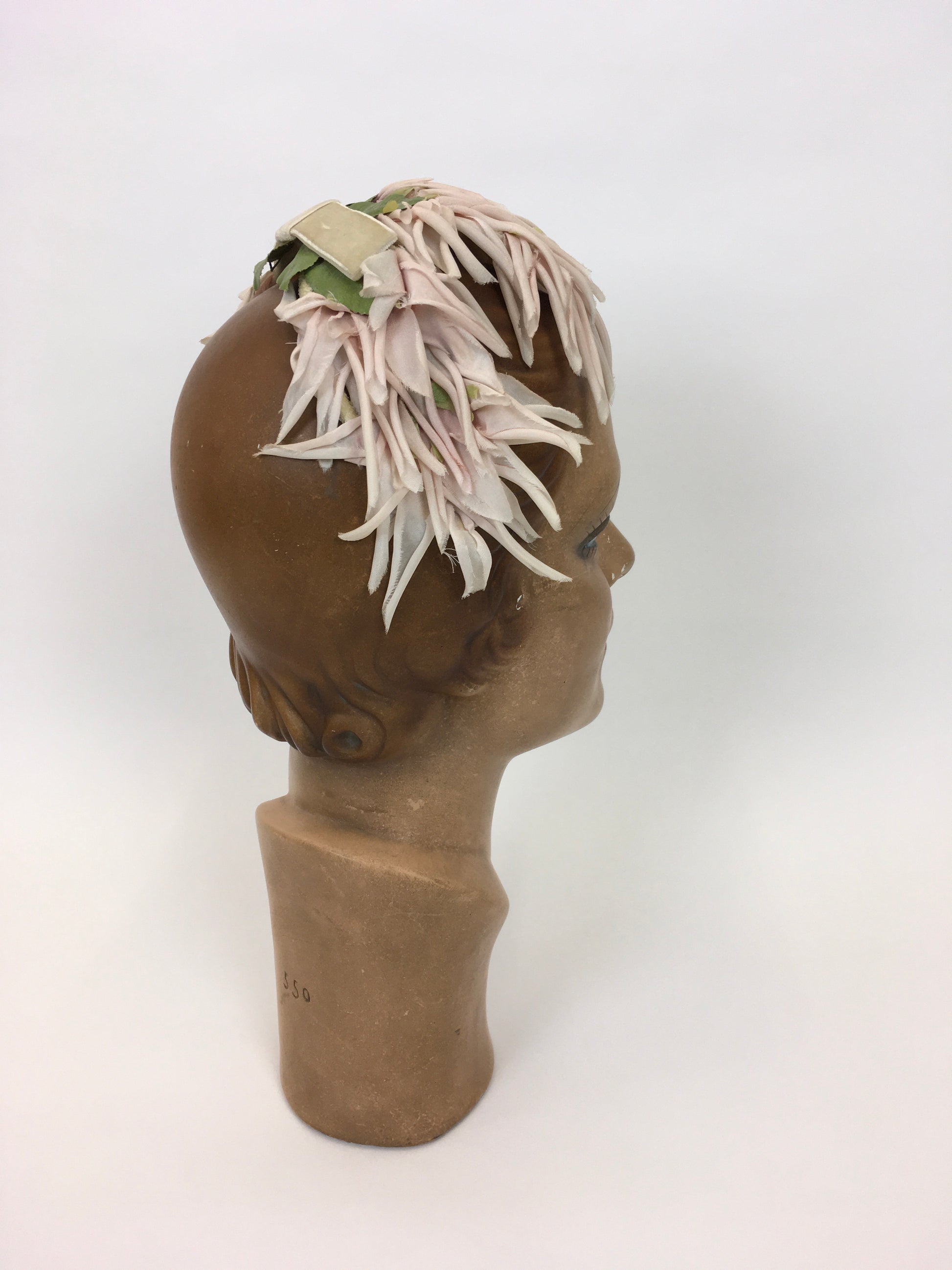 Original 1950s Velvet and Floral Headpiece - In a Delicate Pallet of Soft Pinks, Pale Ivory and Green