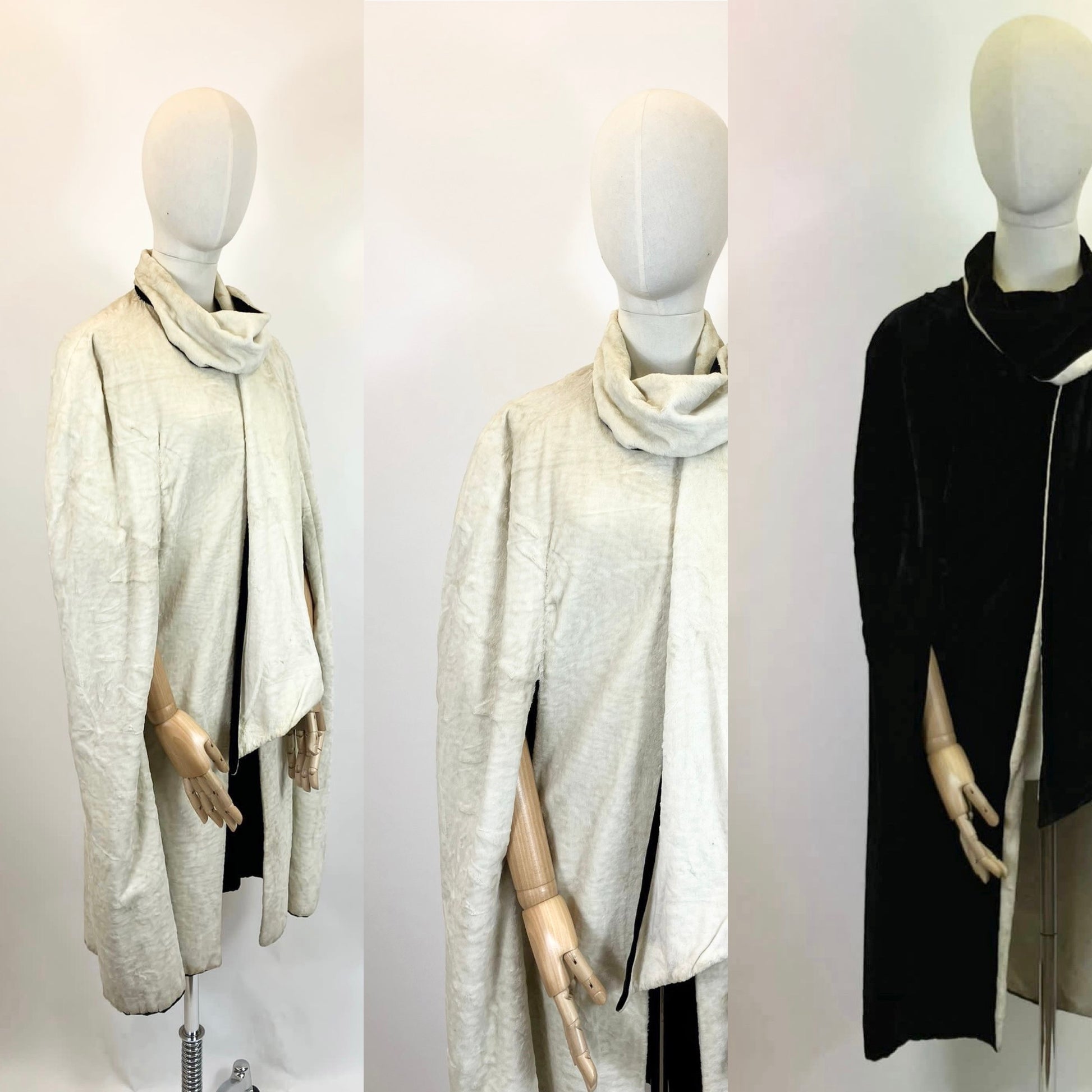 Original 20’s Beautiful Reversible Velvet Opera Cape - in Black / Cream