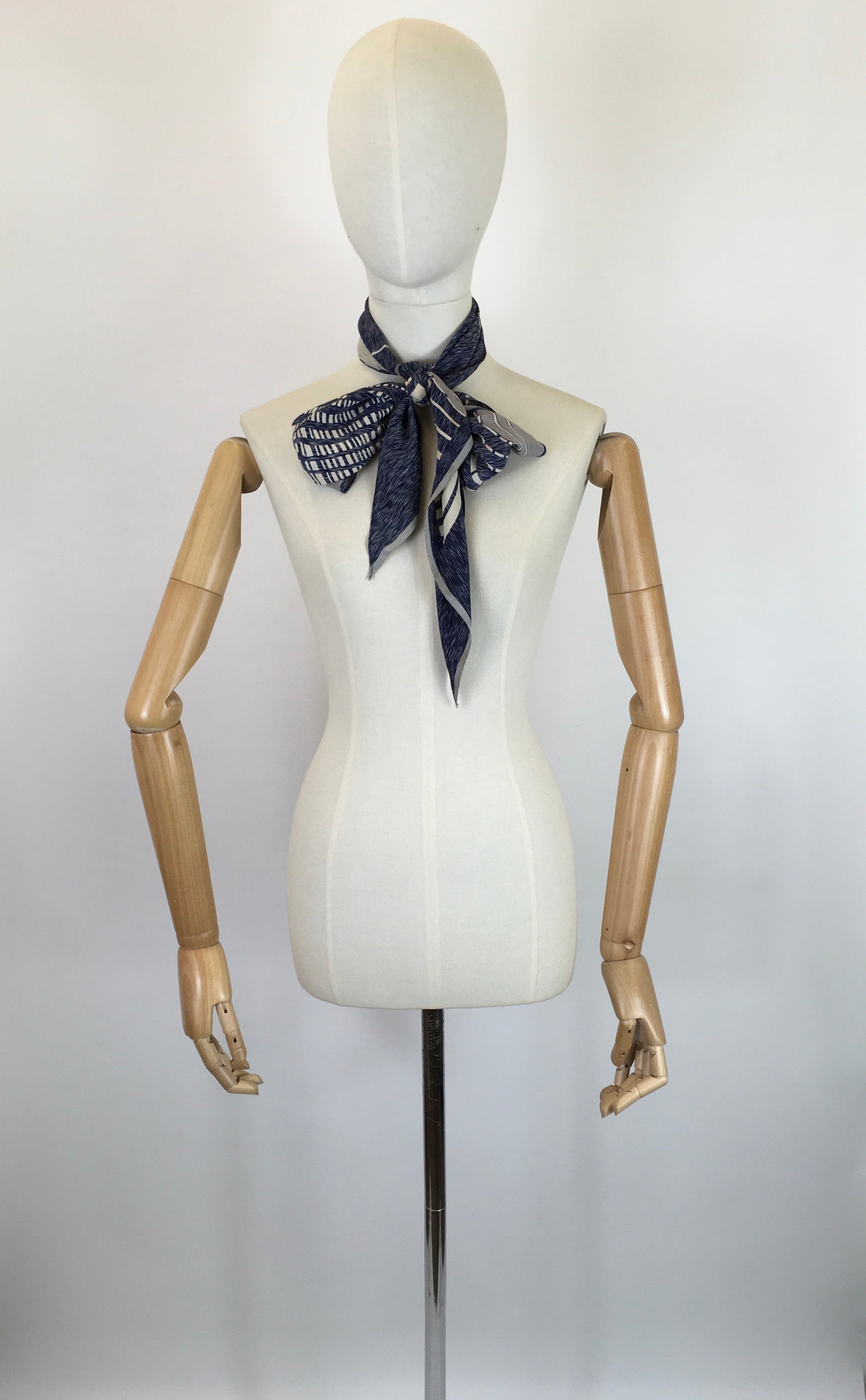 Original 30s darling deco pointed scarf in a Navy/cream combination. Fabulous iconic deco shapes and lines on this beauty. These are becoming harder to find and can be so versatile, worn different ways for a truly inspiring vintage wearer/collector.