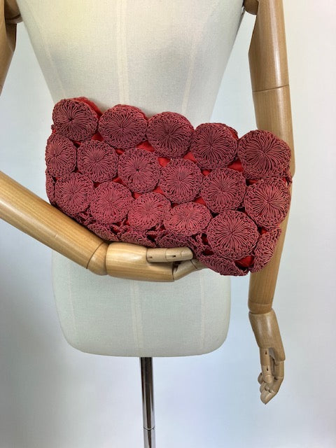Original 40’s/50’s Crochet Clutch bag - faded Coral/Pink