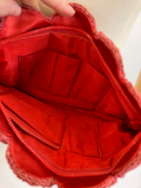 When new this clutch would have been Red, however well loved and used it has faded to the most delicate shade of coral/ pink. This brings so much happiness, that it has been used and loved.