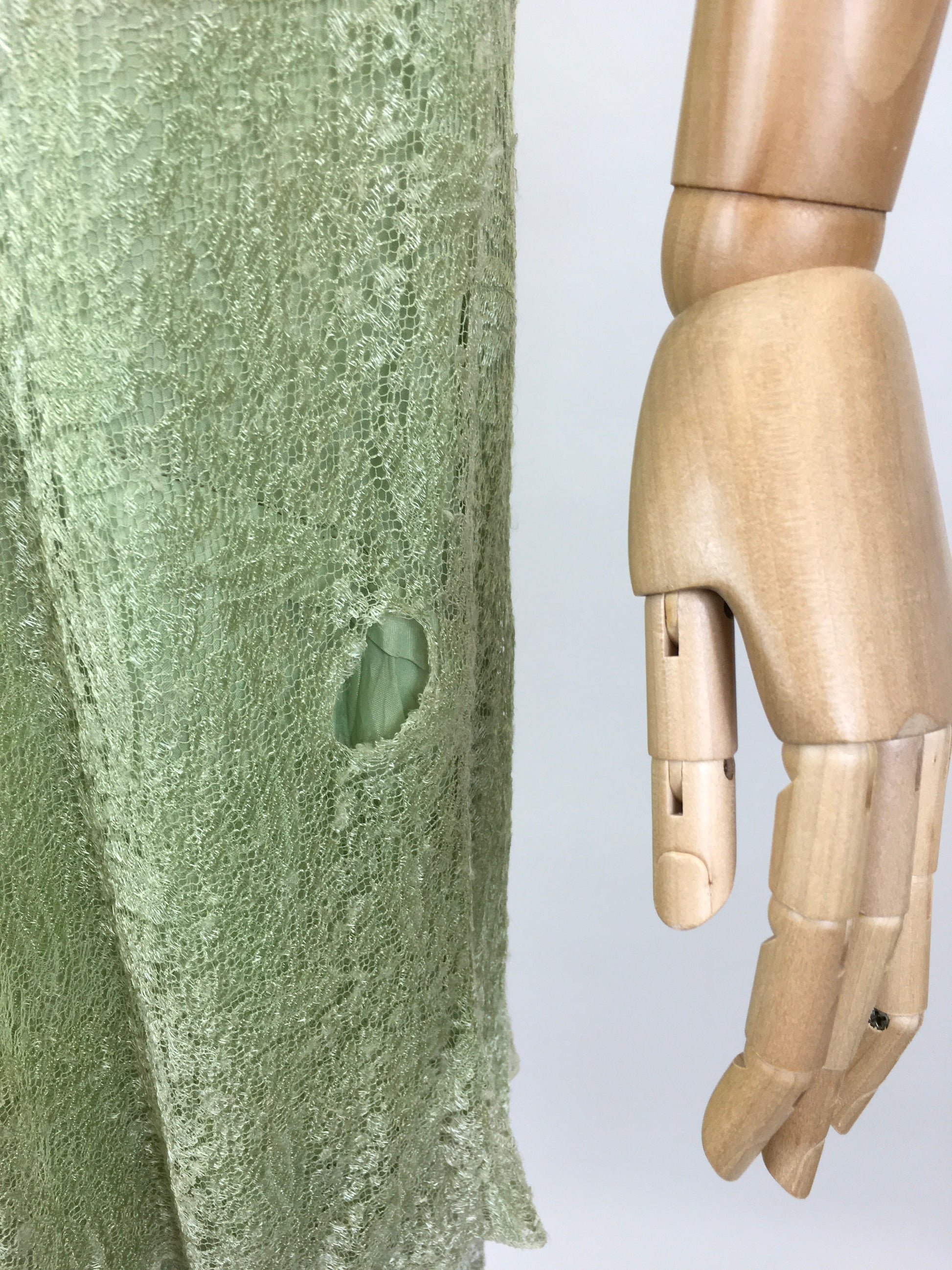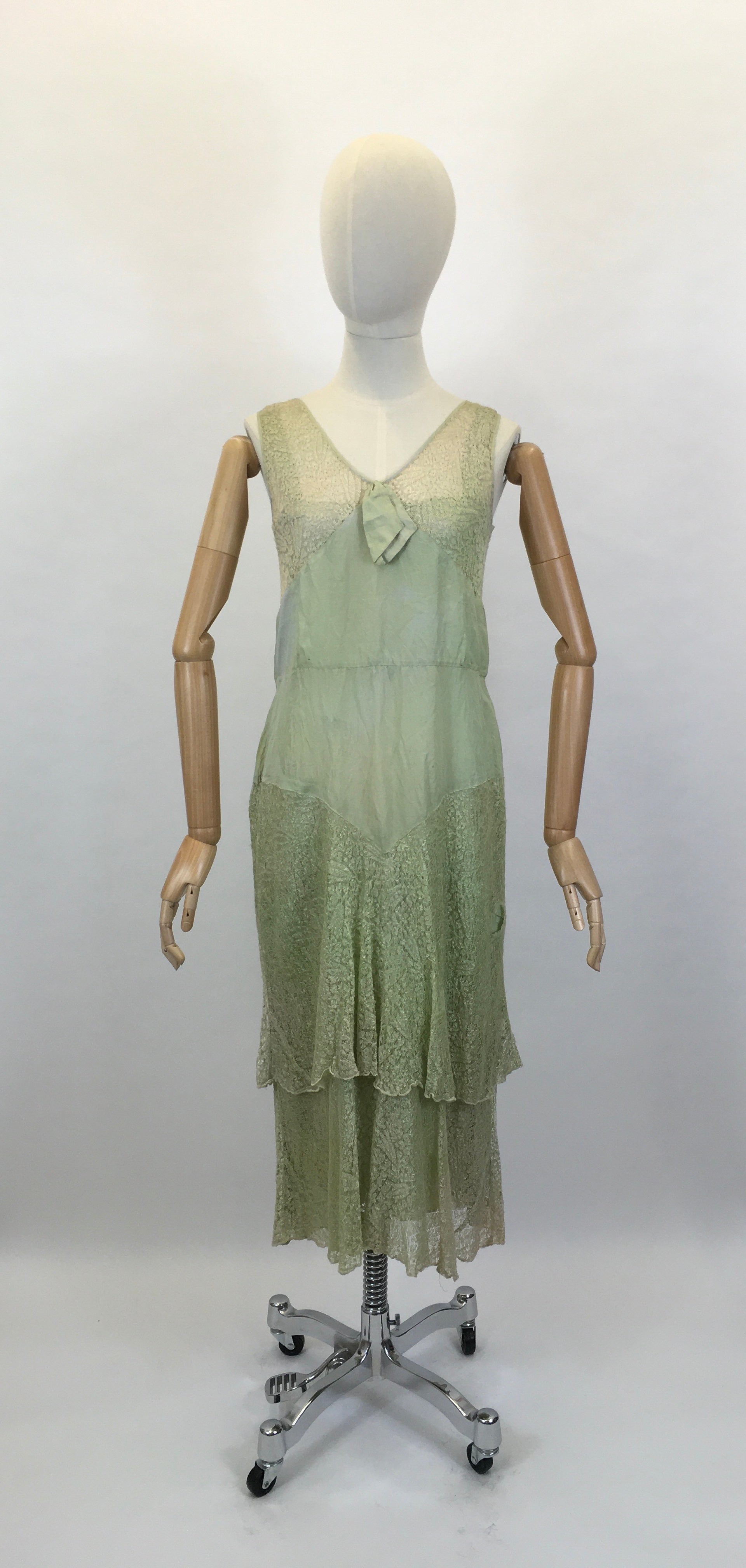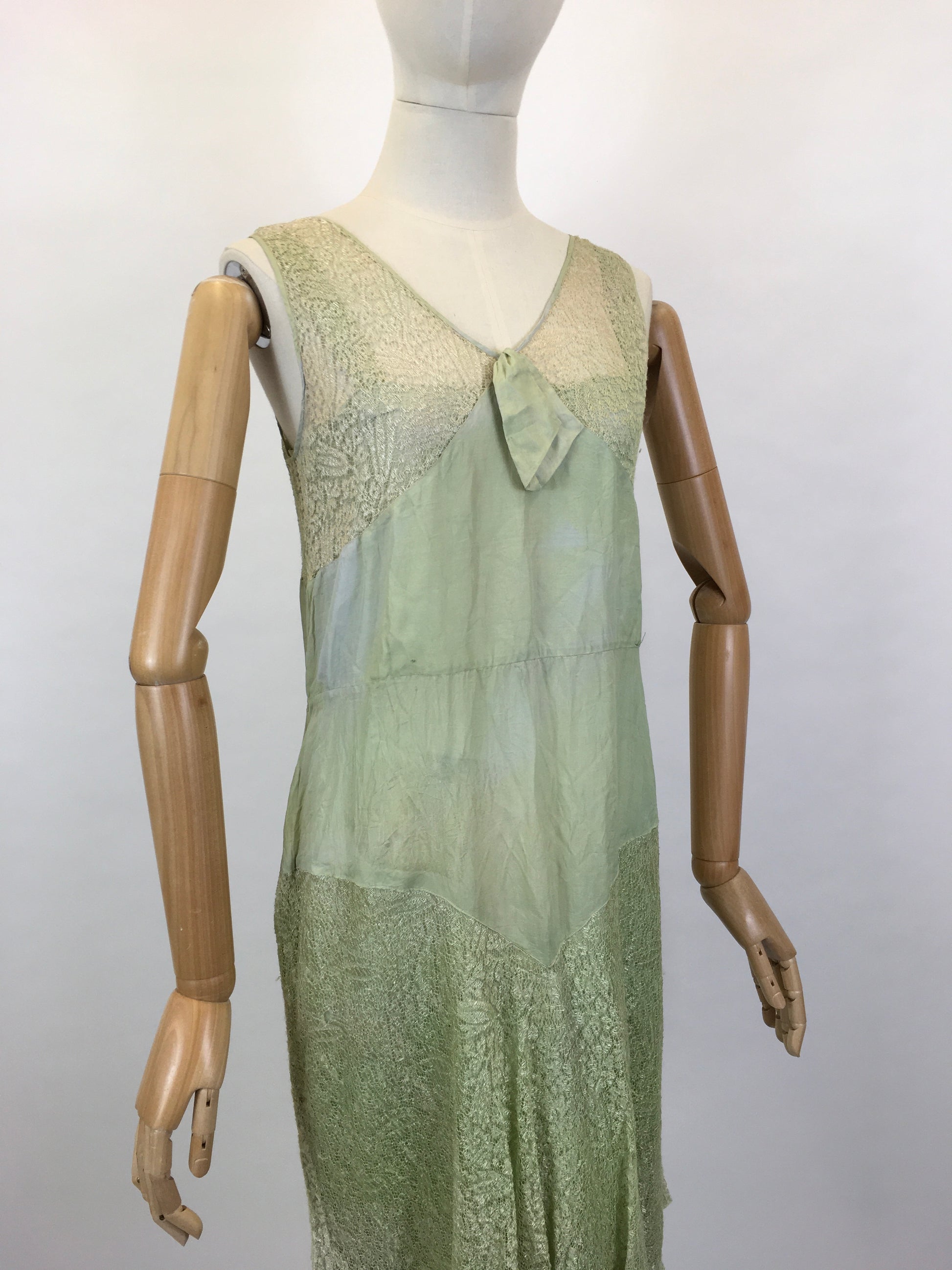 Original As Is 1920’s Stunning Soft Green Dress - In Silk & lace