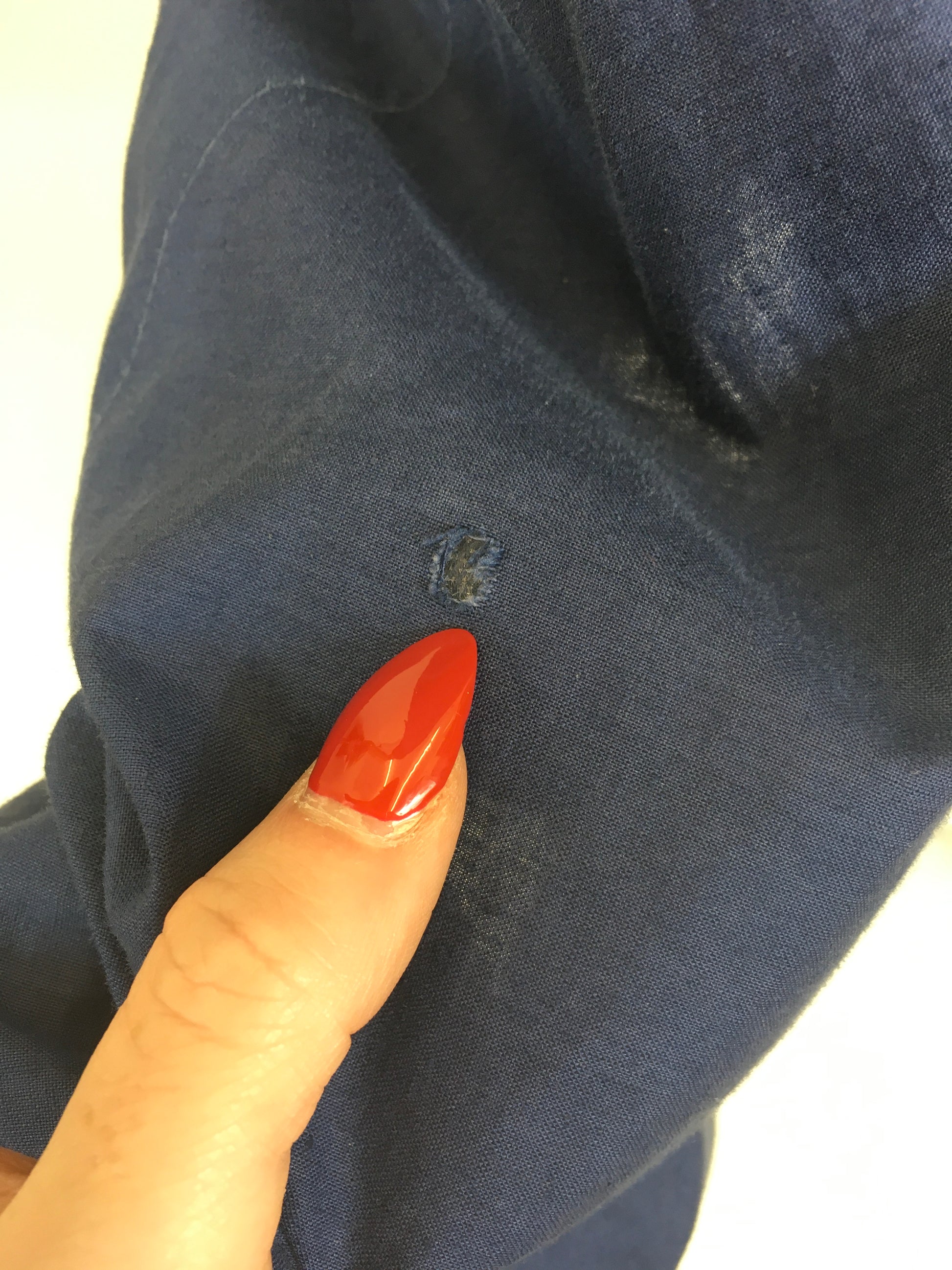 Fair Vintage Condition, flaws to note - Belt loops but missing original belt, 0.5’ tear to the front which could be stitched up. Small nibble near the hem and some slight iron shine to places. These don’t detract and once stitched up would look fabulous on.