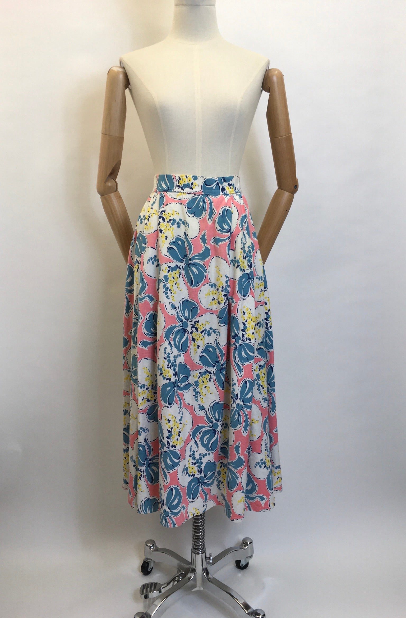Original Early 1950s Cotton Circle Skirt - Featuring Beautiful Flowers & Ribbons Print