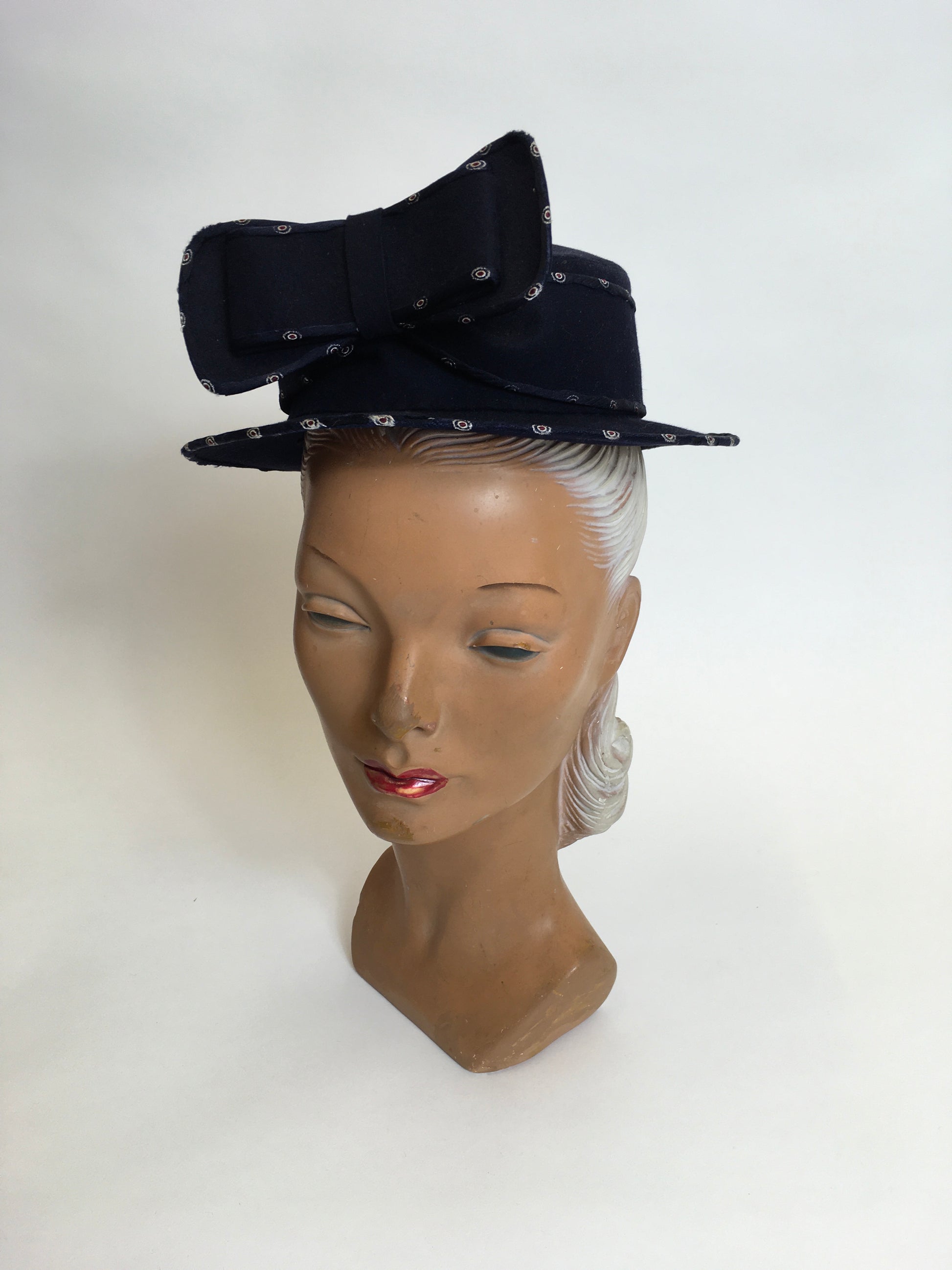 Original late 1930’s Marshall & Snelgrove Hat - Huge Bow Adornment with Fabric Trim