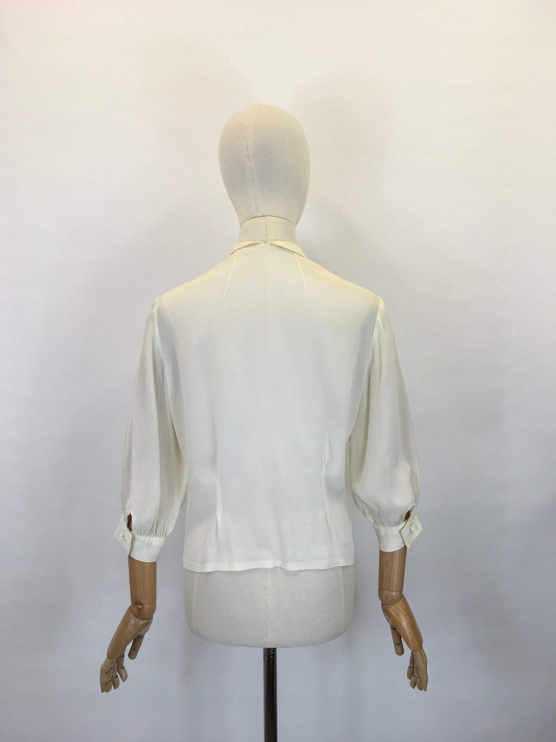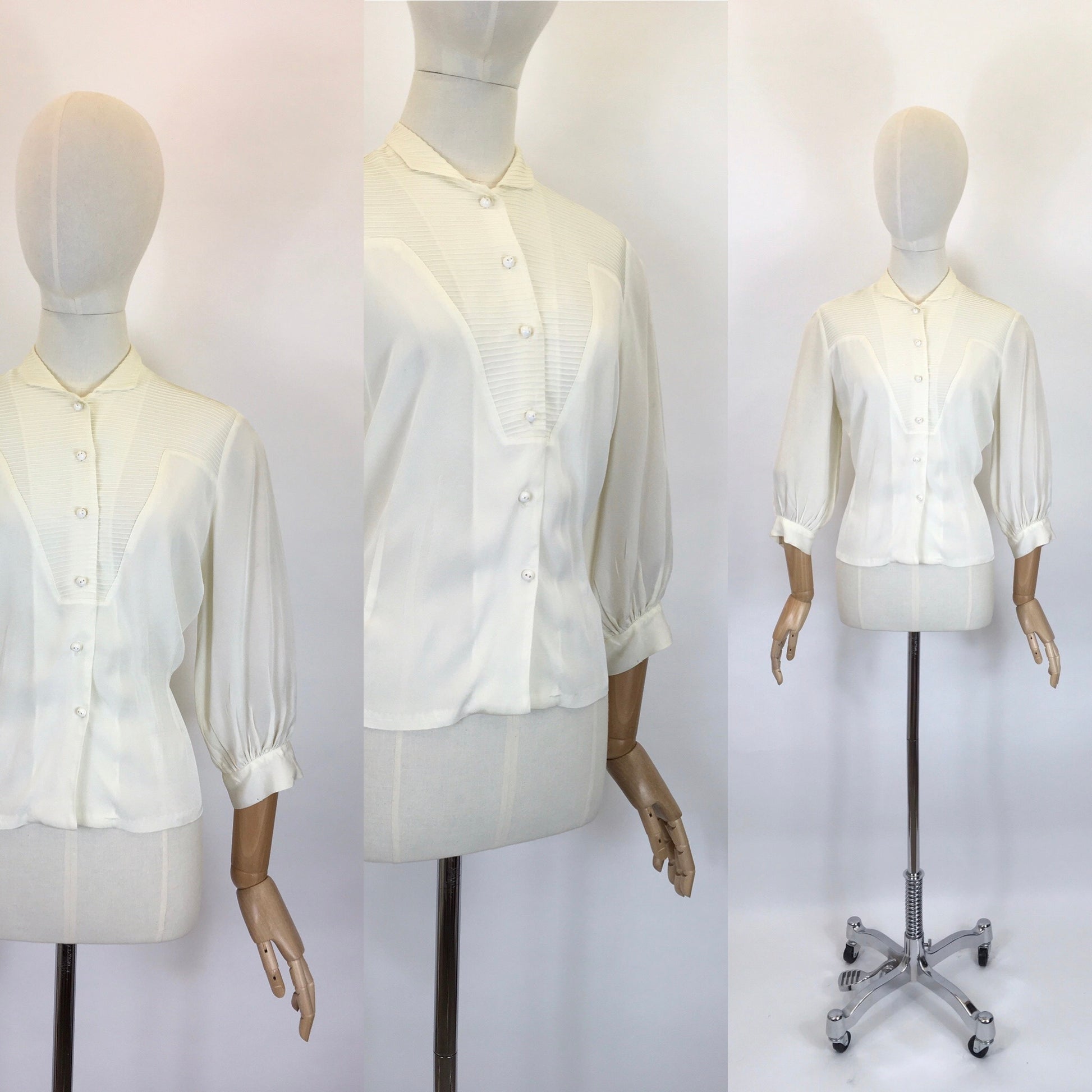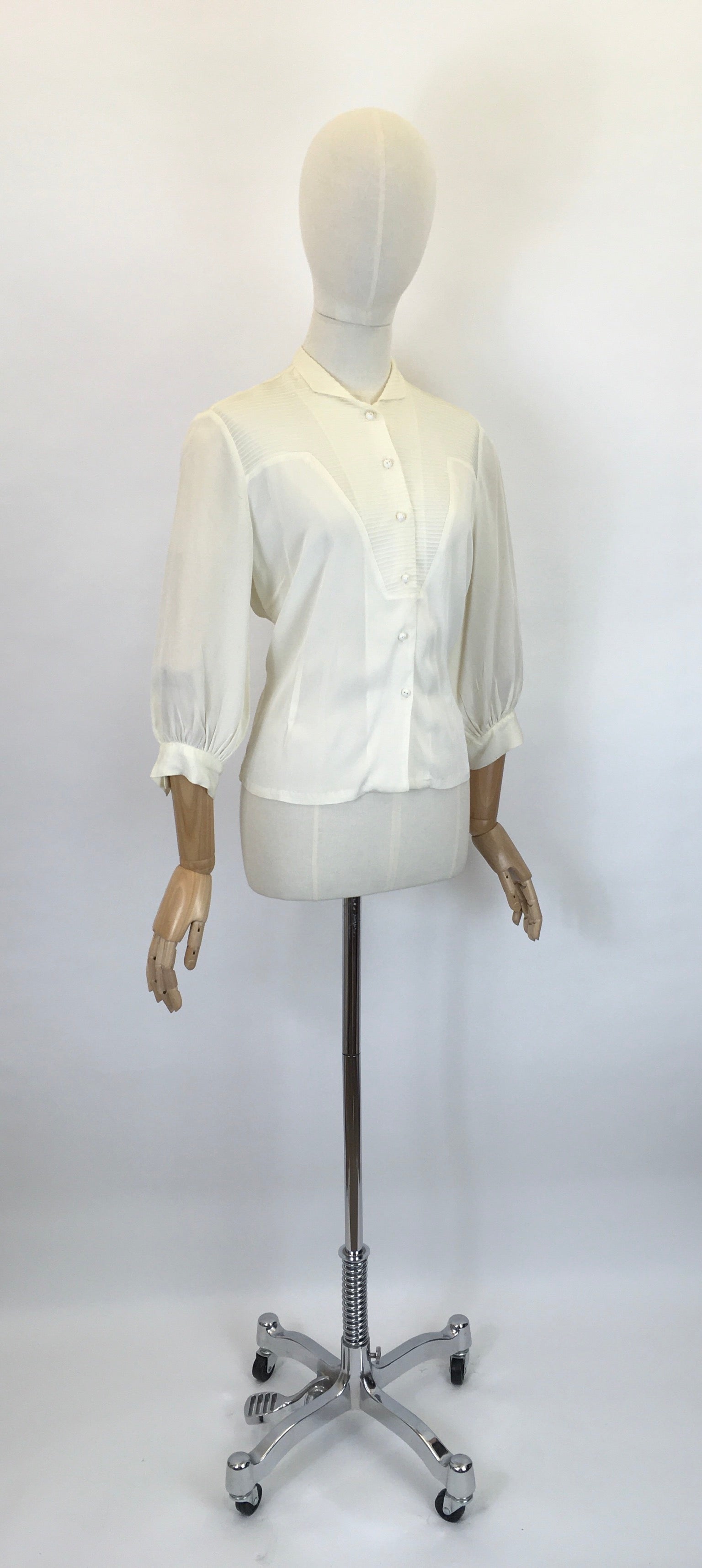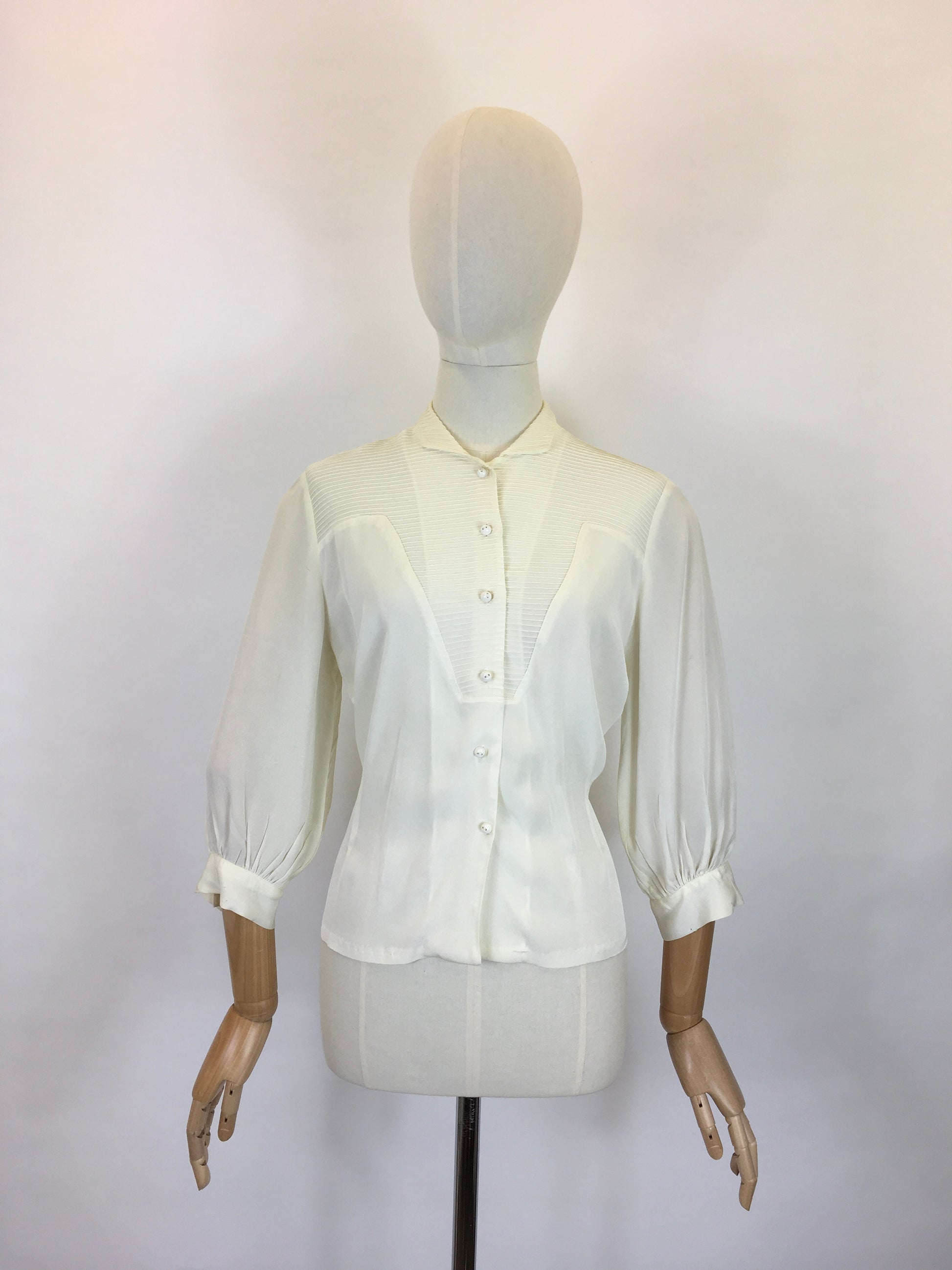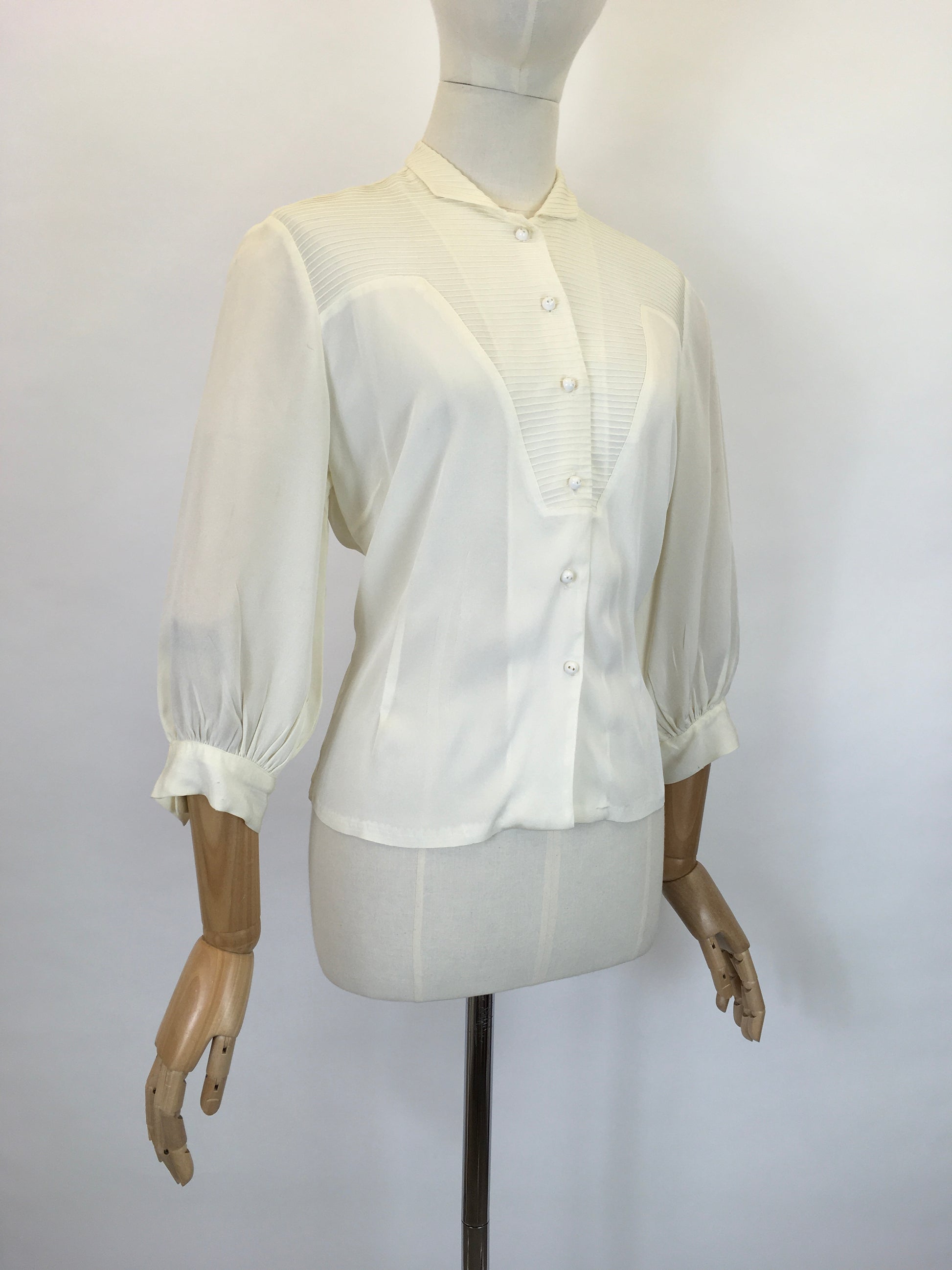 Original Late 1940’s Cream Blouse - With Lovely Pleated Detailing To The Bodice