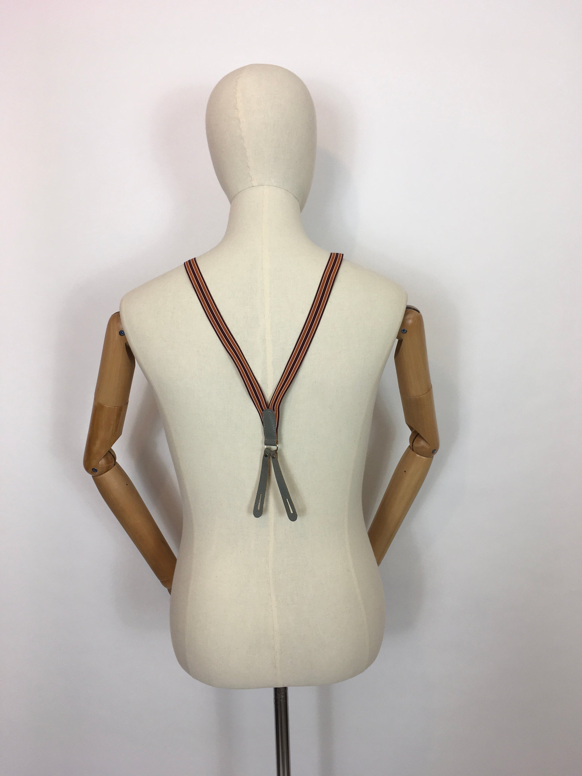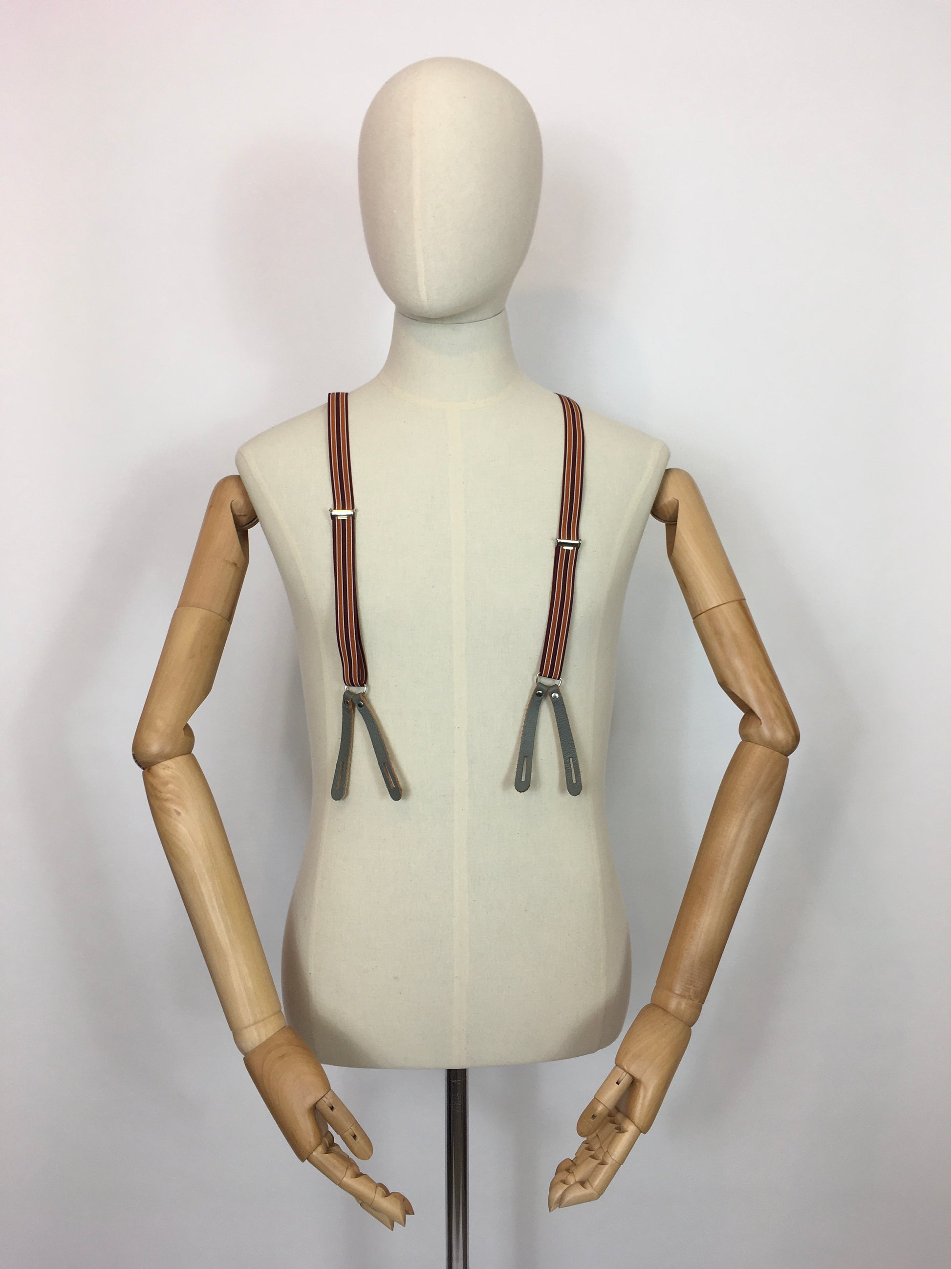 Original late 1950s Mens Button Braces - In a Fabulously Fun Orange and Burgundy Stripe